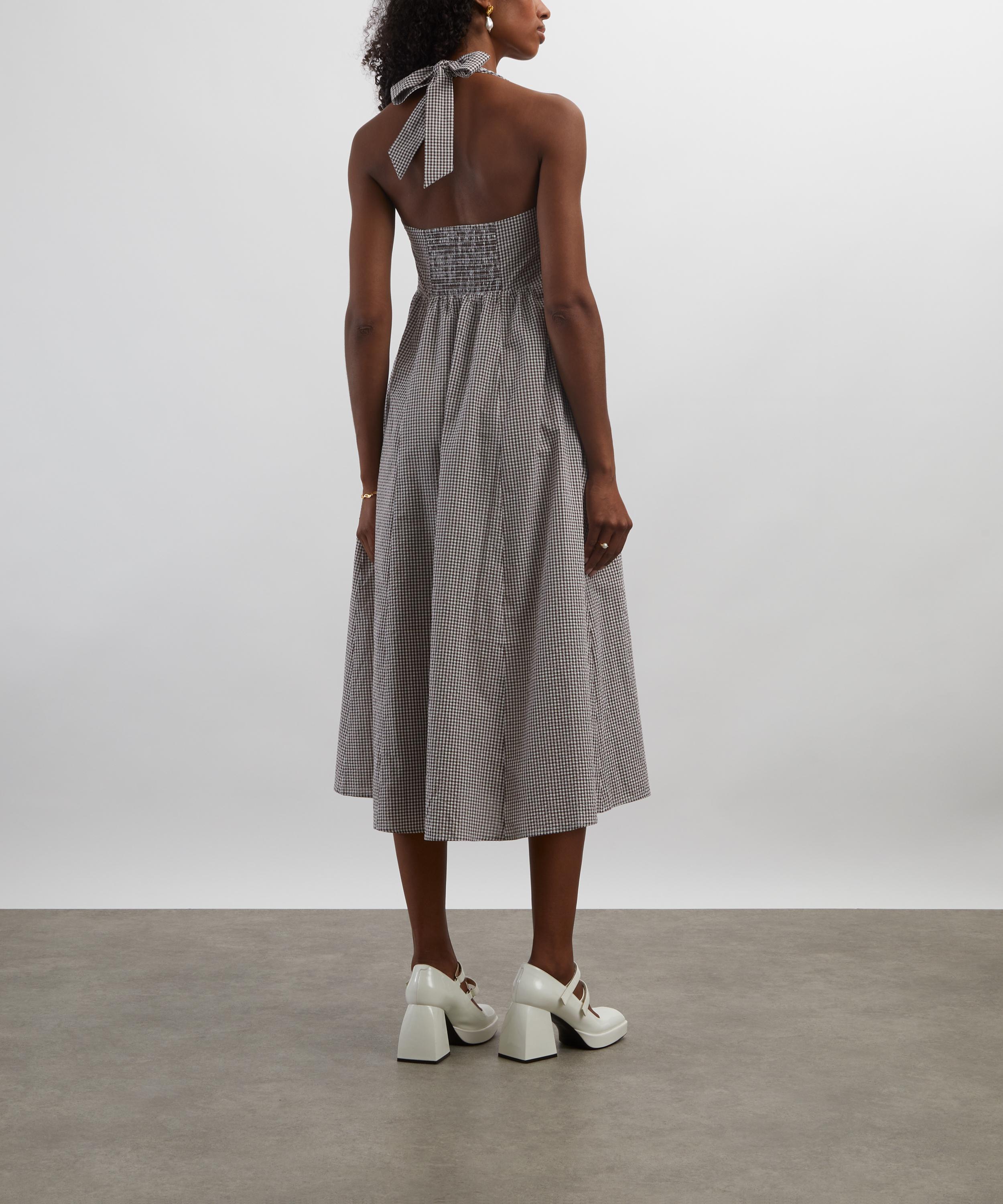 Easy, breezy, and totally chic, this dress is set to become a seasonal staple. Crafted from lightweight cotton presenting a ditsy gingham print, Fleur features a fit-and-flare A-line silhouette consisting of a square neckline with halter-neck ties, and a flattering midi skirt.