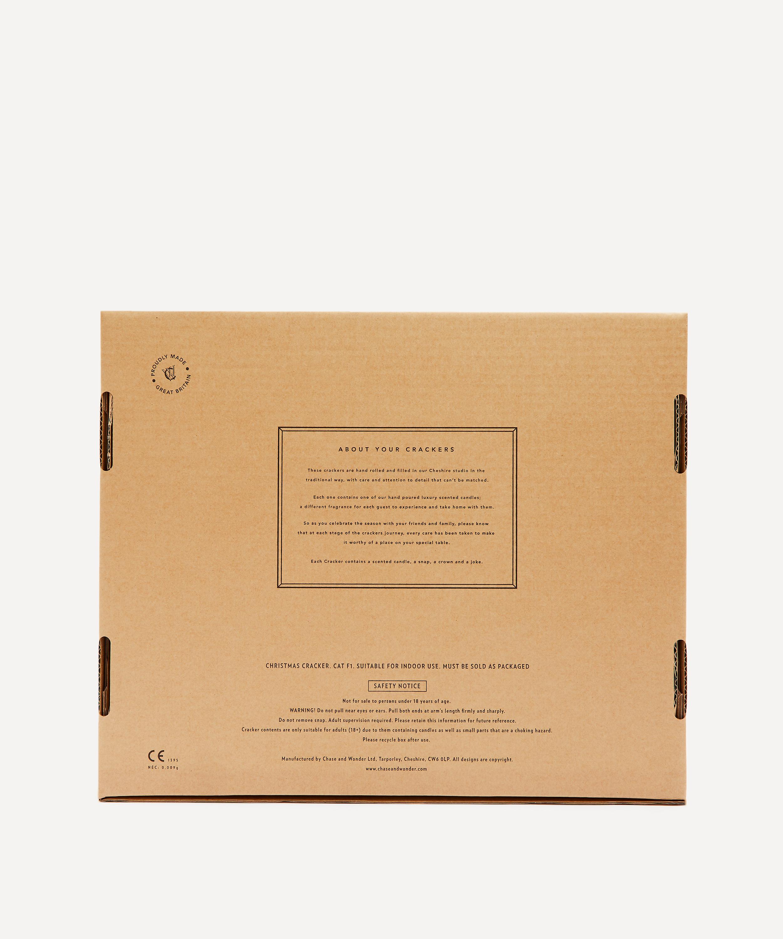 Crafted from thick, high-quality paper, this set of six Christmas crackers will give your table setting an extra sense of fun. Printed with a beautiful illustration of a Christmas lady and finished with red ribbons, each cracker contains a scented candle, a paper crown and a classic Christmas joke.