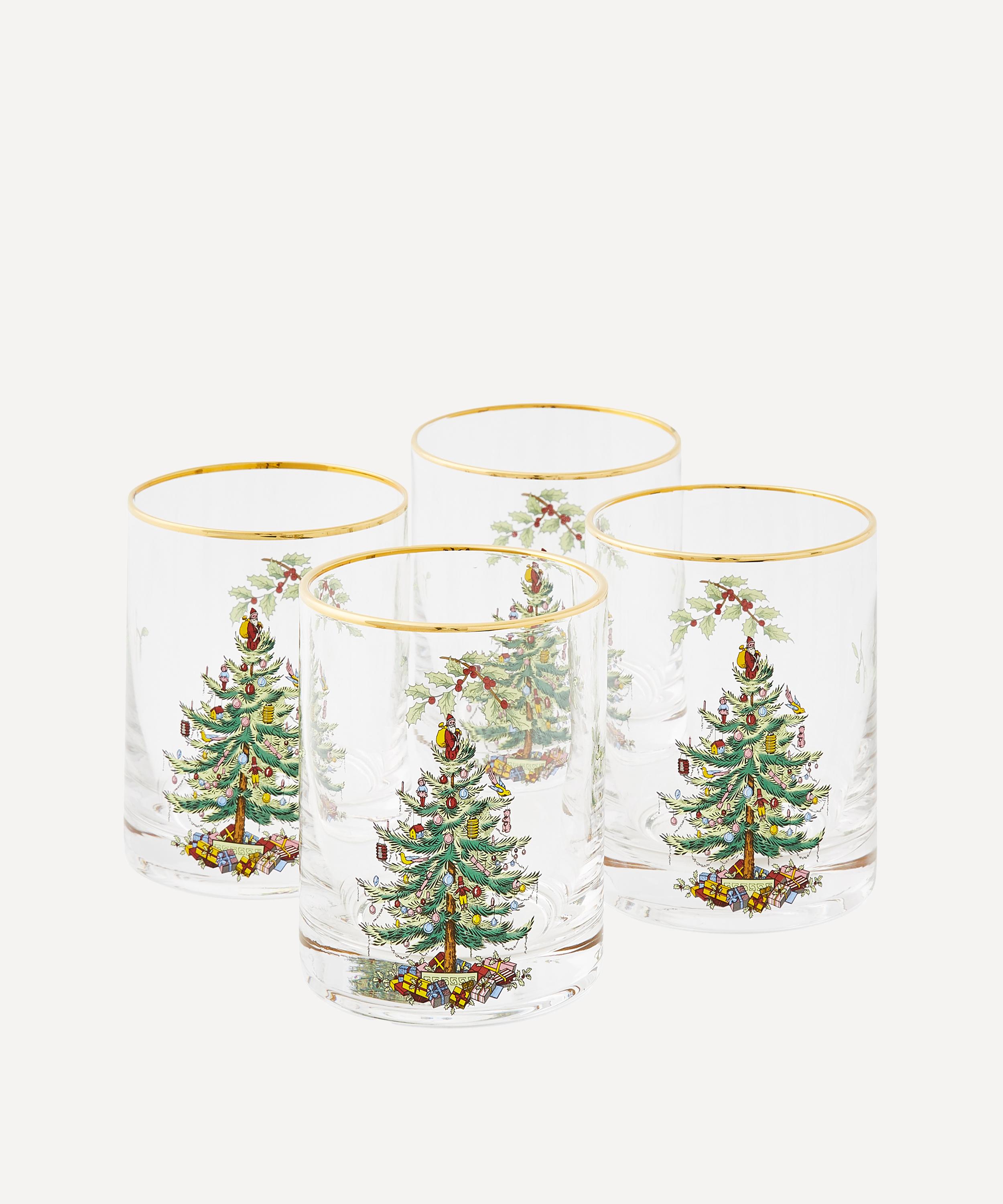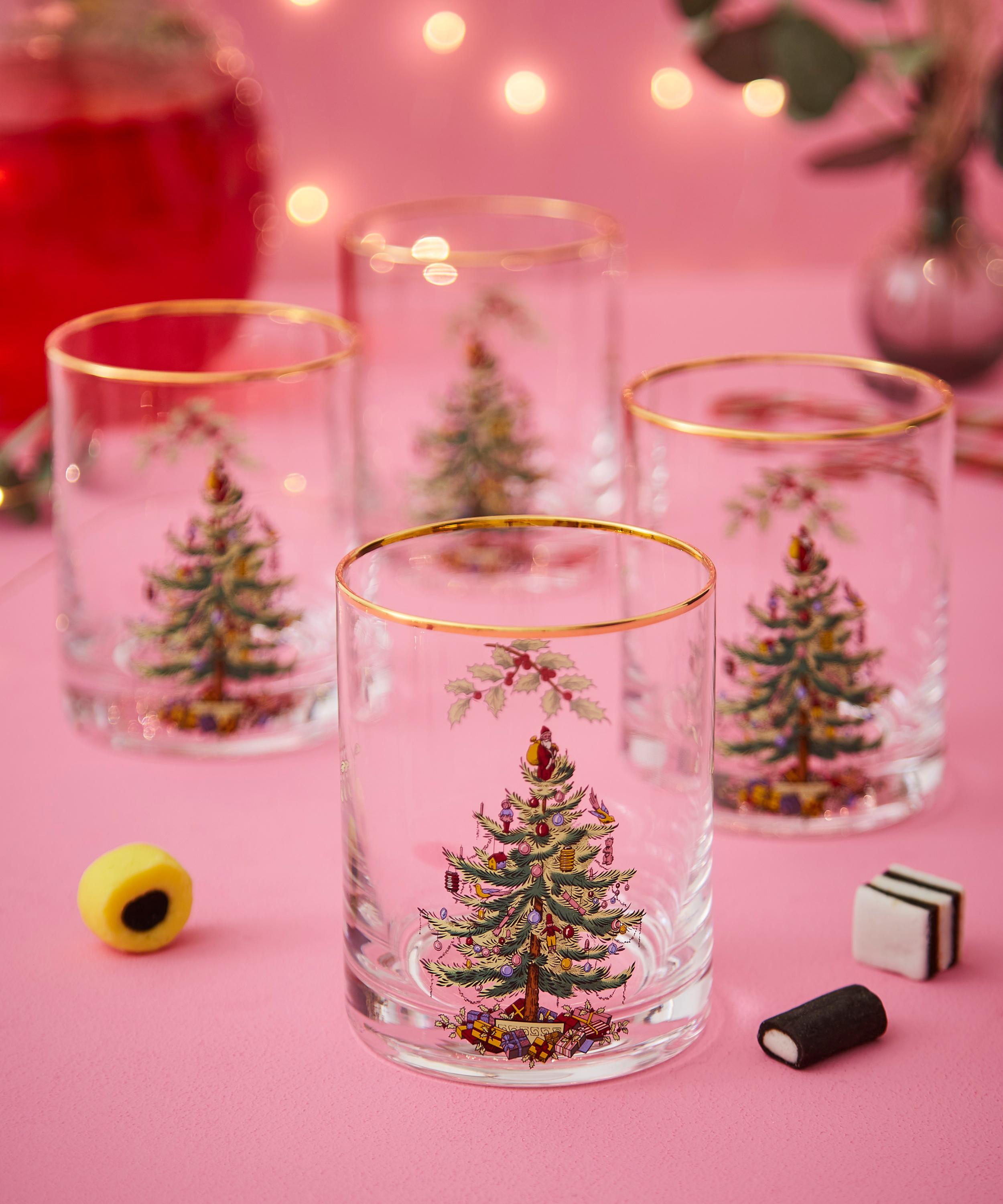 Bring festive finesse to your tablescape through the Christmas Tree lowball glasses set from Spode, England's oldest porcelain manufacturer.