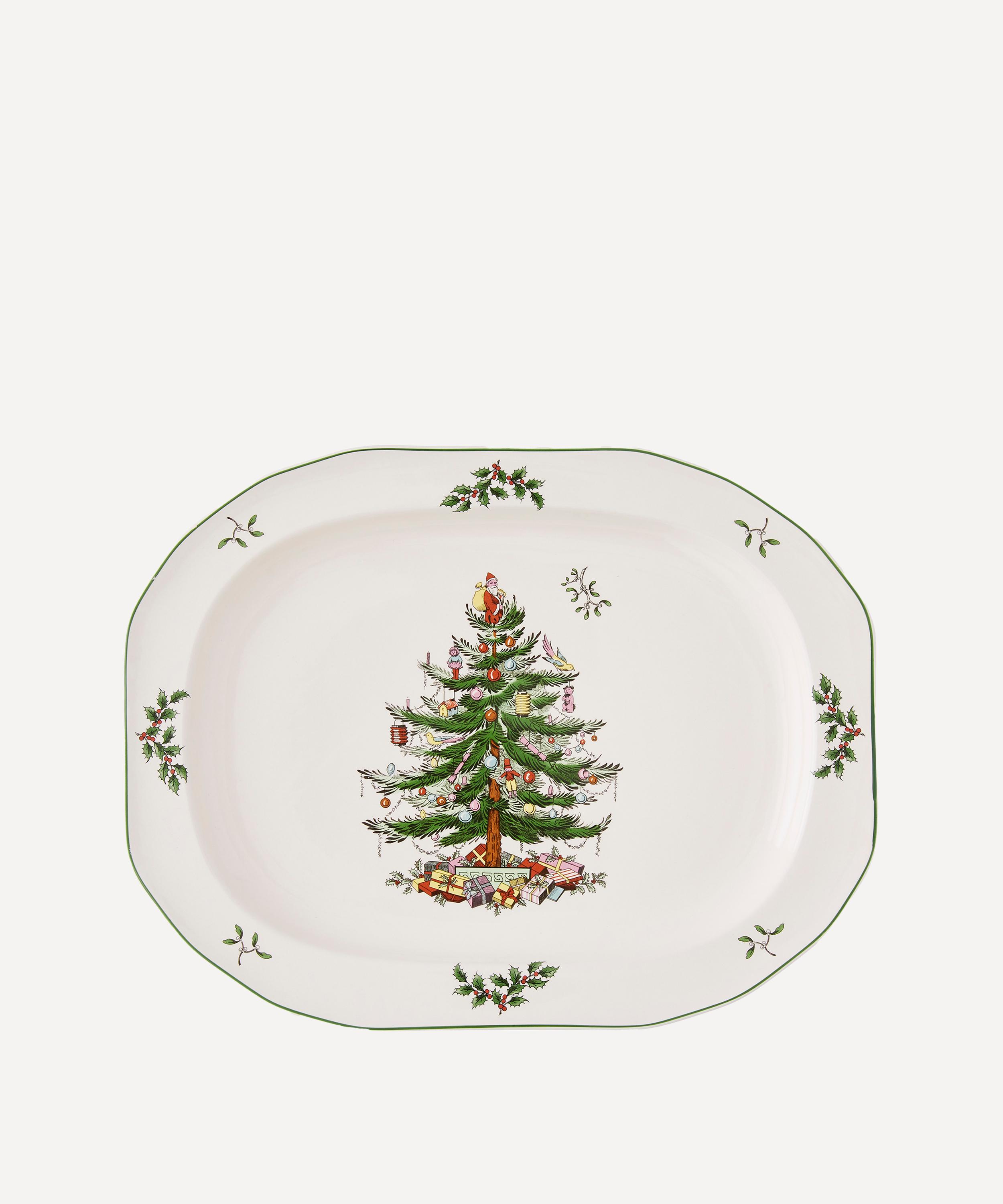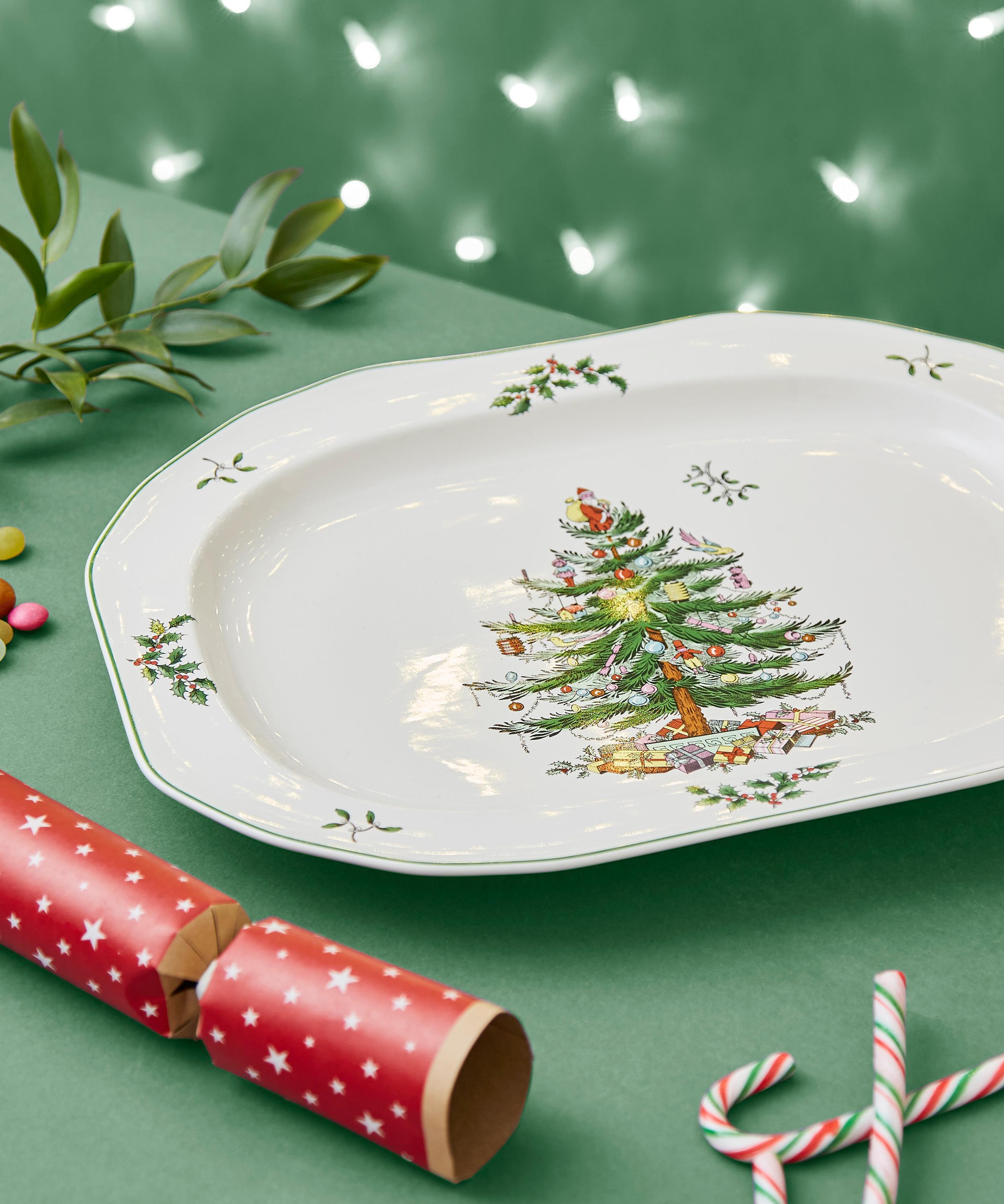 Bring festive finesse to your tablescape through the Christmas Tree sculpted oval platter from Spode, England's oldest porcelain manufacturer.