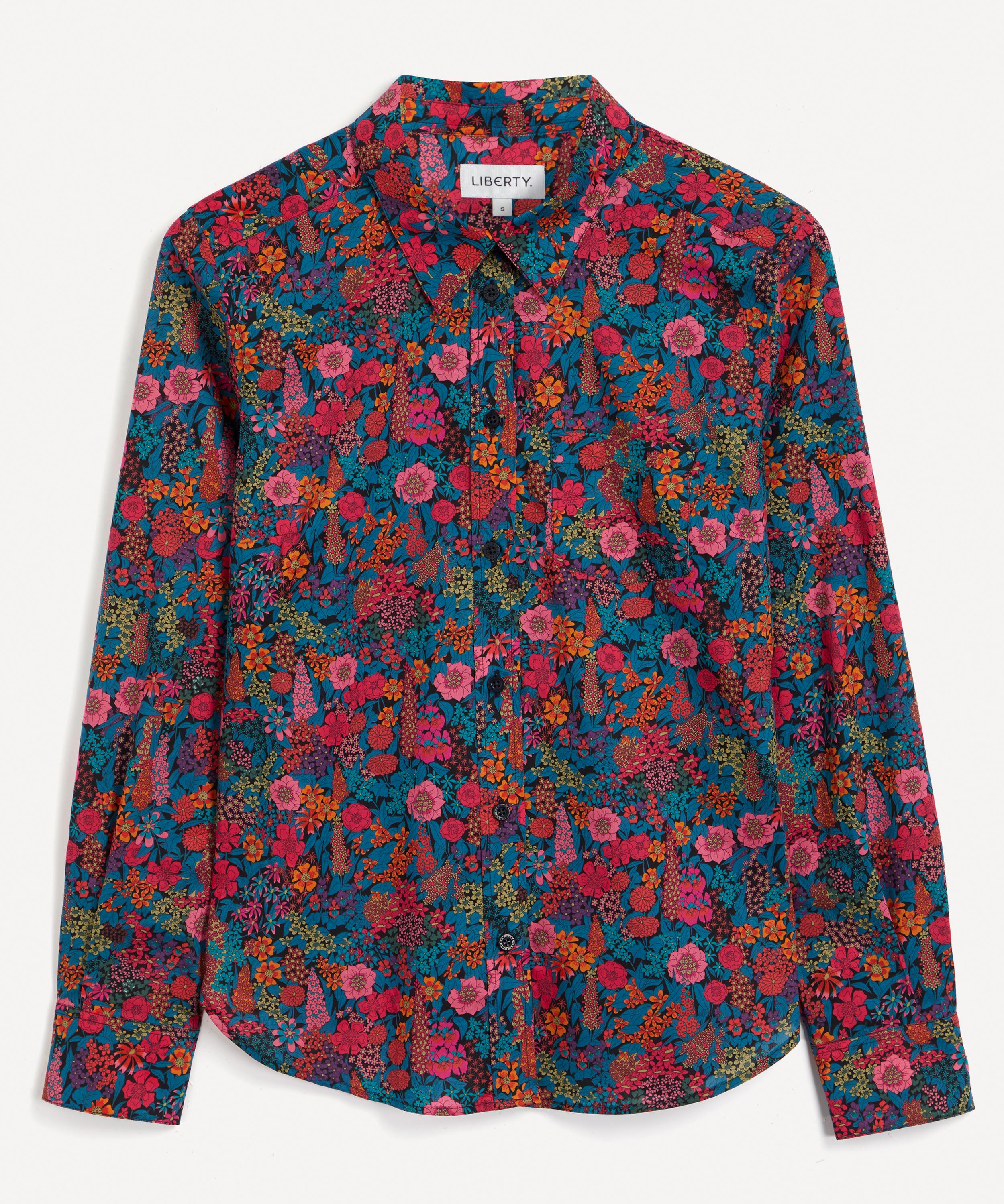 Master daytime cool with the iconic Ciara Liberty shirt. Its construction from Tana Lawn™ cotton provides a colour-rich surface and smoothly soft hand-feel, perfect for wearing directly against the skin, while chest darts provide a flattering fit. This shirt features our Ciara print – a dense botanical design, reimagined from a popular 1960s Liberty scarf pattern found in the archives. Let this dappled burst of colour and print lead as your ensemble’s statement piece on dress-down days – pair with leather for a sleek yet retro-tinged aesthetic.