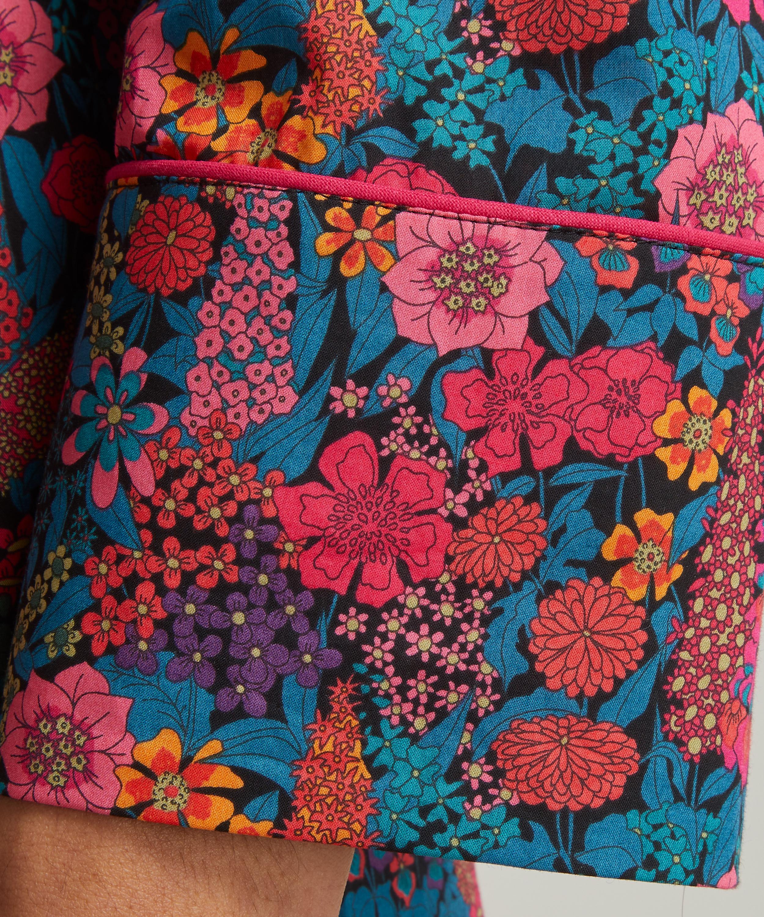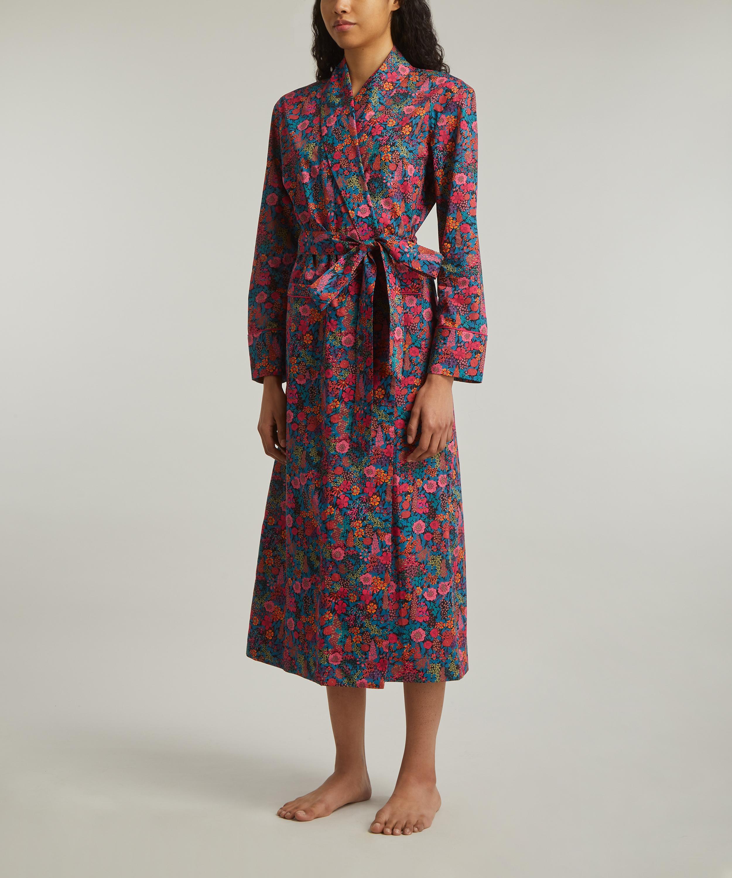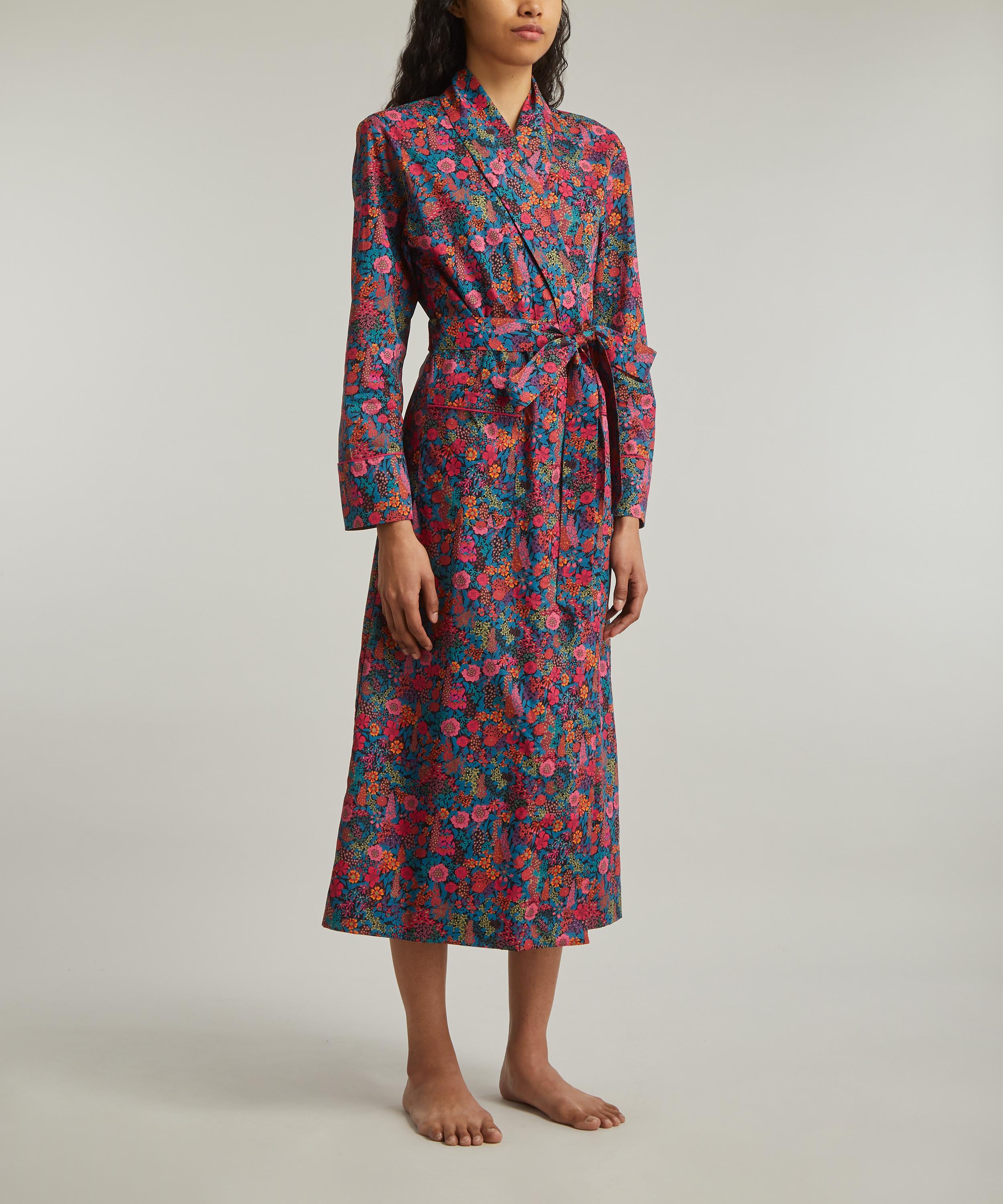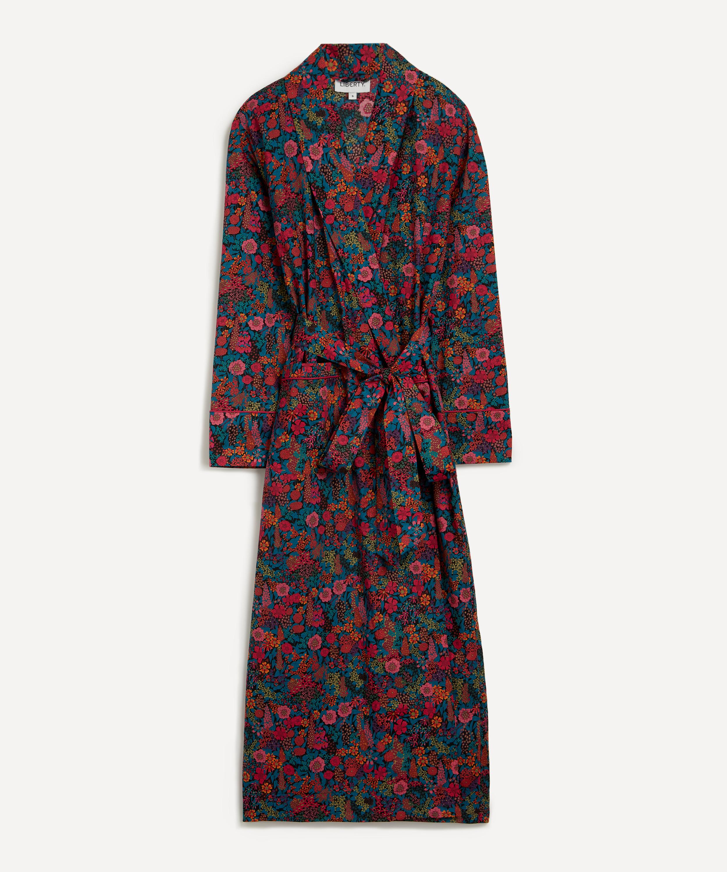 This long robe features a shawl collar and a cinchable self-tie belt at the waist. Finished with piping and two patch pockets, it spotlights our Ciara print - a dense botanical design, reimagined from a popular 1960s Liberty scarf pattern found in the archives.