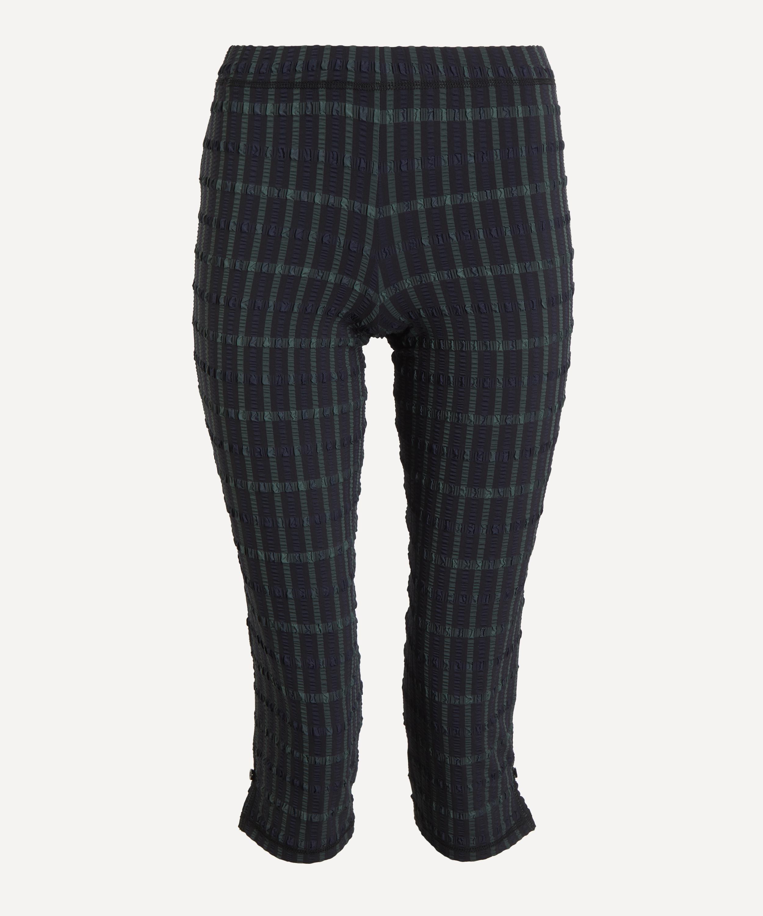 A modern twist on the classic bike short, the Cindy Capris offer an elongated silhouette with a mid-rise fit, sculpting seams, and side vents for ease of movement. Crafted from checkered seersucker, they blend comfort with understated edge.
