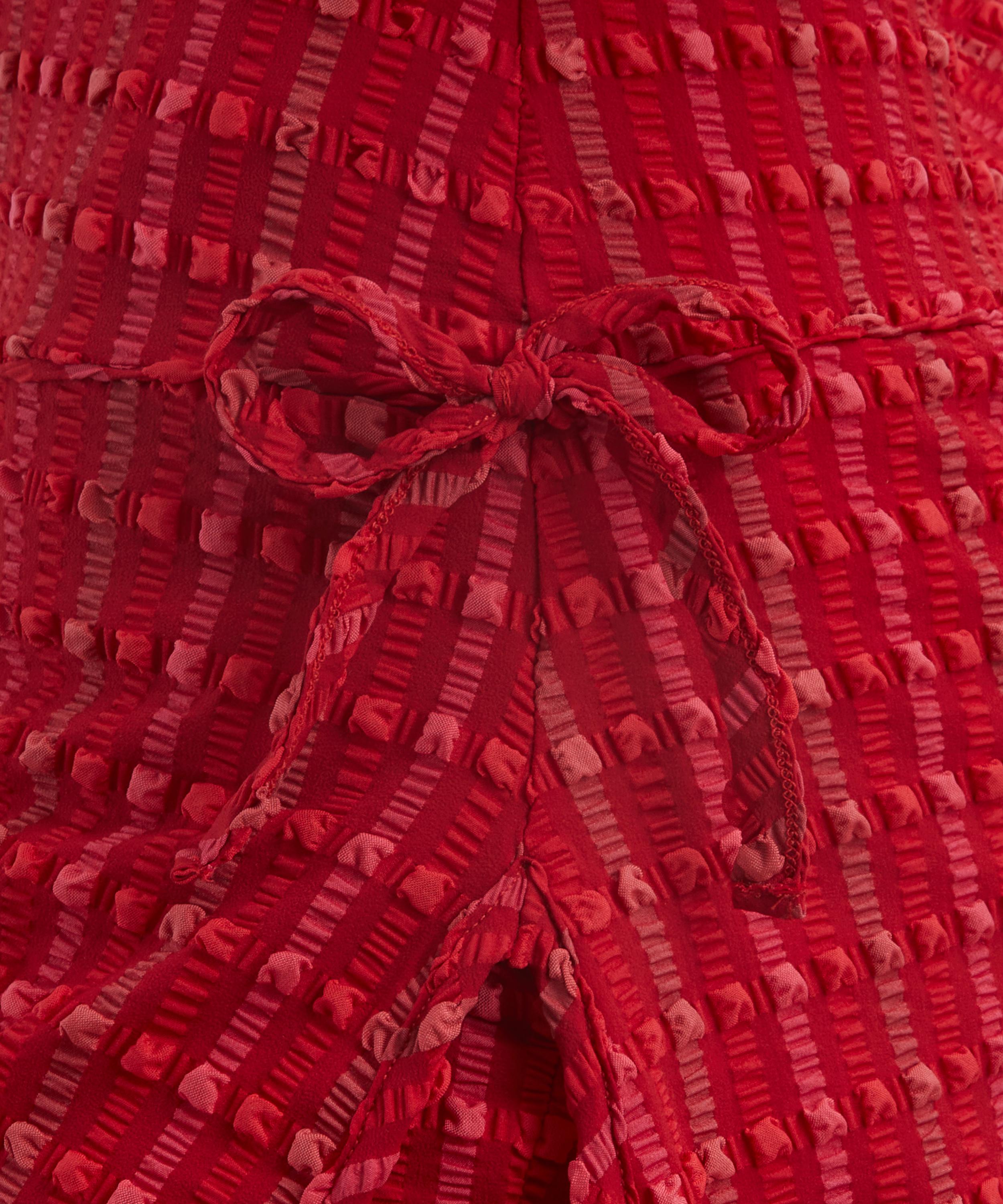- Plunge neckline with halter ties