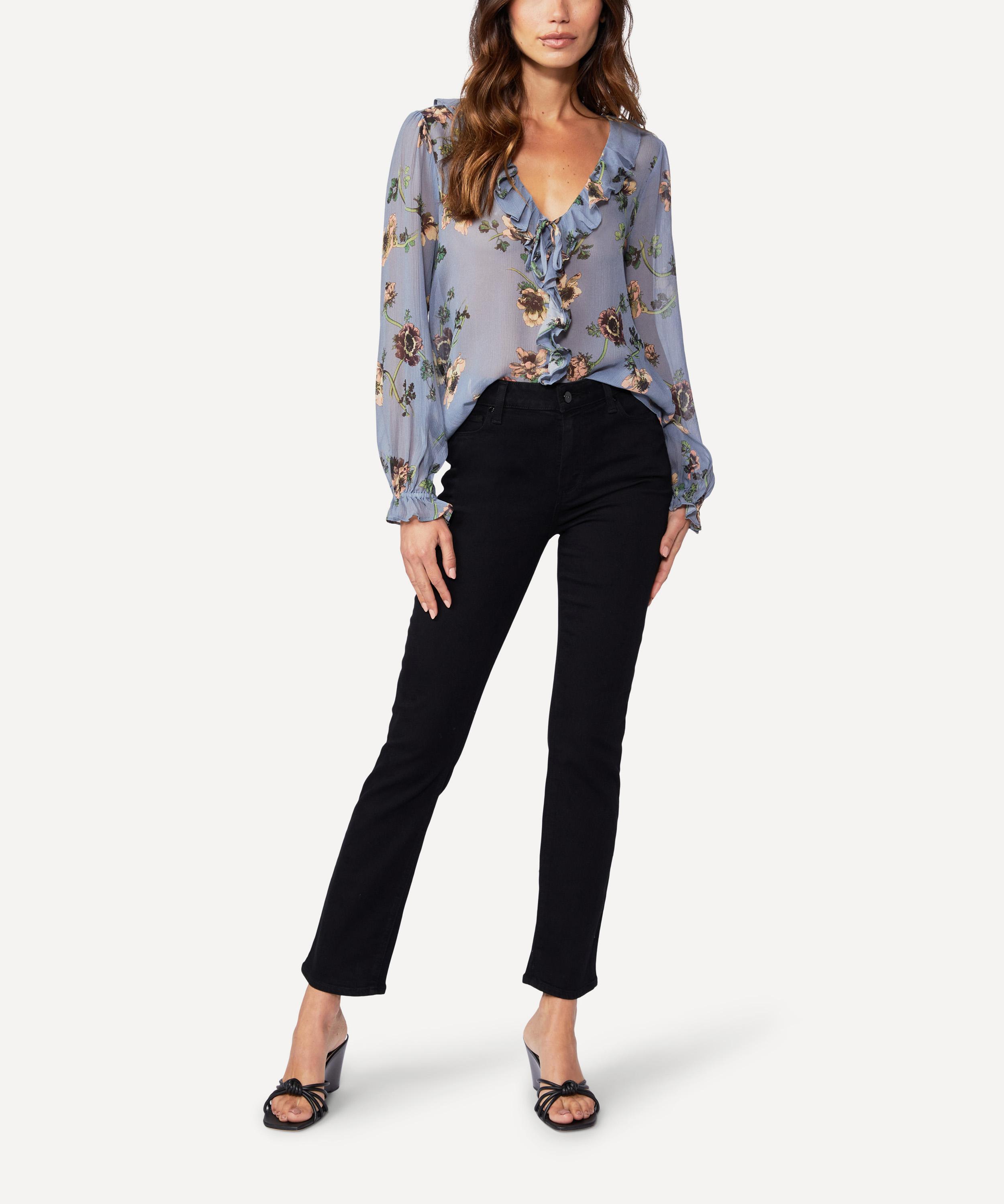 Cut from signature TRANSCEND VINTAGE denim in a rich black wash, the Cindy jeans feature an ultra high-rise waist and a perfectly straight-leg silhouette that finishes at the ankle - offering a clean, timeless fit.