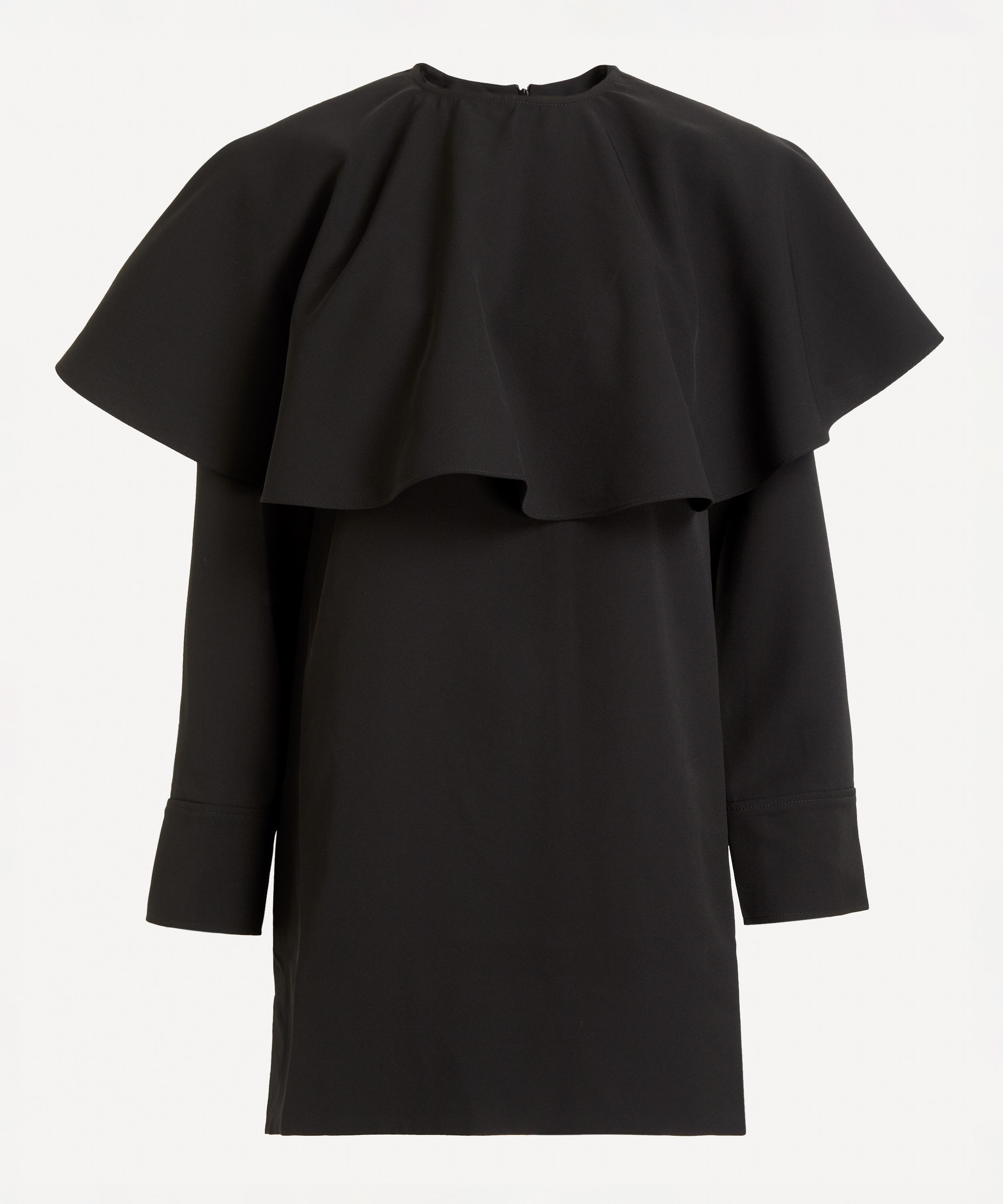 Perfect for party season, this sleek dress features a round neckline accompanied with a removable circular collar for added drama, long sleeves, wide cuff details and a concealed zip closure at the back.