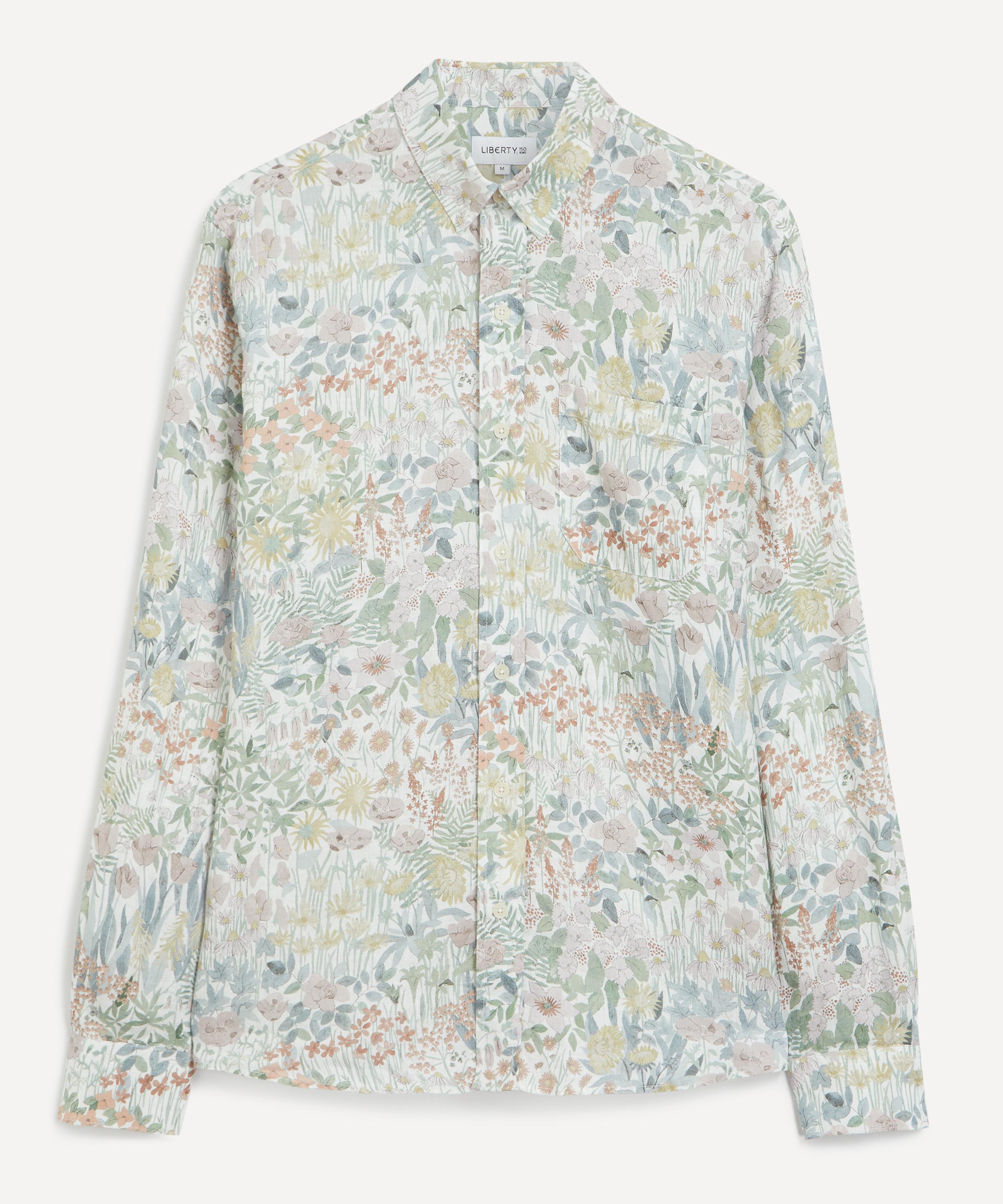 Printed in our very own cutting-edge Liberty fabric mill in northern Italy, this particular shirt showcases the Faria Flowers print - a hand-painted floral design drawn from studies taken at the Royal Chelsea Flower Show and Hampton Court by our Liberty Fabrics design team.