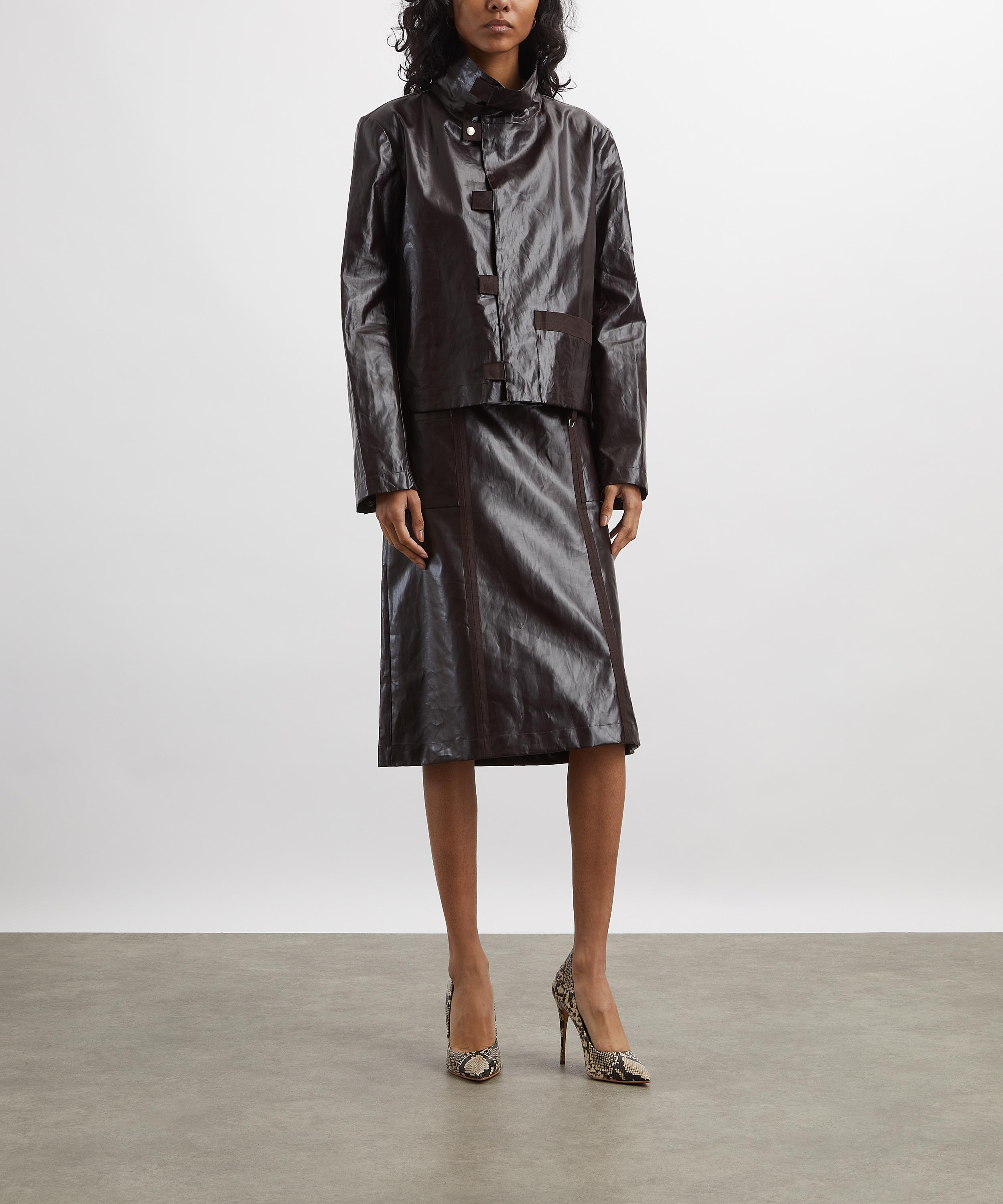 The Clau jacket features a fitted silhouette with a high neck, concealed button closure, and practical side pockets. Finished with a subtle glossy coating, it’s the perfect layer for a sleek, modern winter look.