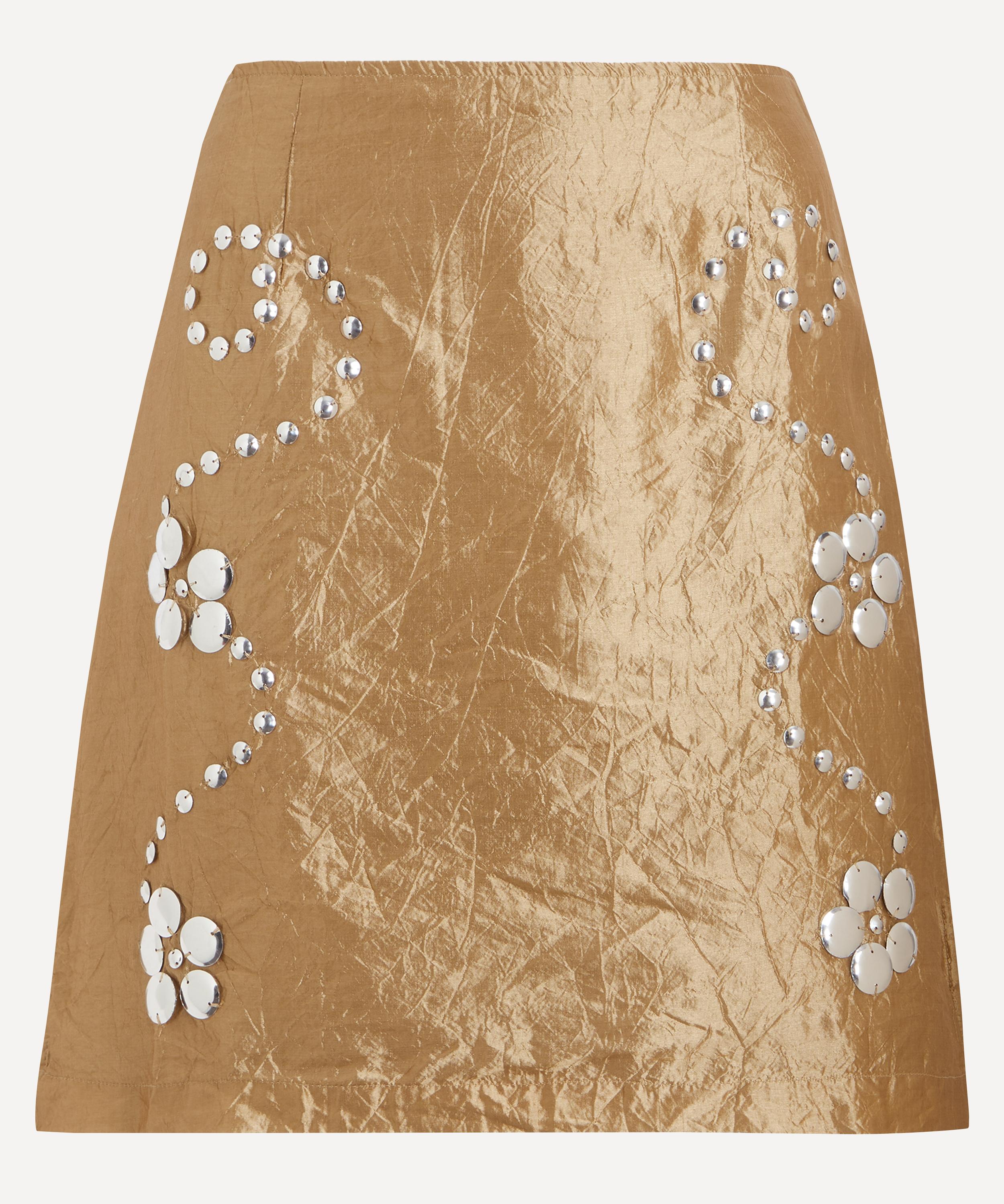 Effortlessly refined, Barcelona-based Gimaguas presents the Claude Golden Studs Mini Skirt.