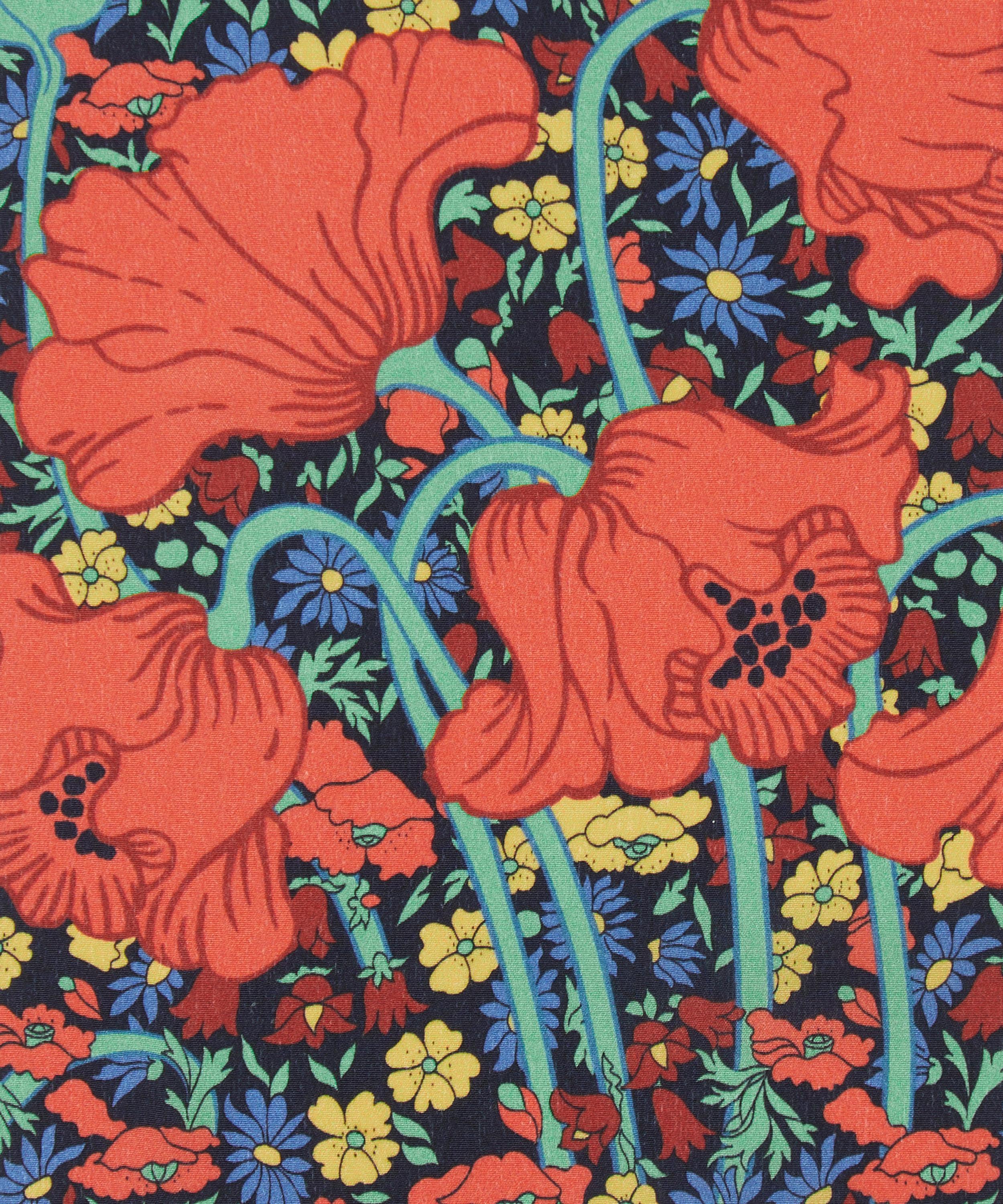An explosive medley of Liberty poppies unveils layers of our colourful botanical history. The combination of Poppy & Daisy, boasting a nostalgic floral charm, alongside Clementina, an embodiment of Art Nouveau elegance, highlights the timeless versatility of this beloved flower and its adaptability across diverse aesthetic genres. In a fantastical meadow pattern, two iconic Liberty classics collide, demonstrating bold scale variations and an ingenious clash of styles. This print is part of the anniversary collection’s final chapter, Collectibles. Offering a design for each decade, this timeline of hero prints encapsulates 150 years - exploring the design house’s varied and influential handwriting while honouring key moments of creativity and discovery.