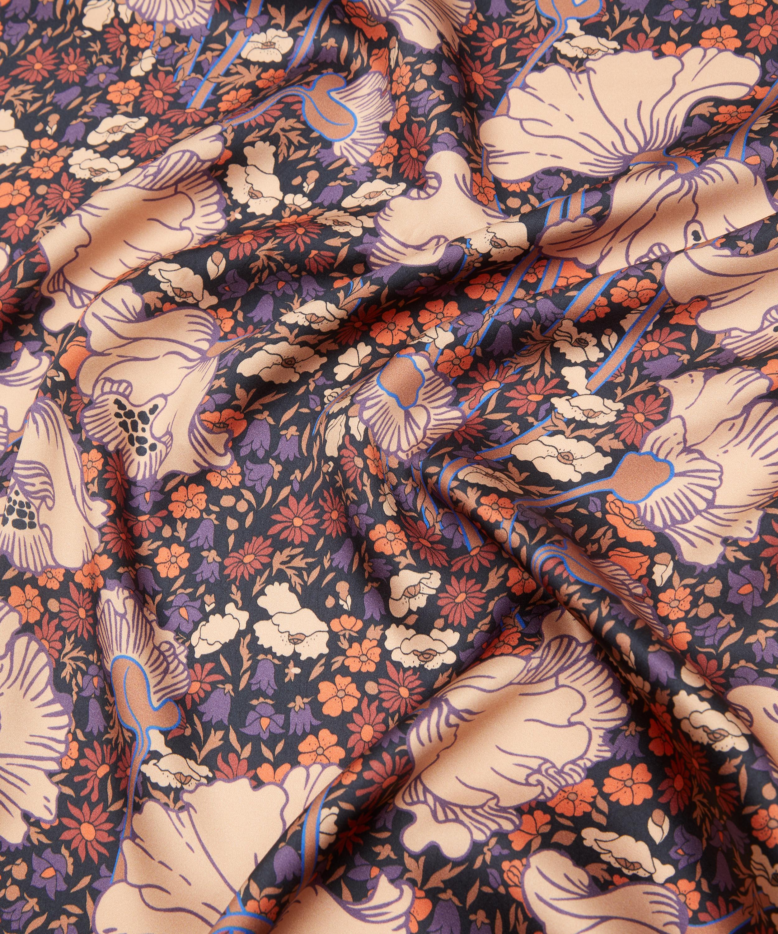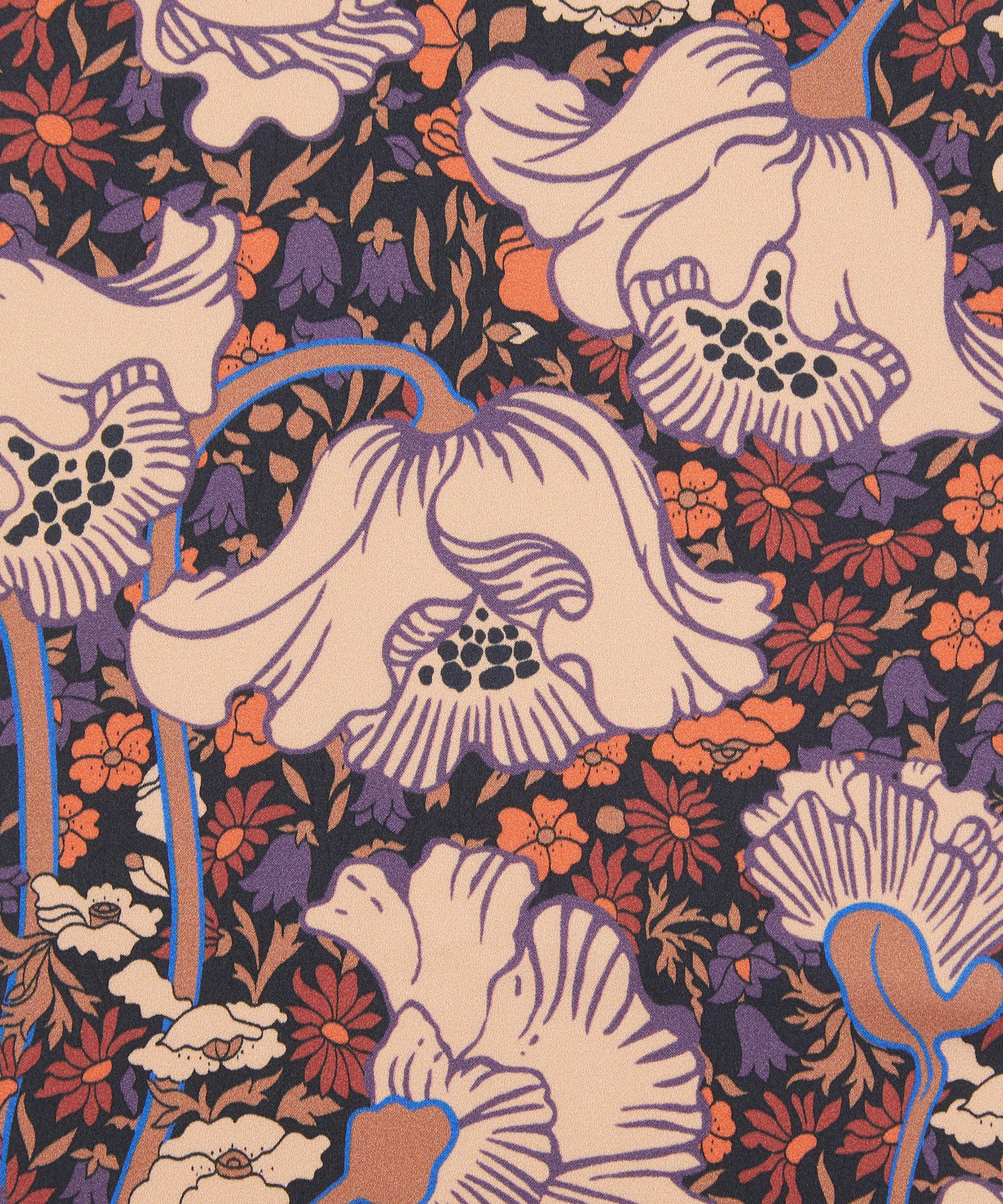 An explosive medley of Liberty poppies unveils layers of our colourful botanical history. The combination of Poppy & Daisy, boasting a nostalgic floral charm, alongside Clementina, an embodiment of Art Nouveau elegance, highlights the timeless versatility of this beloved flower and its adaptability across diverse aesthetic genres. In a fantastical meadow pattern, two iconic Liberty classics collide, demonstrating bold scale variations and an ingenious clash of styles. This print is part of the anniversary collection’s final chapter, Collectibles. Offering a design for each decade, this timeline of hero prints encapsulates 150 years - exploring the design house’s varied and influential handwriting while honouring key moments of creativity and discovery.