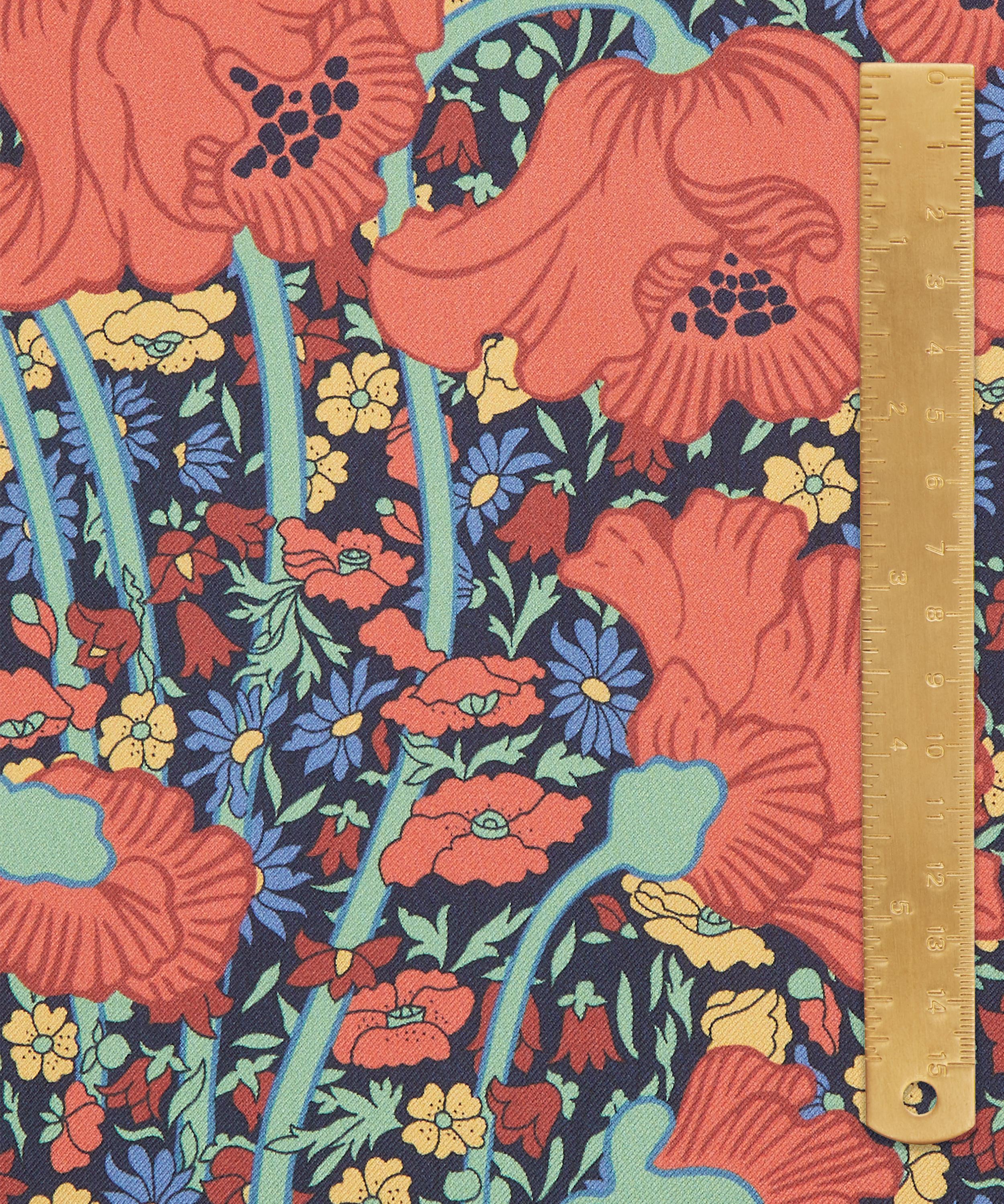 An explosive medley of Liberty poppies unveils layers of our colourful botanical history. The combination of Poppy & Daisy, boasting a nostalgic floral charm, alongside Clementina, an embodiment of Art Nouveau elegance, highlights the timeless versatility of this beloved flower and its adaptability across diverse aesthetic genres. In a fantastical meadow pattern, two iconic Liberty classics collide, demonstrating bold scale variations and an ingenious clash of styles. This print is part of the anniversary collection’s final chapter, Collectibles. Offering a design for each decade, this timeline of hero prints encapsulates 150 years - exploring the design house’s varied and influential handwriting while honouring key moments of creativity and discovery.