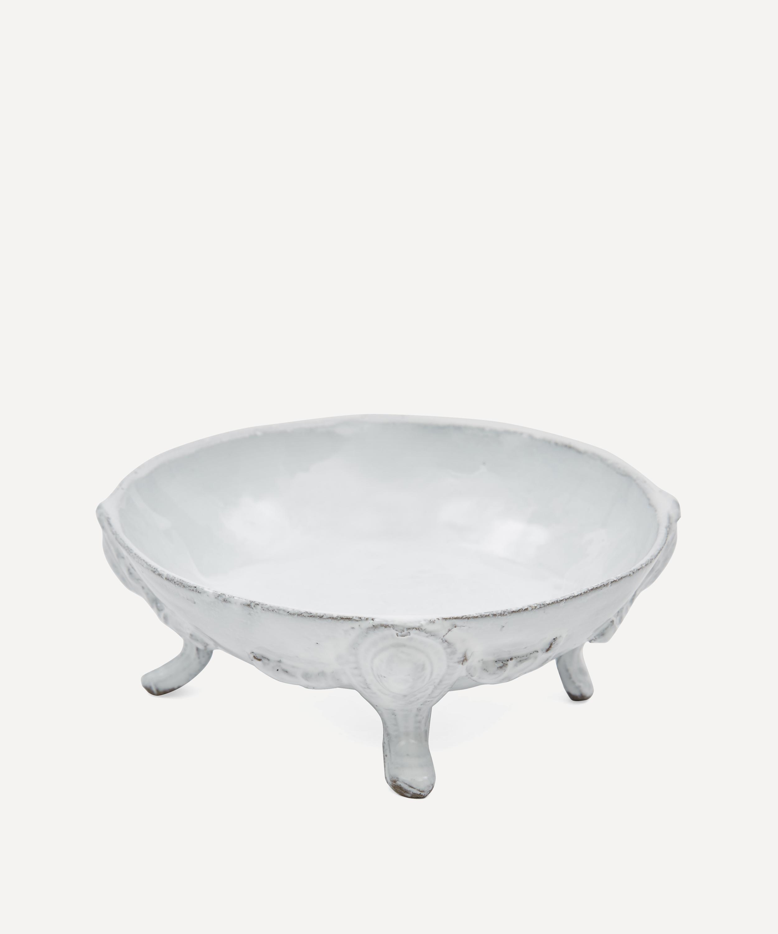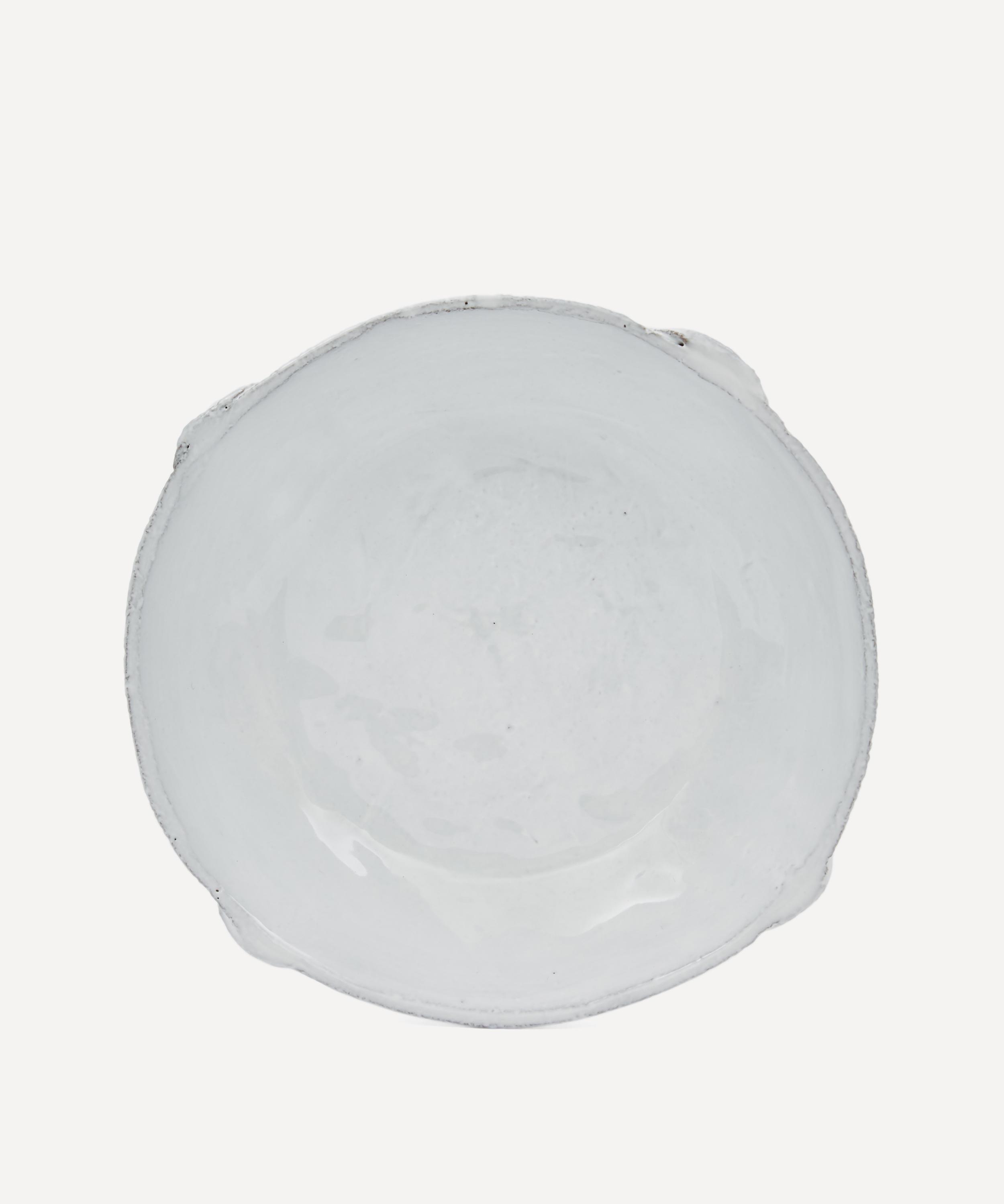 Votary of pre-industrial fabrication, Astier de Villatte is celebrated for being the one and only studio in Paris to hold and harbour the traditions of artisanal ceramic production. Restoring the ancestral systems of moulding and stamping, the Cleopatra dish is made using handcrafting techniques from the Middle Ages which involve moulding a handmade sheet of clay, double firing the ‘biscuit’ piece and glazing the product in white enamel – a lengthy process that involves a drying time of up to one month. Characterised by four decorative feet and exposed clay, the dish is engraved with the brand’s signature crest – depicting an interlacing A & V – alongside the initials of one of the 40 master artisans who created it. Each handmade piece tells a beautiful story, it romances and imparts a sense of nostalgia into its owner. Pair with other characterful pieces for a coordinated decorative approach.