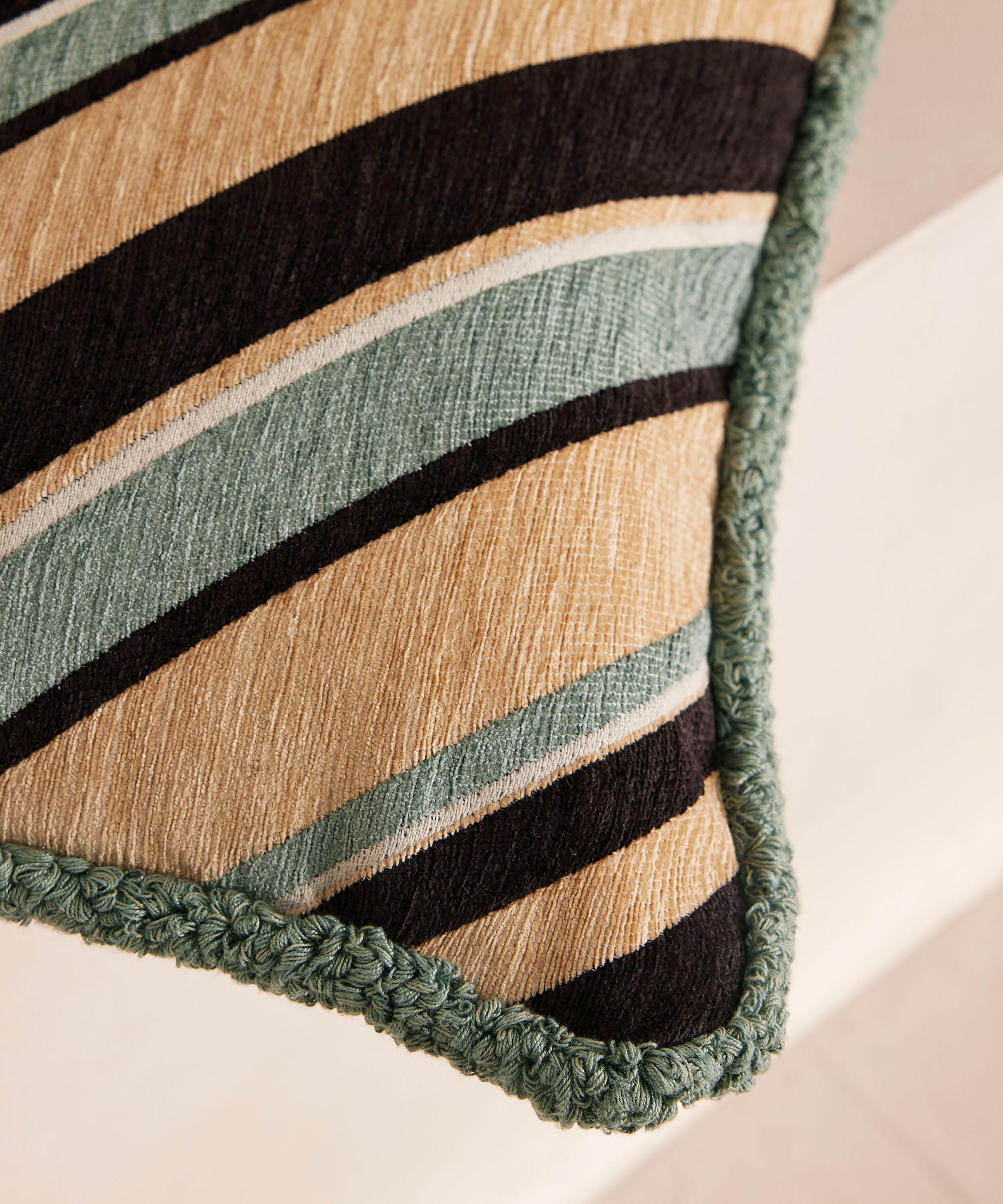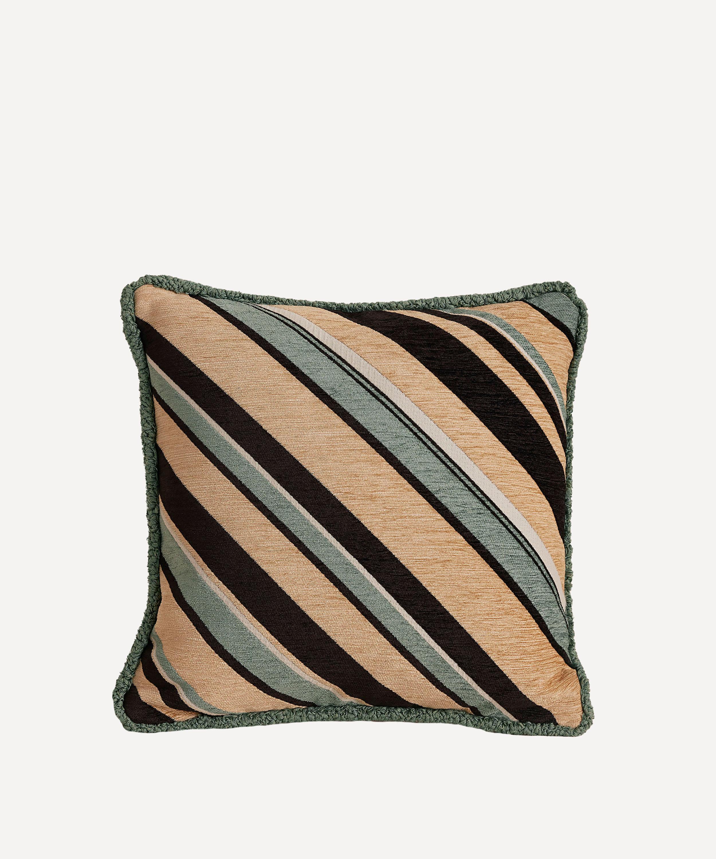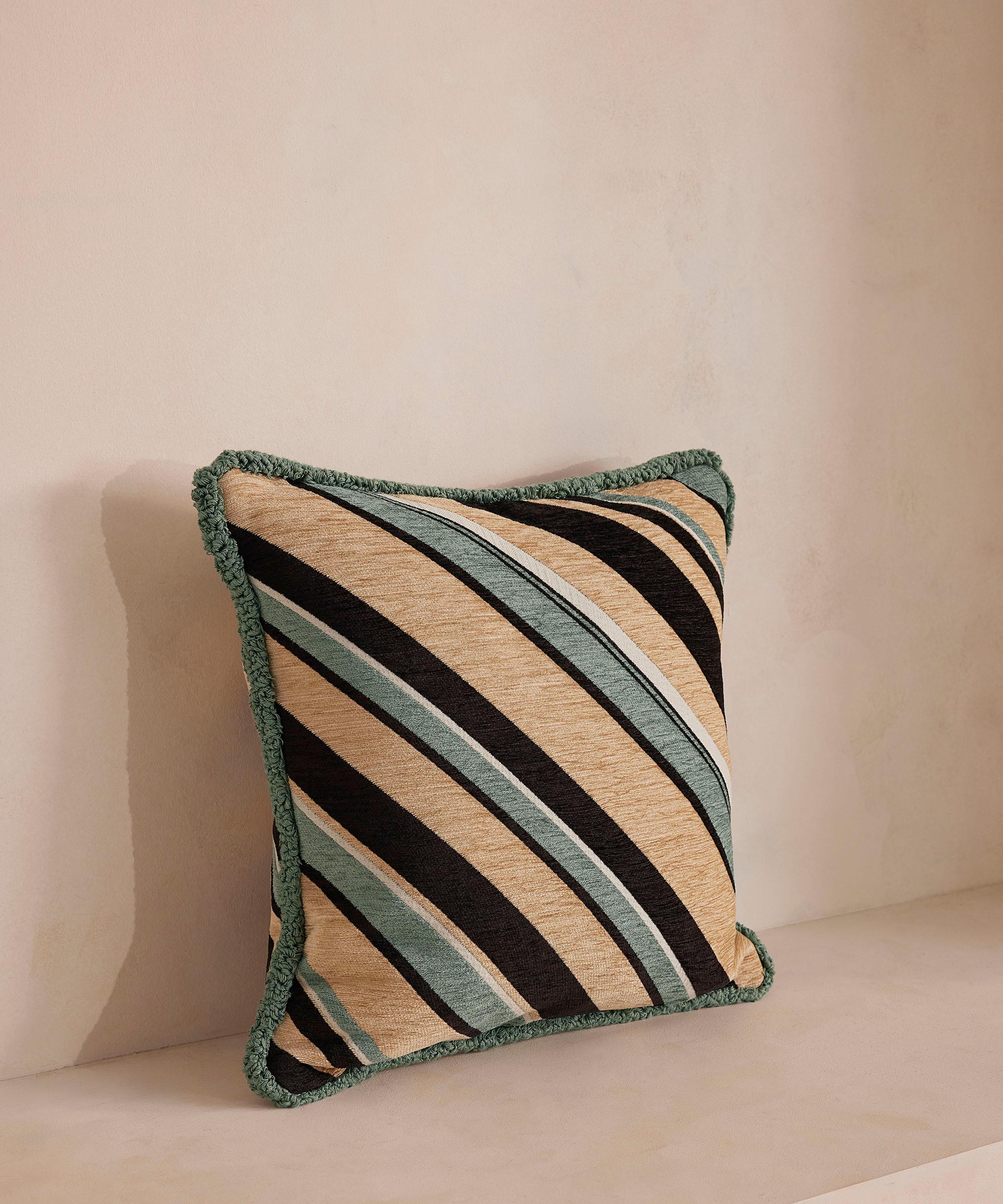 Chunky, contrasting stripes are spun into a tactile jacquard fabric of this square cushion - surrounded by ruched detailing for a striking finish.