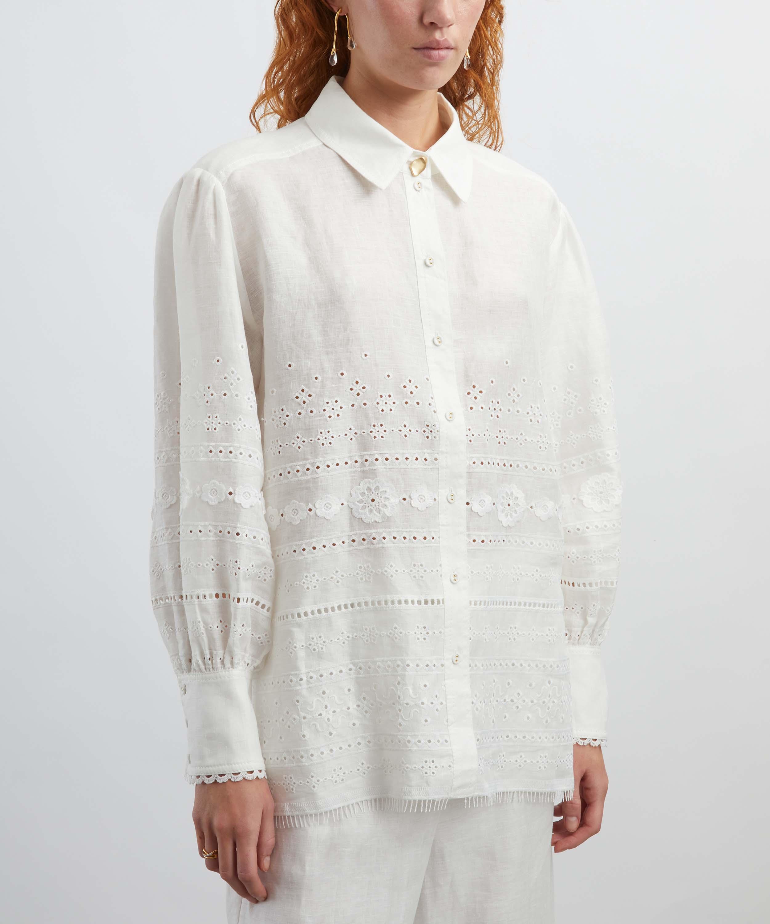 An elegant addition to your new-season wardrobe, Aje's Cloud Embroidered Shirt captures the Australian brand’s dedication to raw, unrefined beauty and sophisticated design.