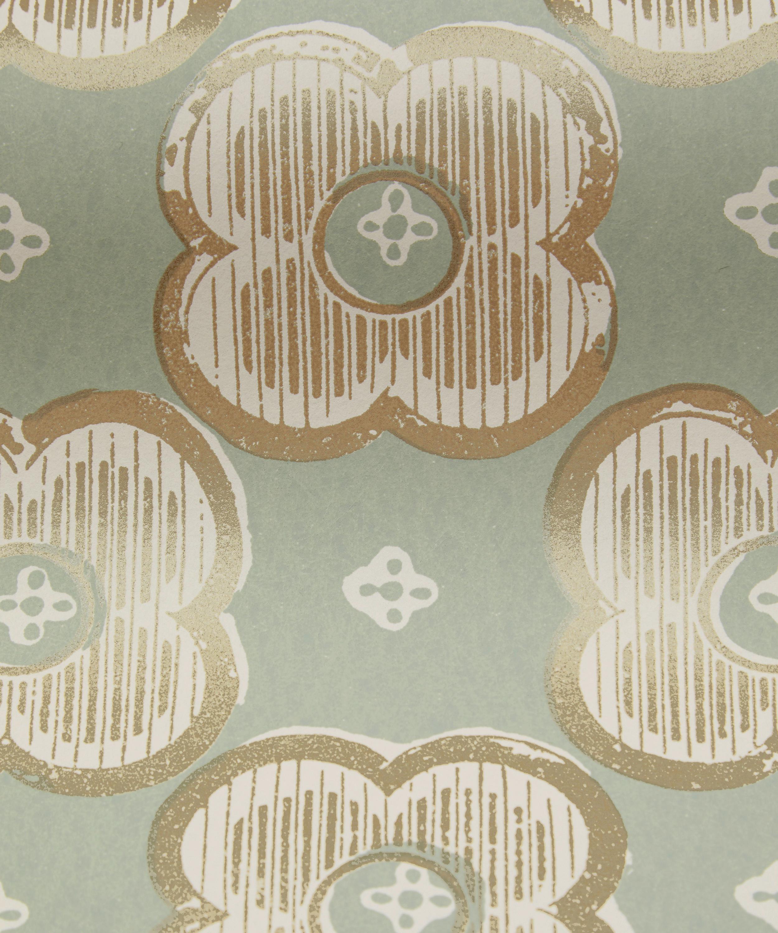Based on a Liberty print impression from the 1910s, this bold and minimal design reduces organic forms to geometric abstractions. A single four-leaf clover is observed through the prism of stylisation – purified and distilled to discover its structural essence. Printed in England in two colourways on a pressed fibre paper using a conventional roller printing, the result is suggestive of a botanical blueprint enriched with mottled textures and subtle tonalities.