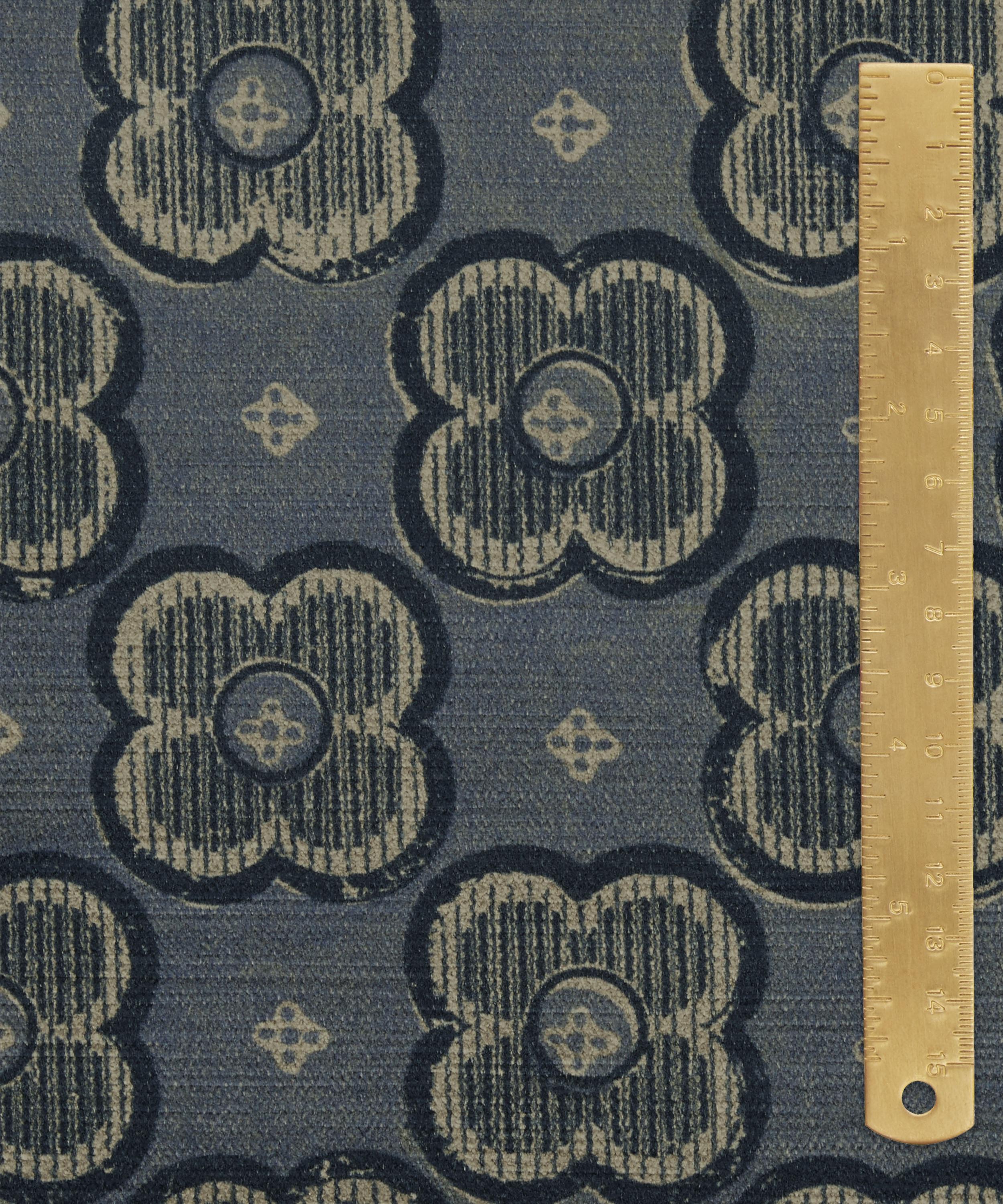 Based on a Liberty paper impression from the 1910s, this bold and minimal design reduces organic forms to geometric abstractions. A single four-leaf clover motif is observed through the prism of stylisation – purified and distilled to discover its structural essence. Suggestive of a botanical blueprint, mottled textures and subtle tonalities highlight the hand-crafted, block print effect. Printed on a richly textured, soft velvet base with super abrasion and exquisite drape, this fabric is suitable for upholstery, drapery, cushions, and accessories.