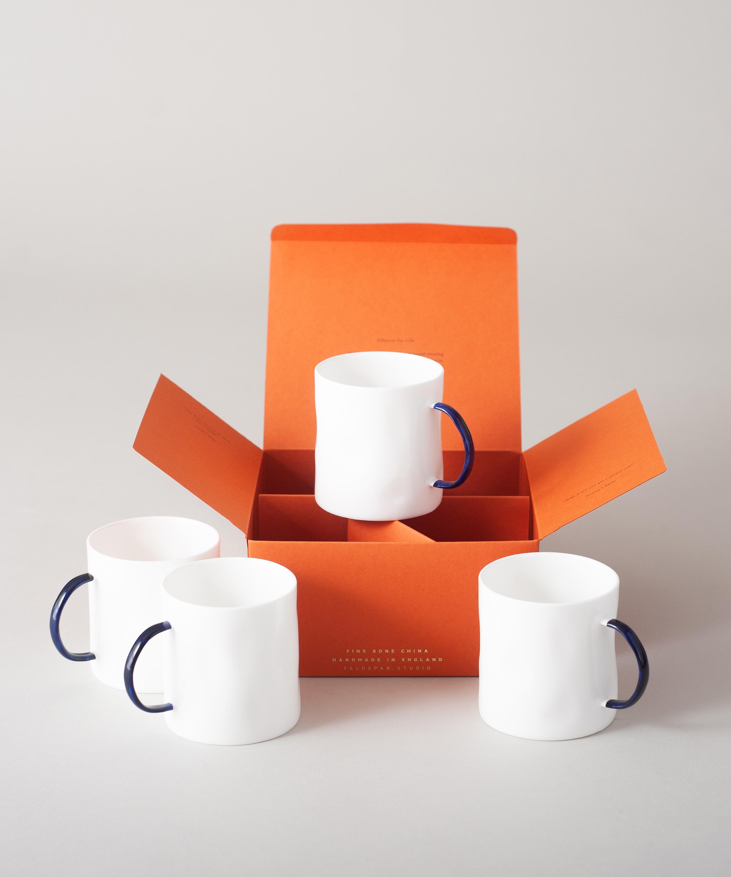Handcrafted by a family pottery in Soke-on-Trent from a durable fine bone china, these mugs boast an elegant design and are complete with a transparent glaze to emphasise its dimpled profile – features hand-painted deep cobalt blue detailing, echoing the palette of traditional chinaware.