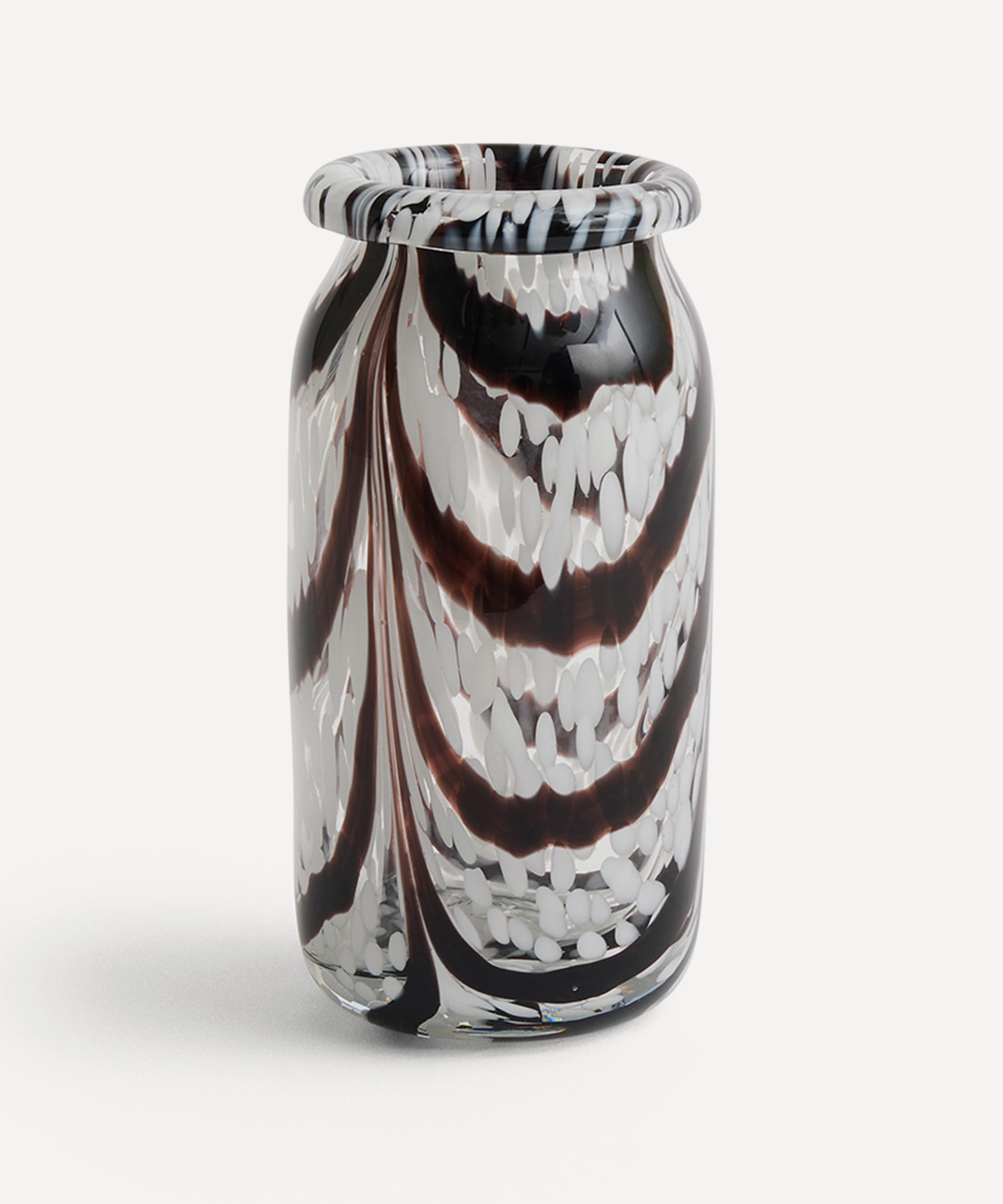 Handmade using a meticulous glassblowing technique that involves multiple layers of coloured glass dots, this piece brings a contemporary twist to any space, channelling HAY's clean aesthetic into wooden shelves or table settings.