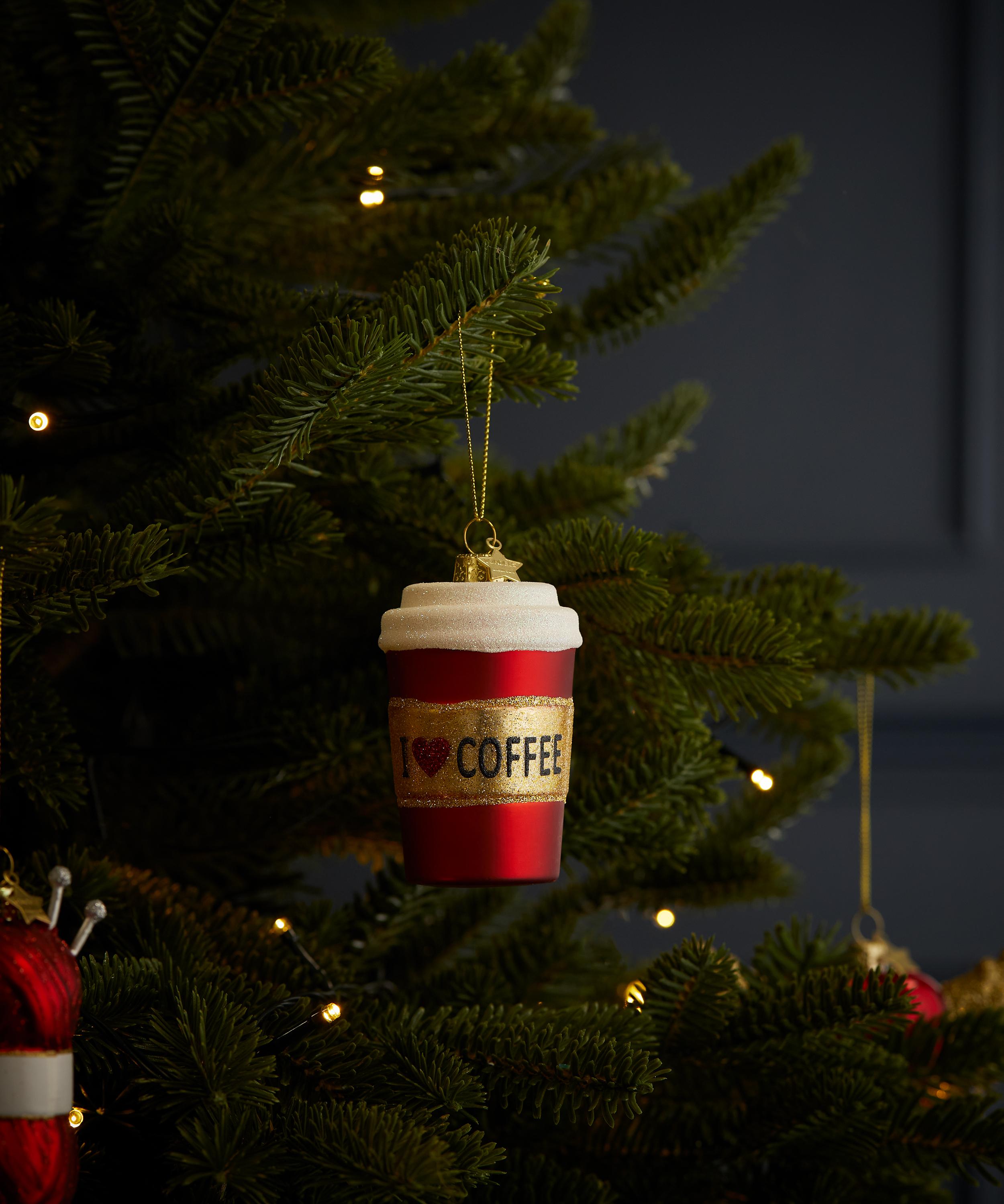 Add a whimsical twist to your sesonal décor with the coffee mug ornament to bring warmth and charm to this year's pine.