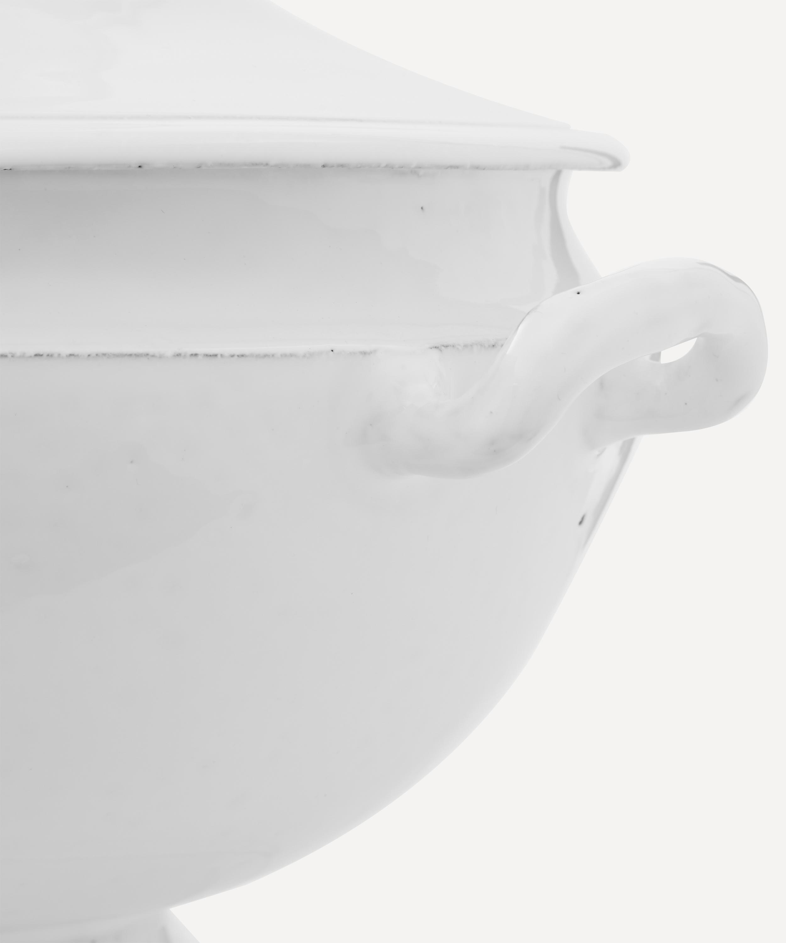 Votary of pre-industrial fabrication, Astier de Villatte is celebrated for being the one and only studio in Paris to hold and harbour the traditions of artisanal ceramic production. Restoring the ancestral systems of moulding and stamping, the Colbert tureen is made using handcrafting techniques from the Middle Ages which involve moulding a handmade sheet of clay, double firing the ‘biscuit’ piece and glazing the product in white enamel – a lengthy process that involves a drying time of up to one month. Characterised by a large, round silhouette with a domed lid, side handles and an indented base, the tureen is engraved with the brand’s signature crest – depicting an interlacing A & V – alongside the initials of one of the 40 master artisans who created it. Each handmade piece tells a beautiful story, it romances and imparts a sense of nostalgia into its owner. Use it to serve up hot stews, casseroles or hearty curries.