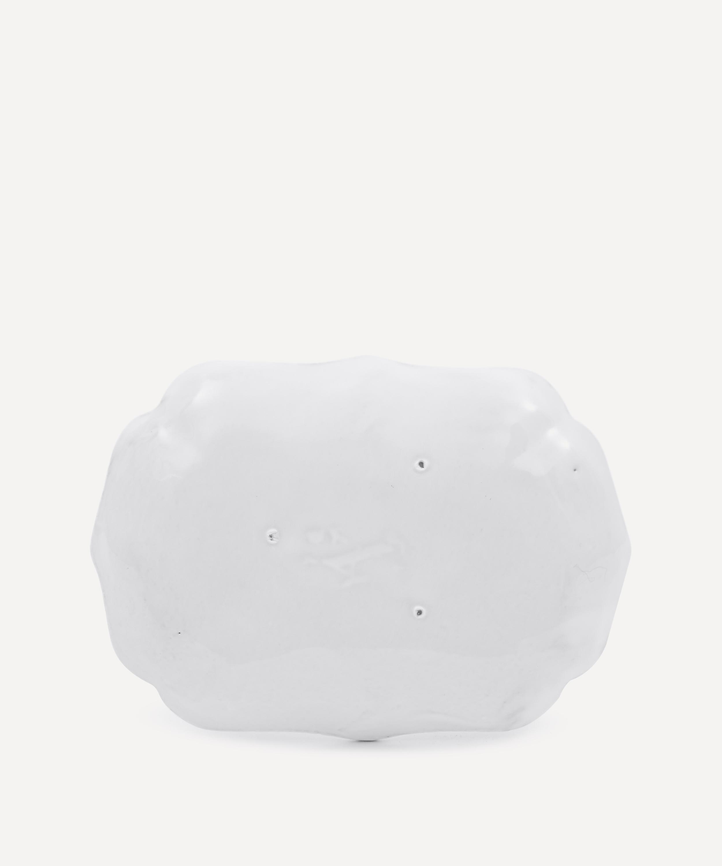 Votary of pre-industrial fabrication, Astier de Villatte is celebrated for being the one and only studio in Paris to hold and harbour the traditions of artisanal ceramic production. Restoring the ancestral systems of moulding and stamping, the Colbert tureen is made using handcrafting techniques from the Middle Ages which involve moulding a handmade sheet of clay, double firing the ‘biscuit’ piece and glazing the product in white enamel – a lengthy process that involves a drying time of up to one month. Characterised by an opulent rim, the saucer is engraved with the brand’s signature crest – depicting an interlacing A & V – alongside the initials of one of the 40 master artisans who created it. Each handmade piece tells a beautiful story, it romances and imparts a sense of nostalgia into its owner. Use it to serve up bite-sized appetisers or small snacks.