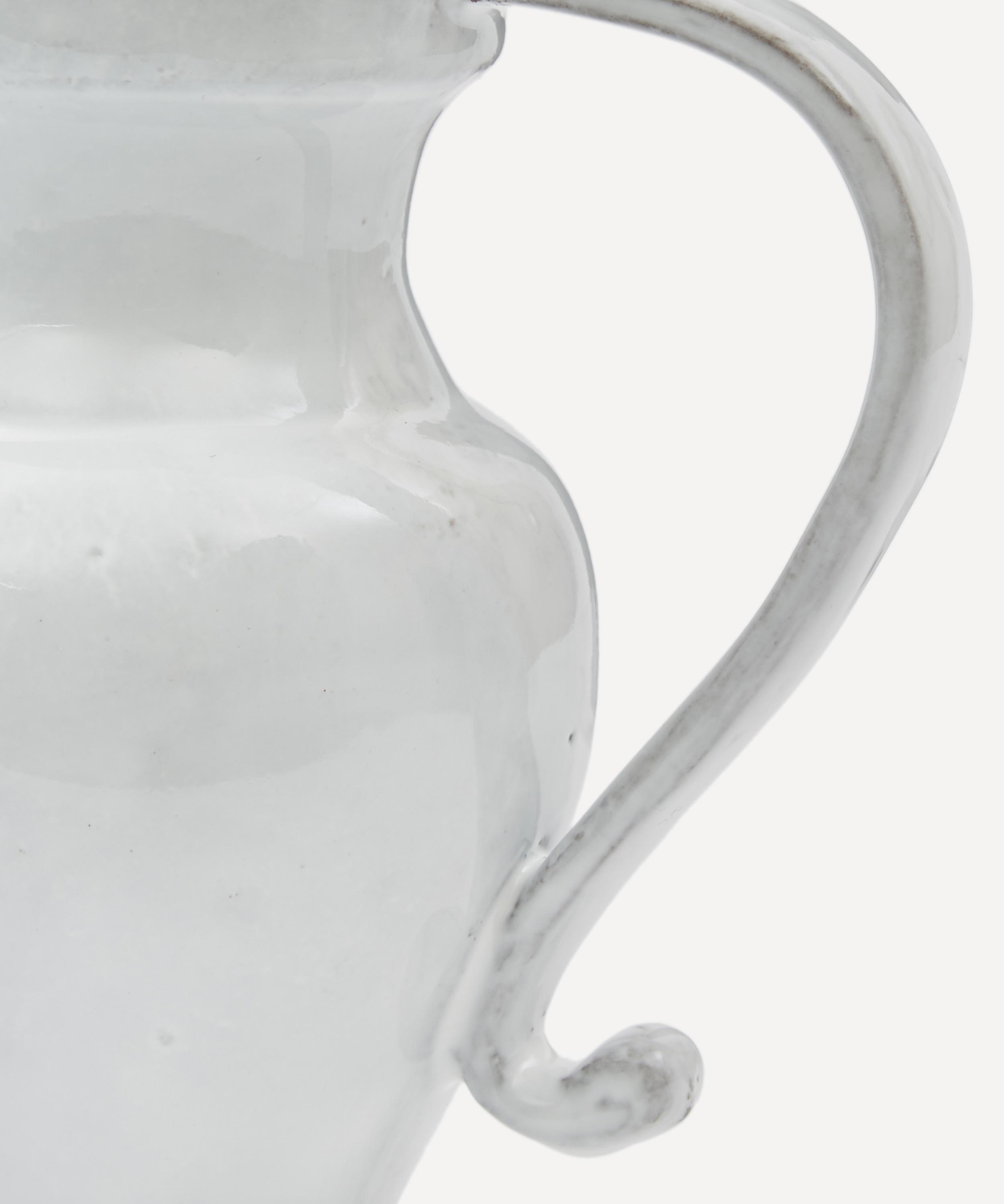 Votary of pre-industrial fabrication, Astier de Villatte is celebrated for being the one and only studio in Paris to hold and harbour the traditions of artisanal ceramic production. Restoring the ancestral systems of moulding and stamping, the Colbert small pitcher is made using handcrafting techniques from the Middle Ages which involve moulding a handmade sheet of clay, double firing the ‘biscuit’ piece and glazing the product in white enamel – a lengthy process that involves a drying time of up to one month. Characterised by an opulent spout and curvacious form and handle, the Colbert small pitcher is engraved with the brand’s signature crest – depicting an interlacing A & V – alongside the initials of one of the 40 master artisans who created it. Each handmade piece tells a beautiful story, it romances and imparts a sense of nostalgia into its owner. Use it to serve up hot or cold drinks at breakfast or family barbeques.