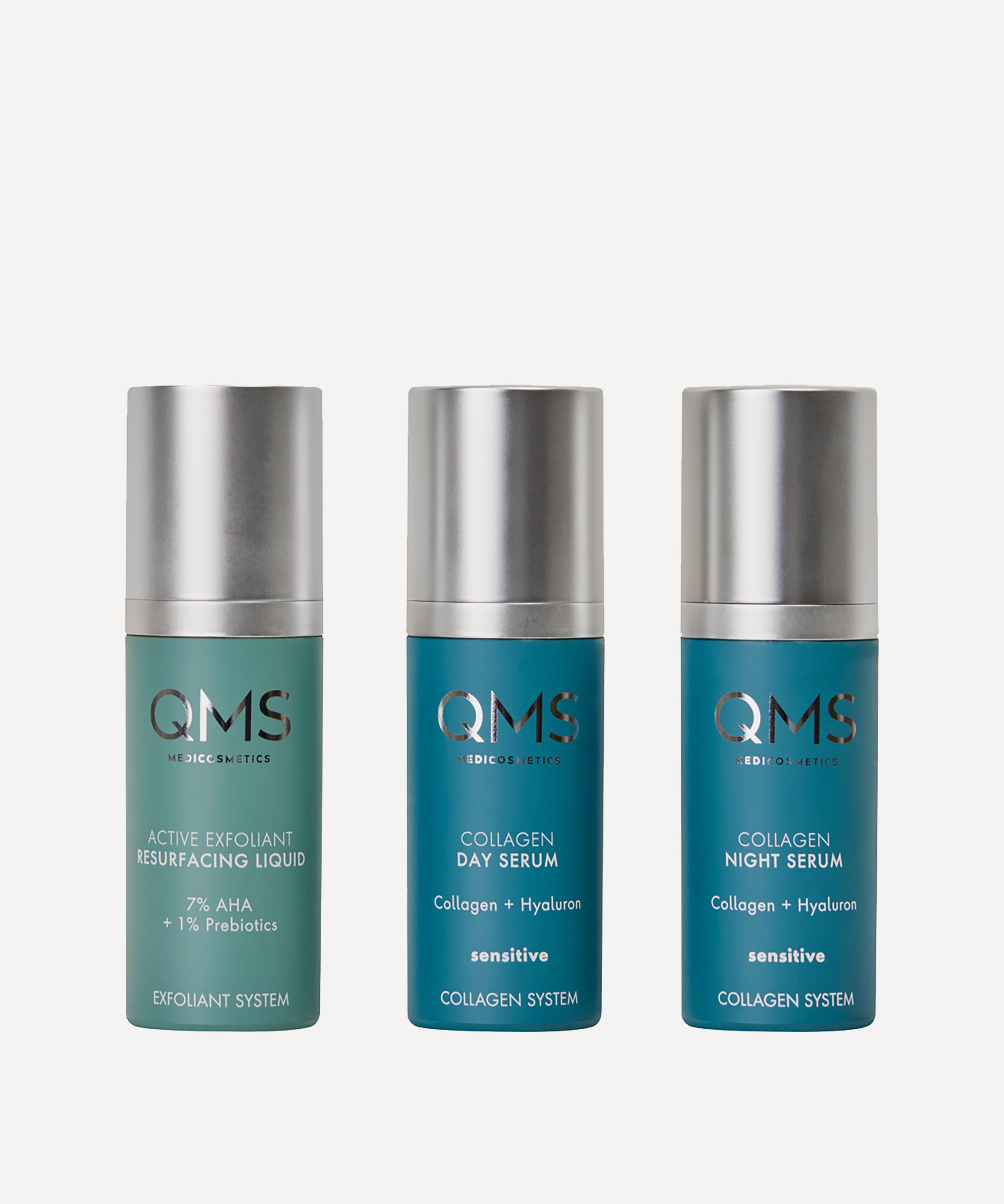 Formulated specifically for sensitive skin, this 3-step Collagen System Sensitive is QMS Medicosmetics' answer to youthful, healthy skin.