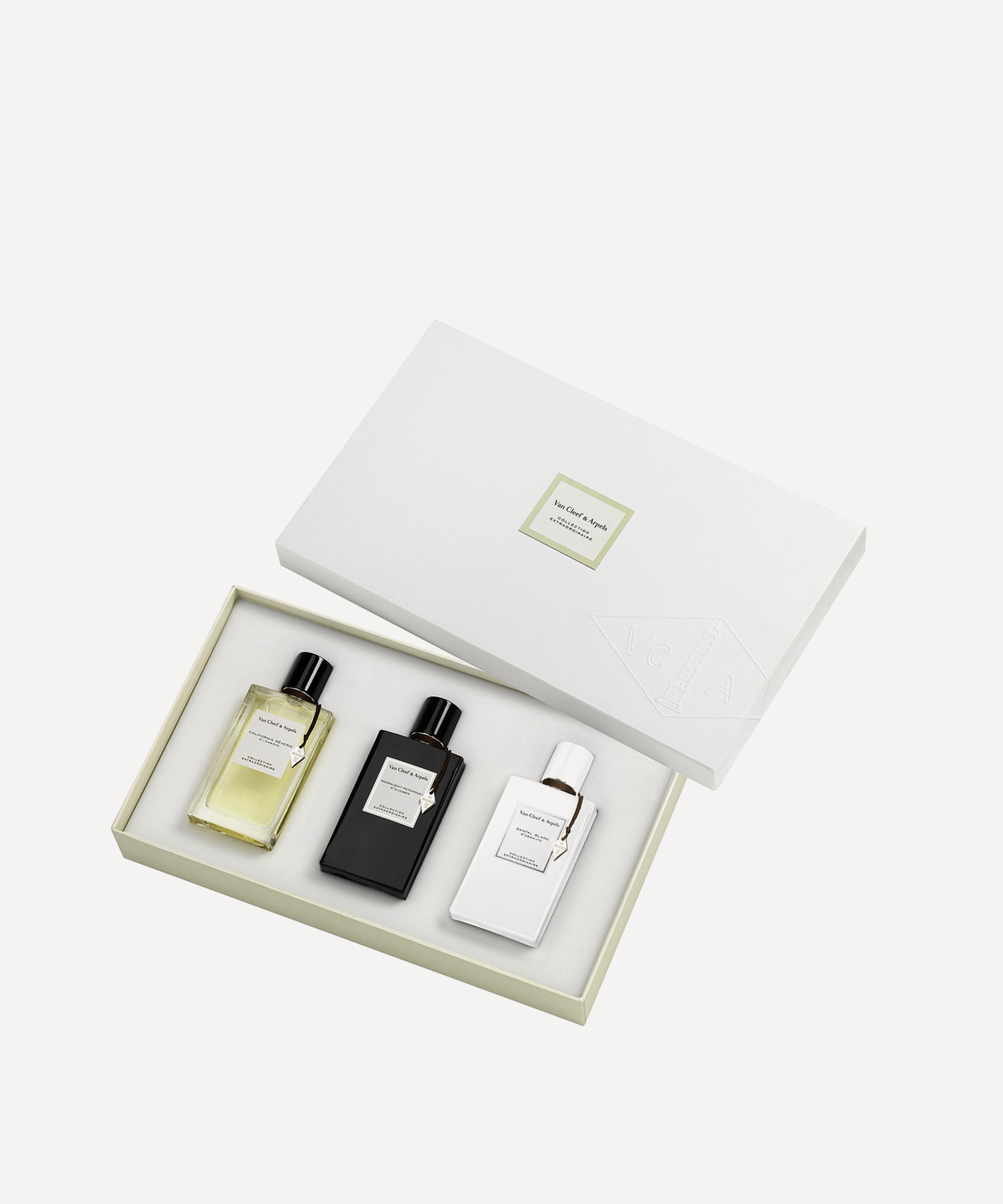 Discover the decadent fragrance repertoire of Van Cleef & Arpel's with the Collection Extraordinaire California Rêverie Travel Set - presented in a luxury gift box, it makes a lavish treat for loved ones this Christmas. Showcasing a trio of the brand's intoxicating scents, including the sweet, floral California Rêverie bursting with bright notes of tangy mandarin, sweet neroli, floral Indian sambac, jasmine and frangipani, in travel-friendly bottles.