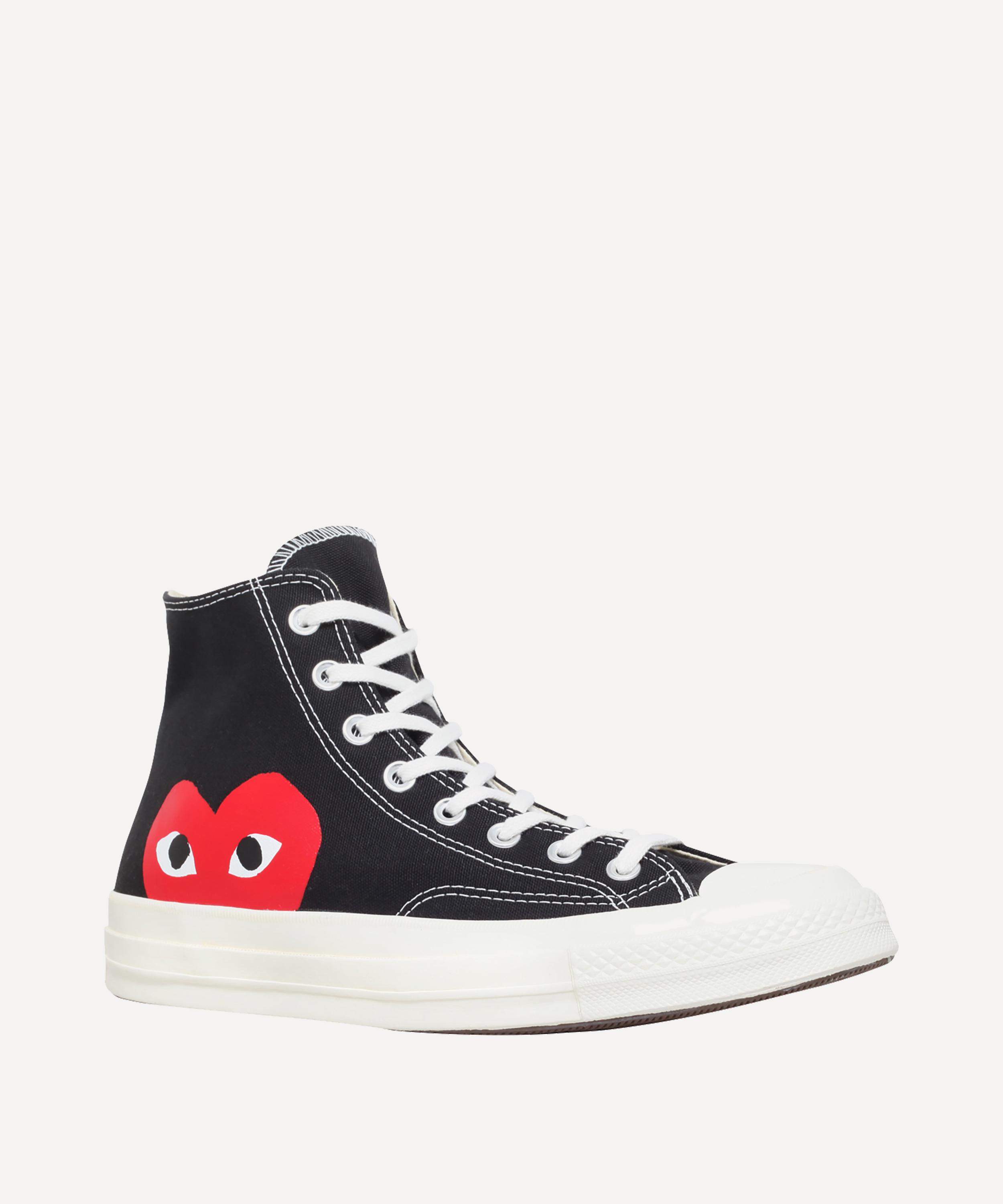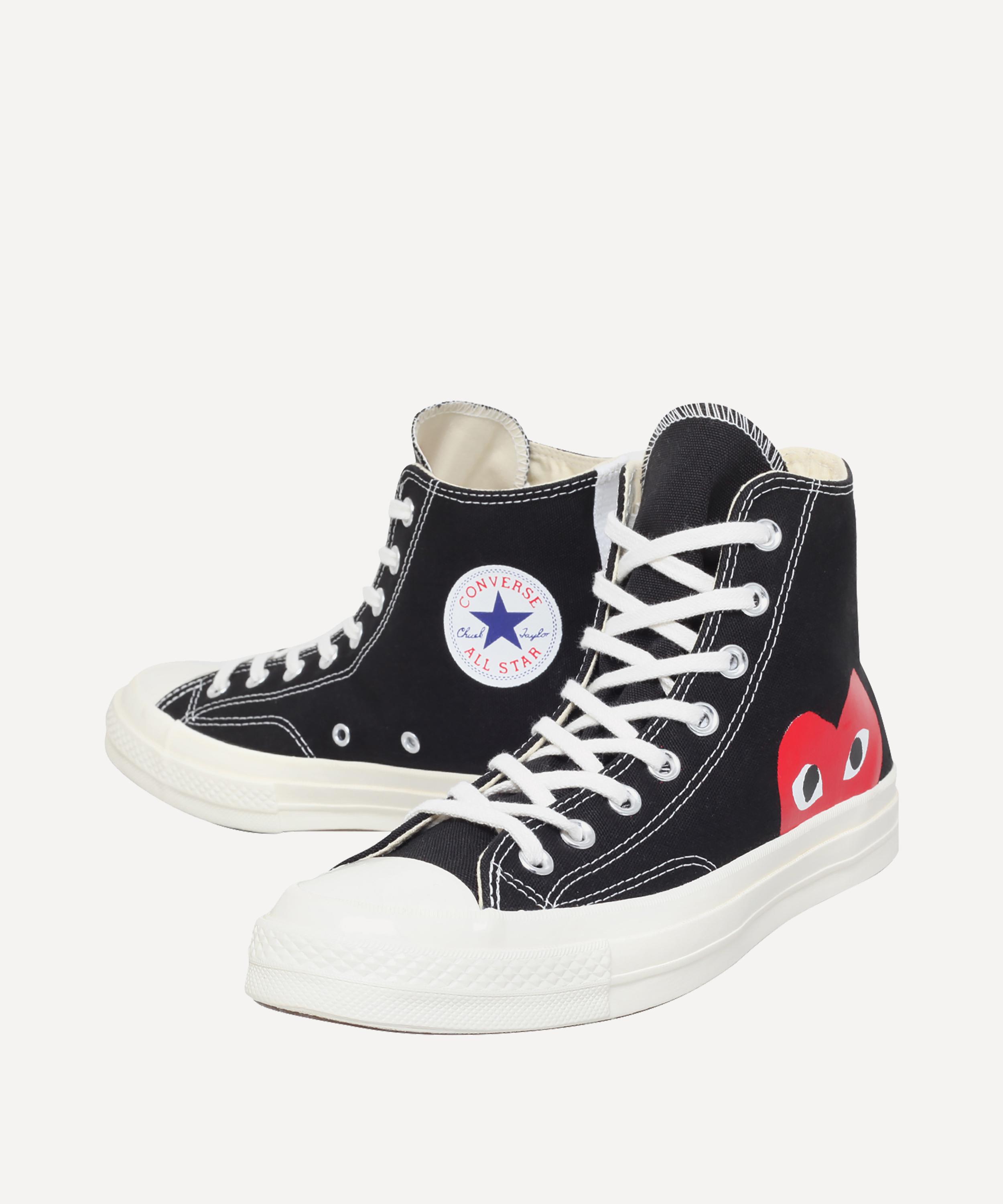 - Features Converse’s Chuck Taylor logo and Comme des Garçons Play’s heart logo