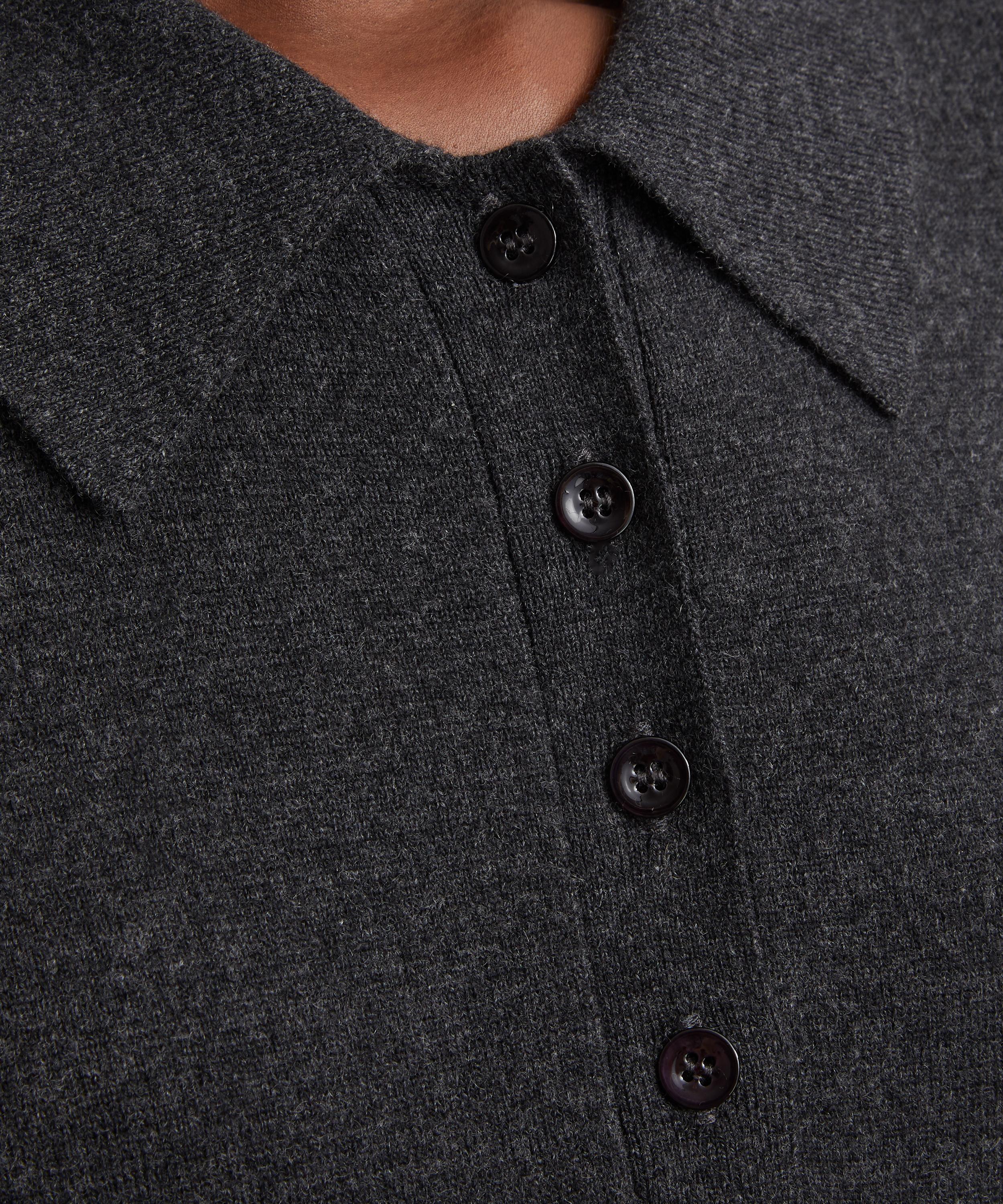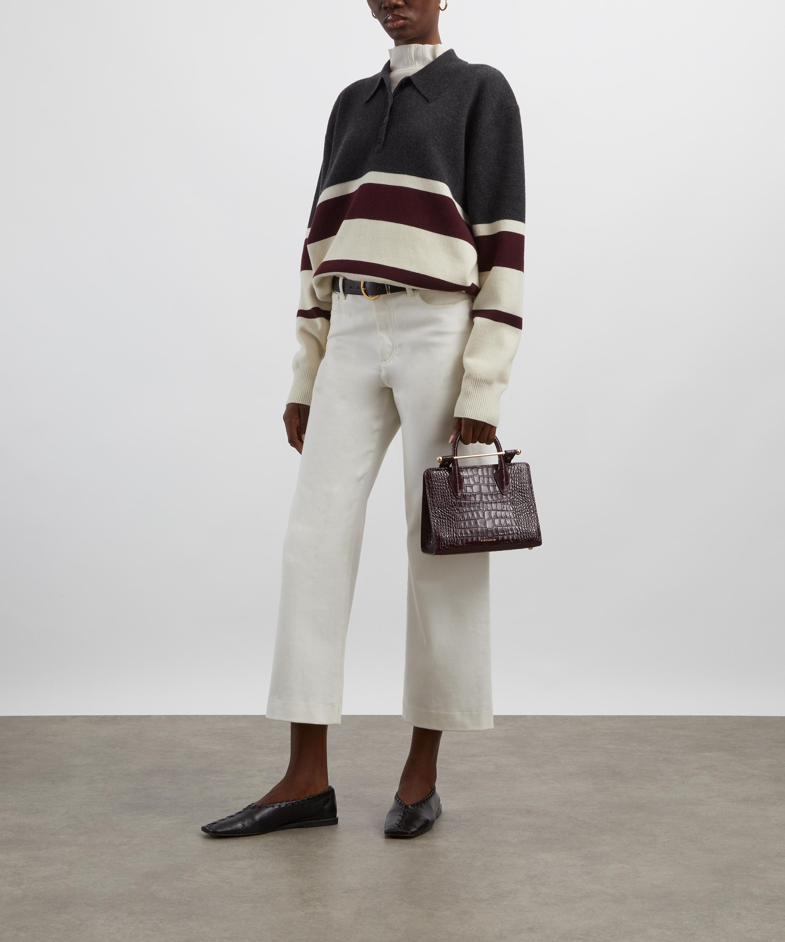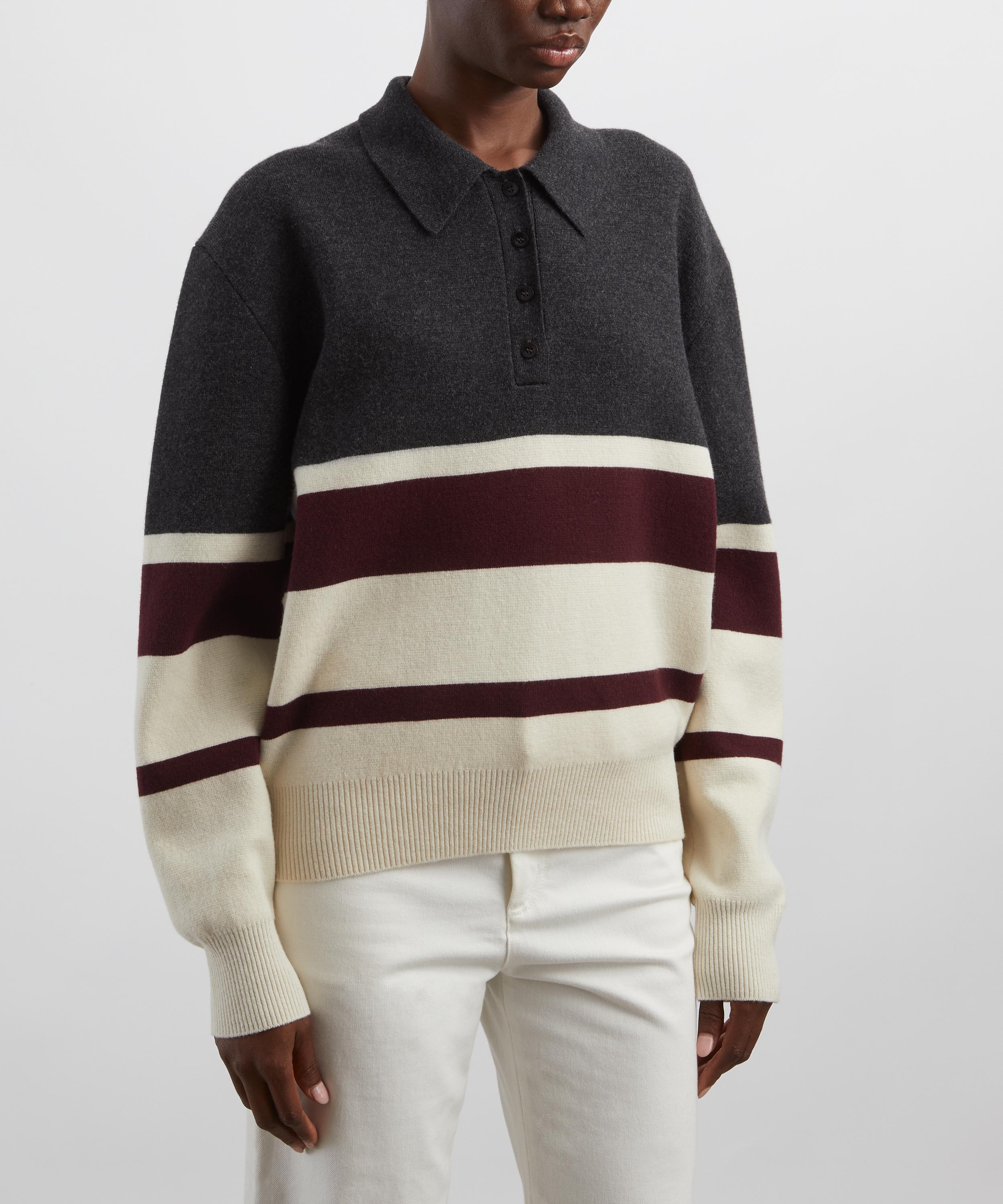 An instant staple, this striped polo is crafted from a luxuriously soft wool-cashmere blend. Designed with a relaxed fit, dropped shoulders, and long sleeves, it's finished with a flat-knit collar and partial placket for timeless appeal.