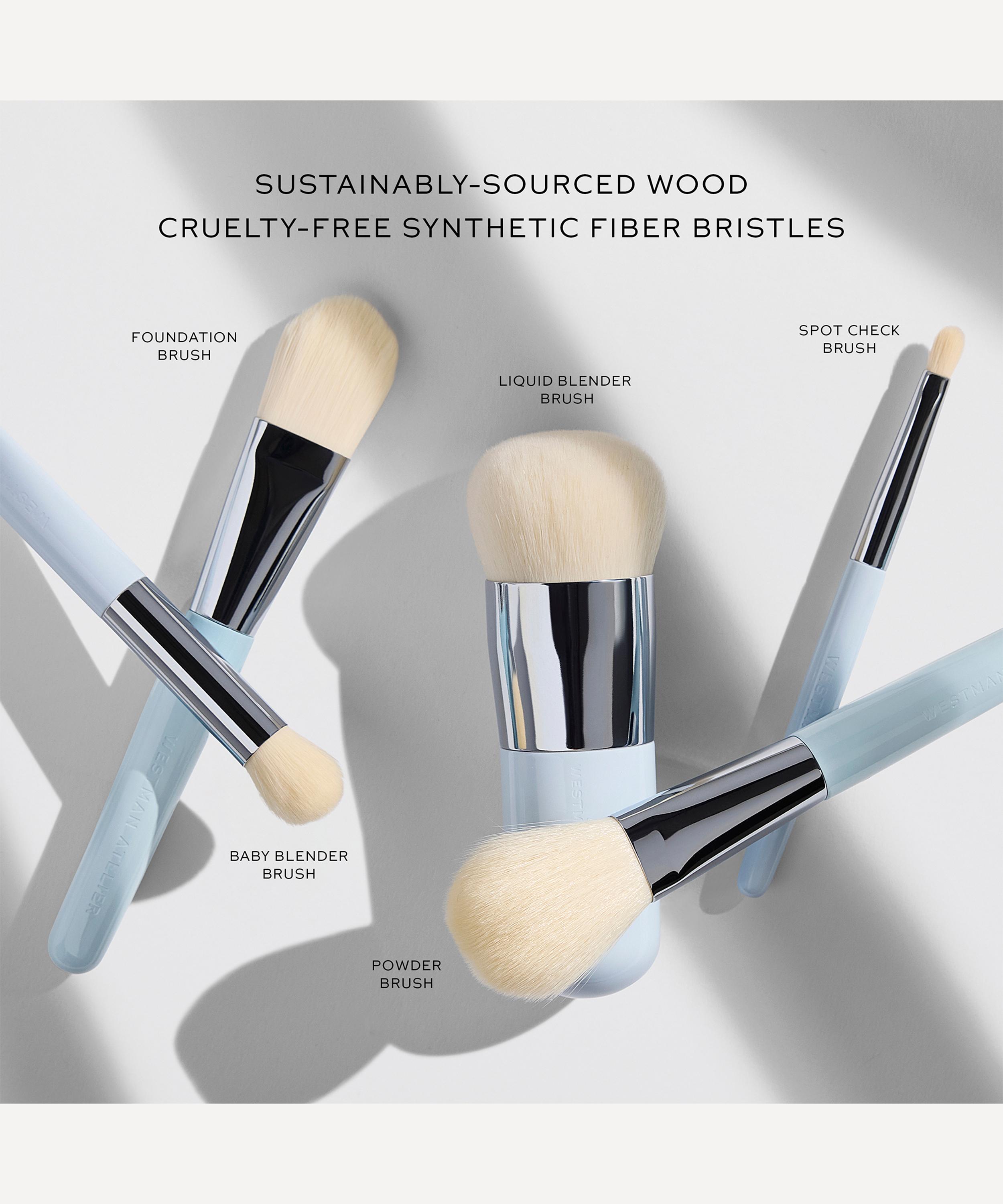 - Includes: Foundation Brush, Liquid Blender Brush, Powder Brush, Baby Blender Brush, Spot Check Brush