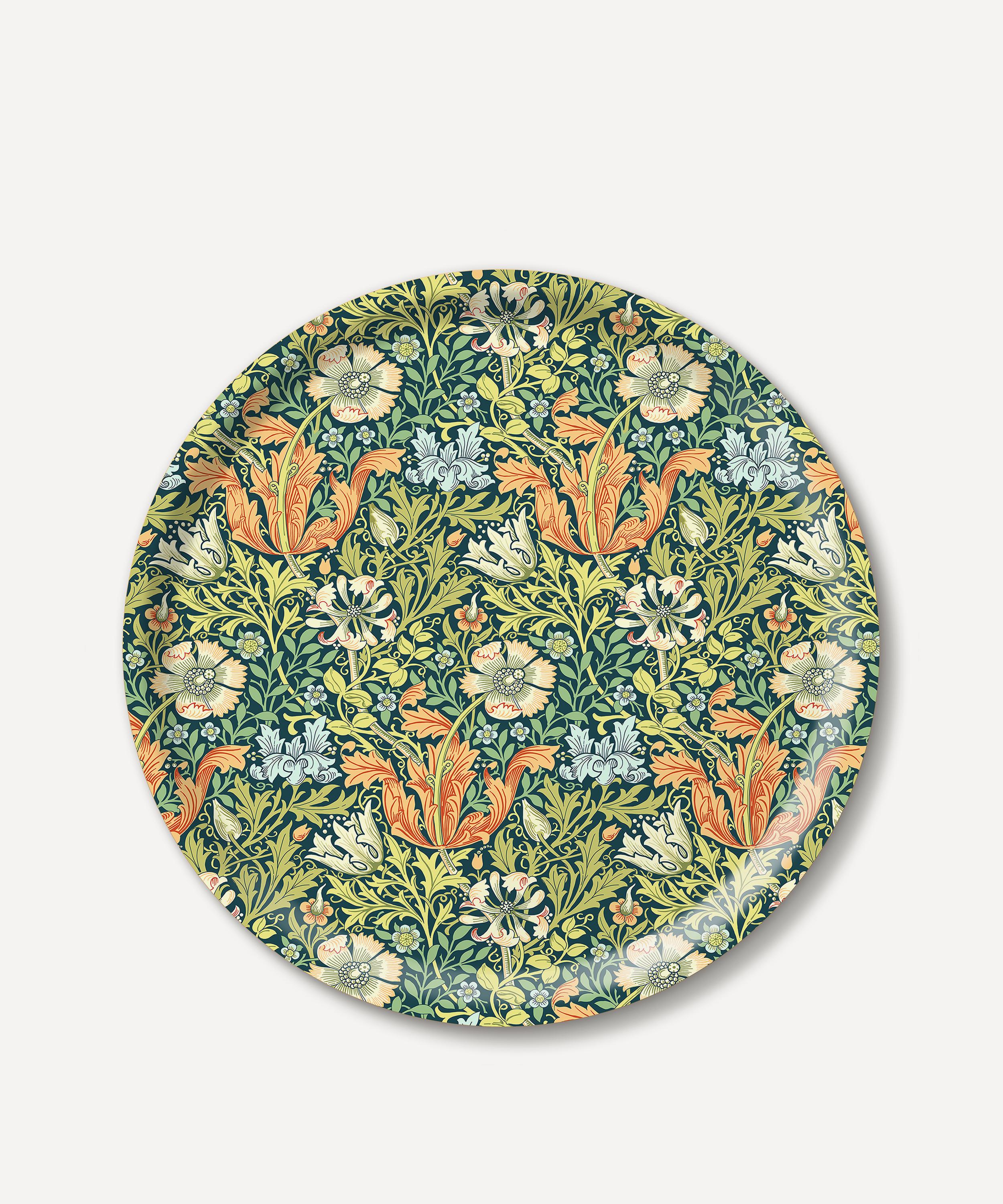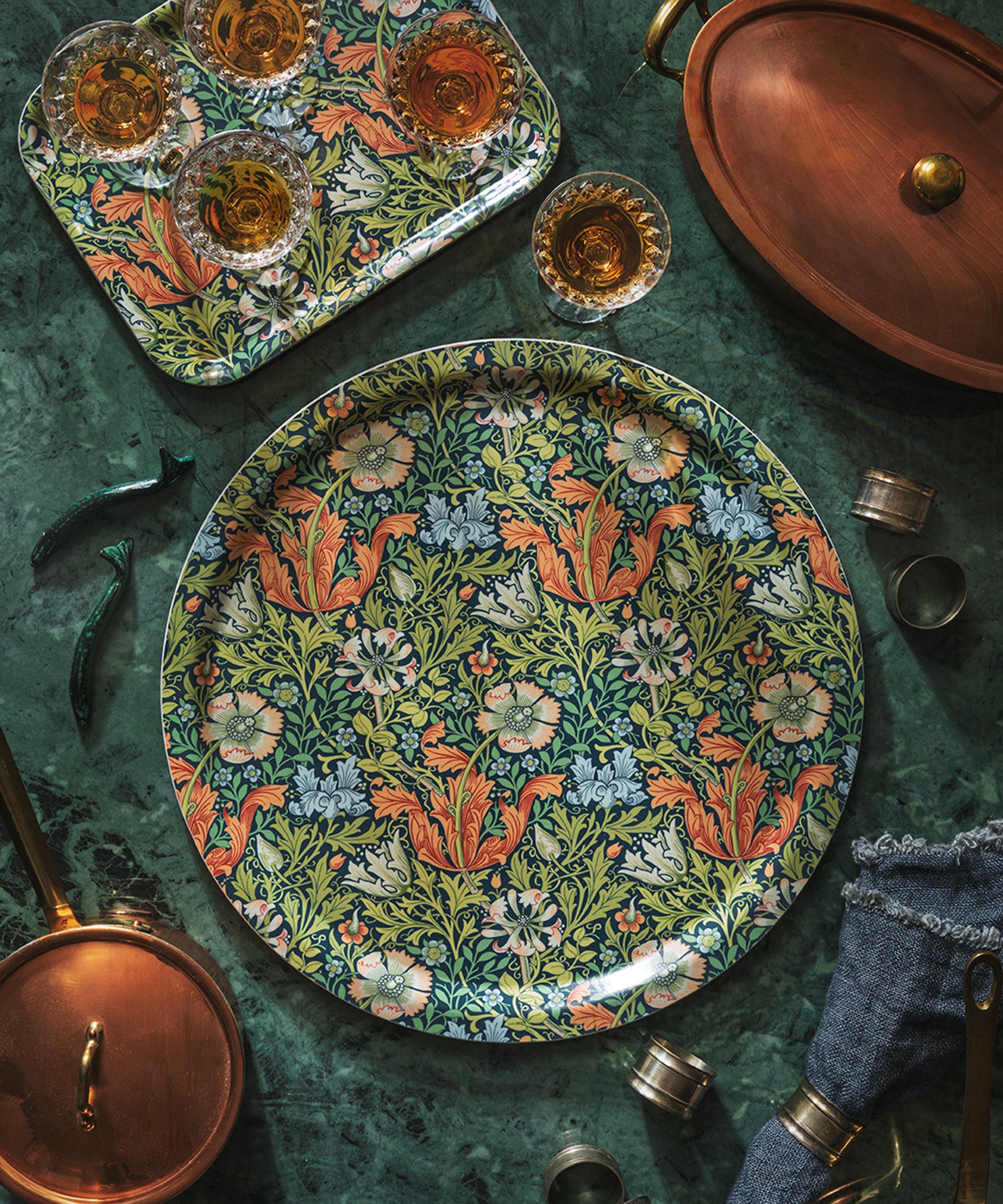 Part of the William Morris collection, this versatile tray has been dressed in Morris & Company's classic Compton pattern around its silhouette in a palette of rich, vibrant hues. Crafted from Scandinavian birchwood with a durable melamine coating, this tray is a timeless addition to your interior styling arsenal.