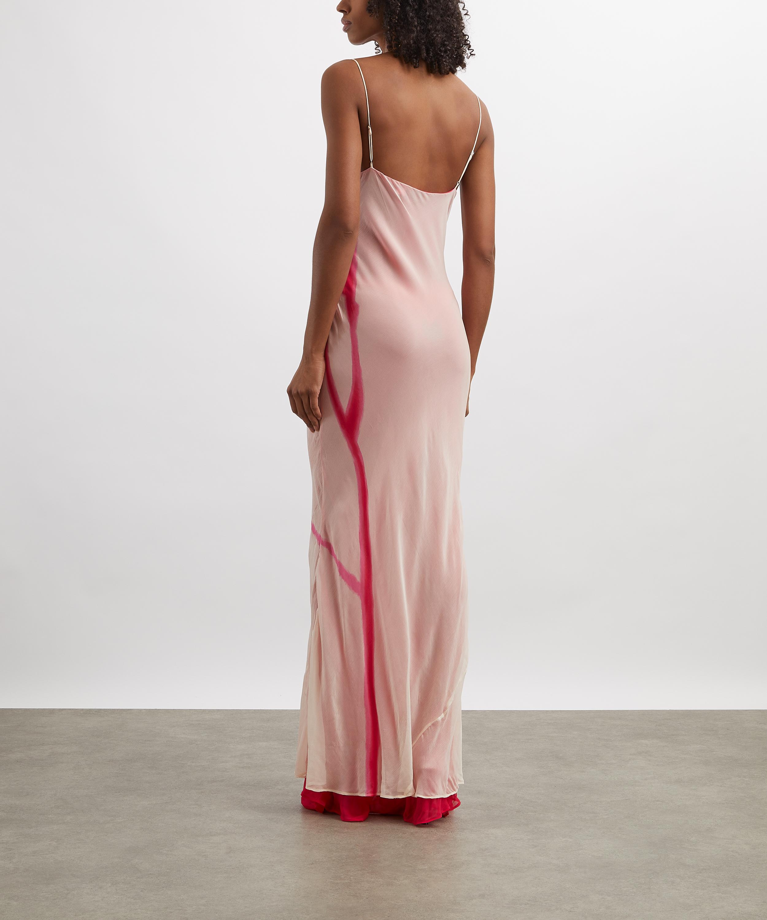 Adorned with tropical pink flowers, this double-layered slip dress skims the body with fluid elegance, finished with soft cowl neckline, delicate spaghetti straps, and a hot-pink underlayer.