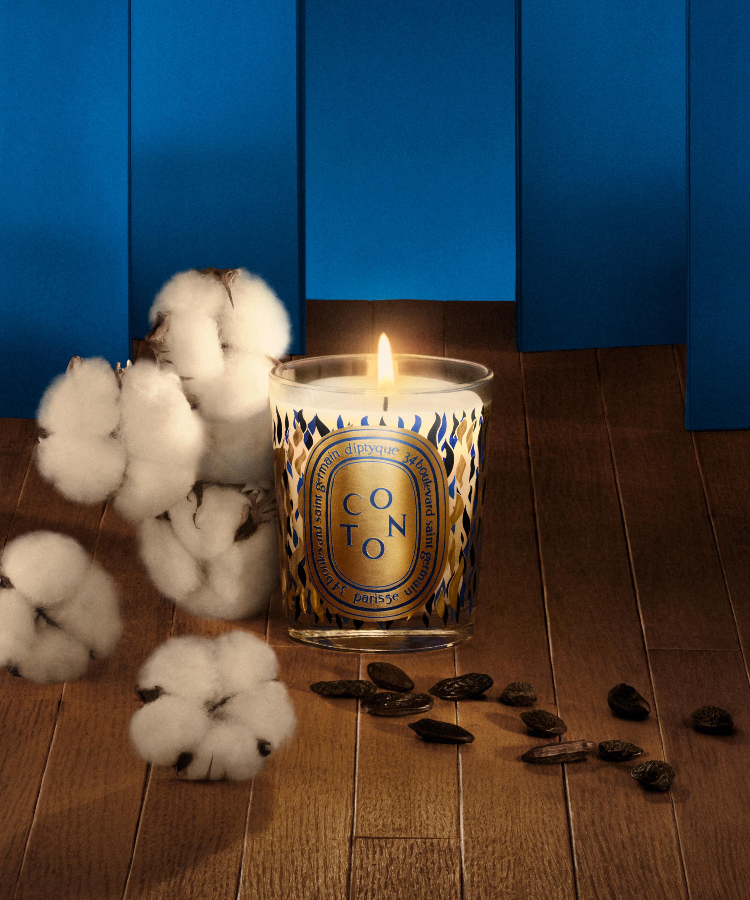 Bringing an indulgent olfactive atmosphere to your home this season, Diptyque's limited edition Coton scented candle emits a comforting, powdery fragrance with notes of tonka bean, iris and musk.