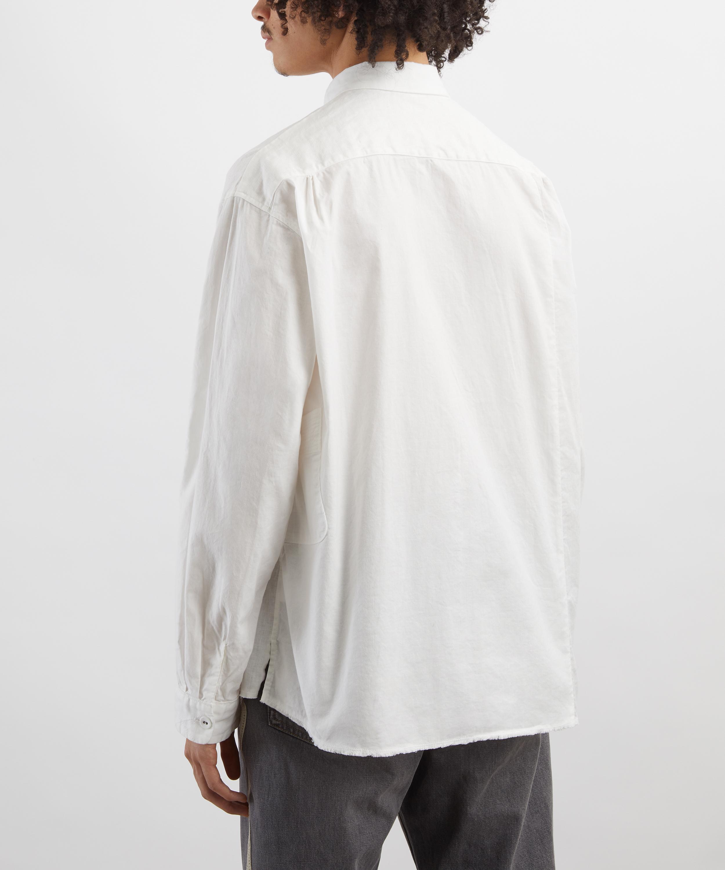 Crafted in Japan from a cotton–linen blend, this shirt showcases a patchwork design of contrasting panels. A classic regular fit and spread collar are complemented by a placket secured with an assortment of buttons for a rustic, artisanal finish.