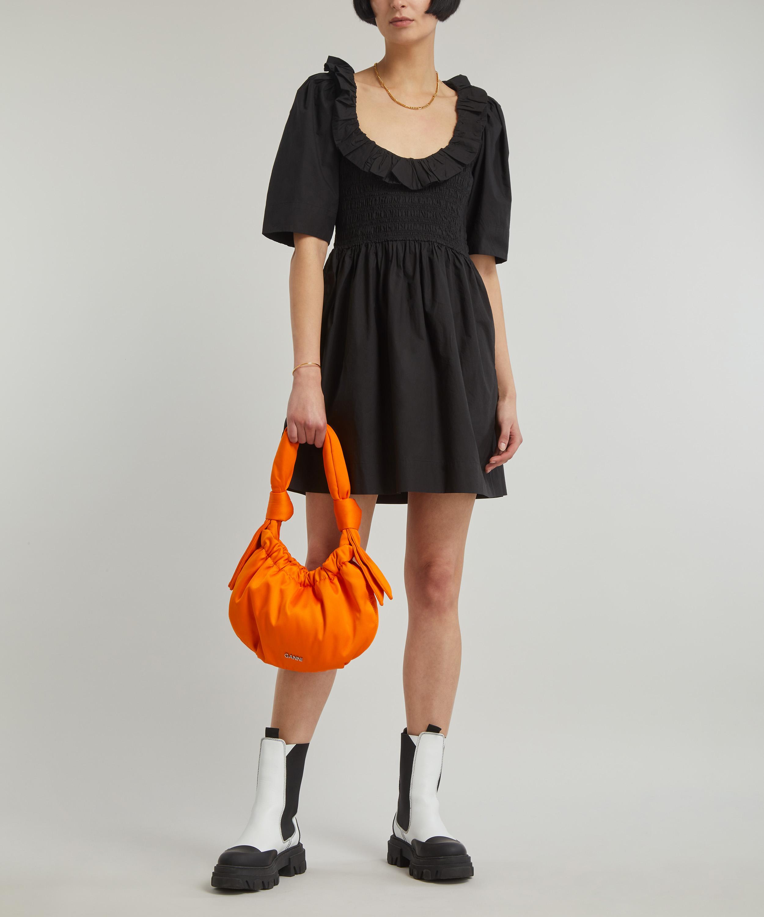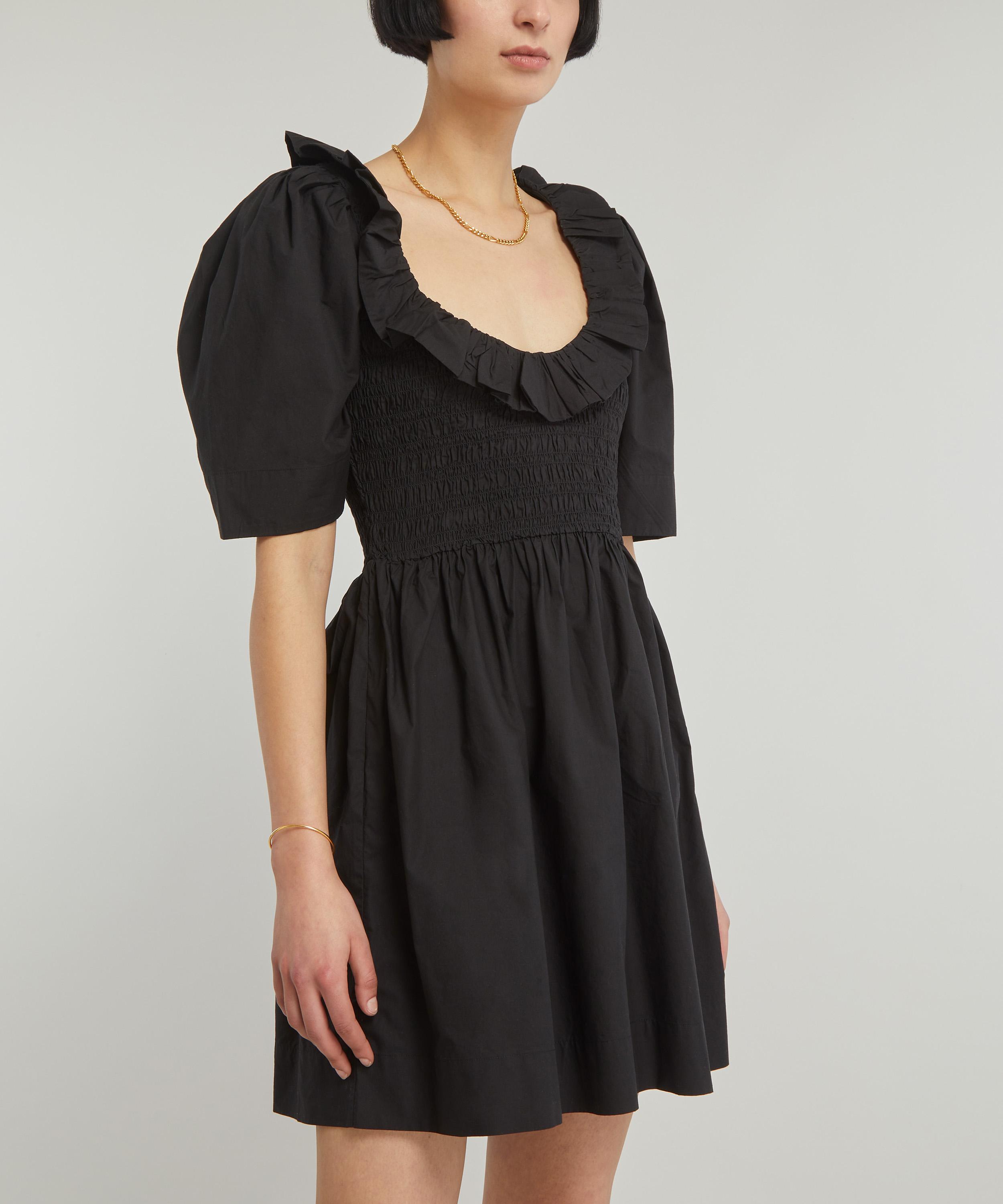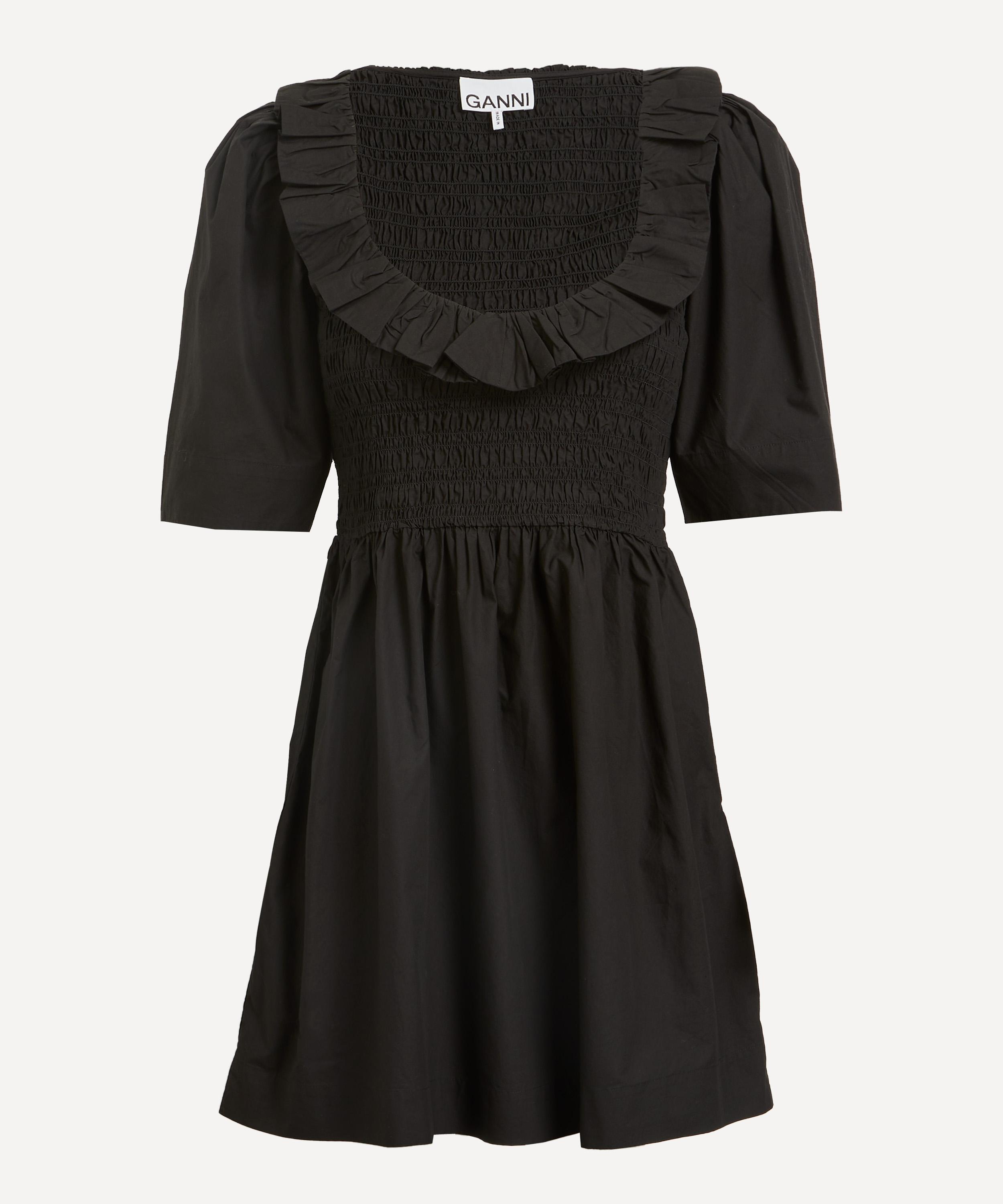 Elegant and effortlessly playful, GANNI’s Open-Neck Smock mini-dress brings a touch of joie de vivre to your finished look with little effort required. Crafted from certified organic cotton, its fit-and-flare silhouette features a smocked bodice, short skirt and a flattering scoop-neckline, complete with voluminous, puffed short-sleeves.