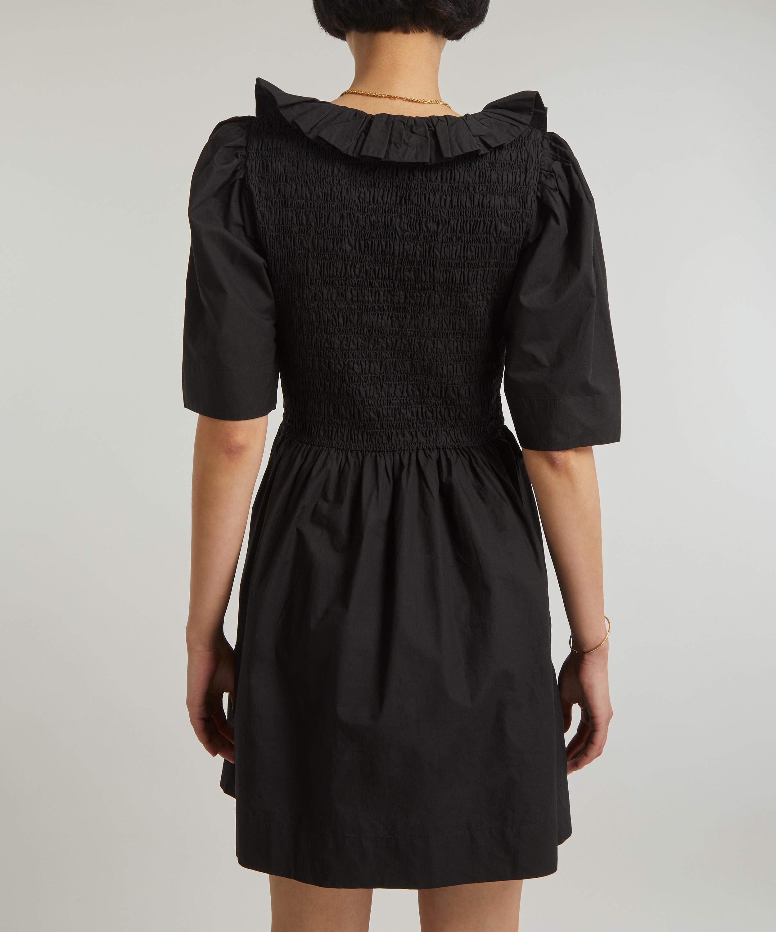 Cotton-Poplin Open-Neck Smock Mini-Dress