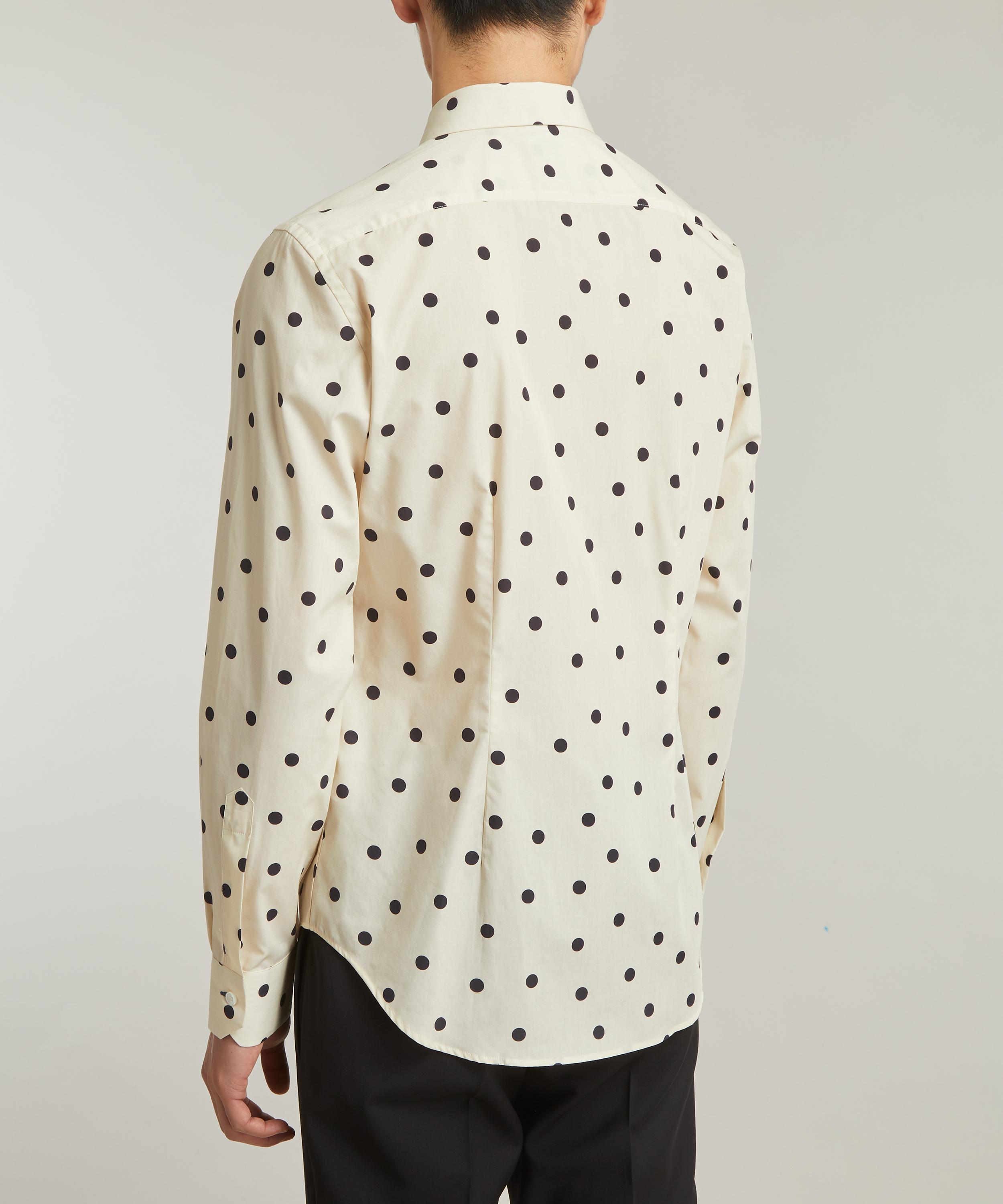 Made in Italy from crisp cotton, this cream shirt features a classic polka-dot pattern throughout. Effortlessly flattering and easy-to-wear with its tailored casual-fit, it’s finished with a smaller soft point collar, and a curved hemline.