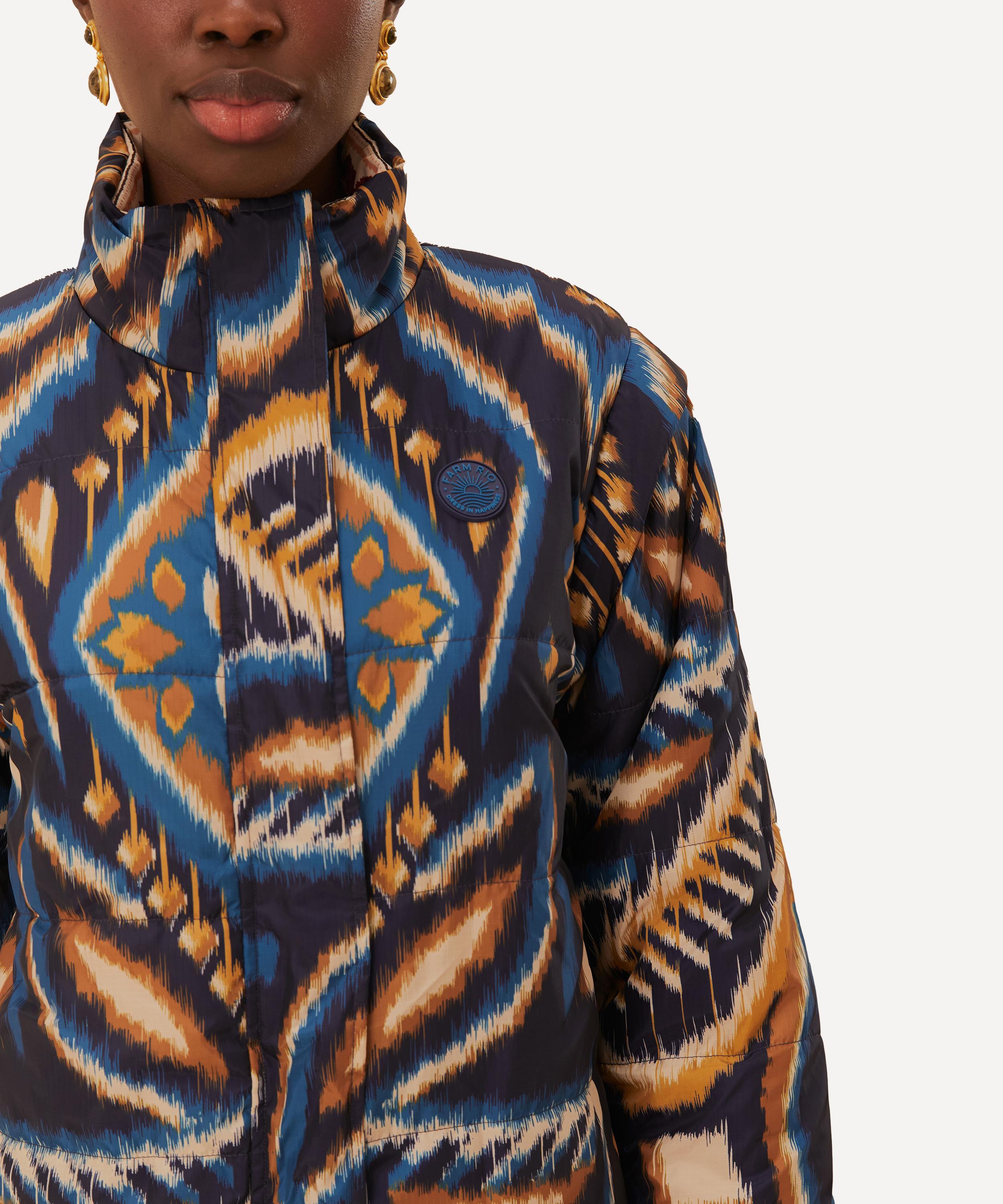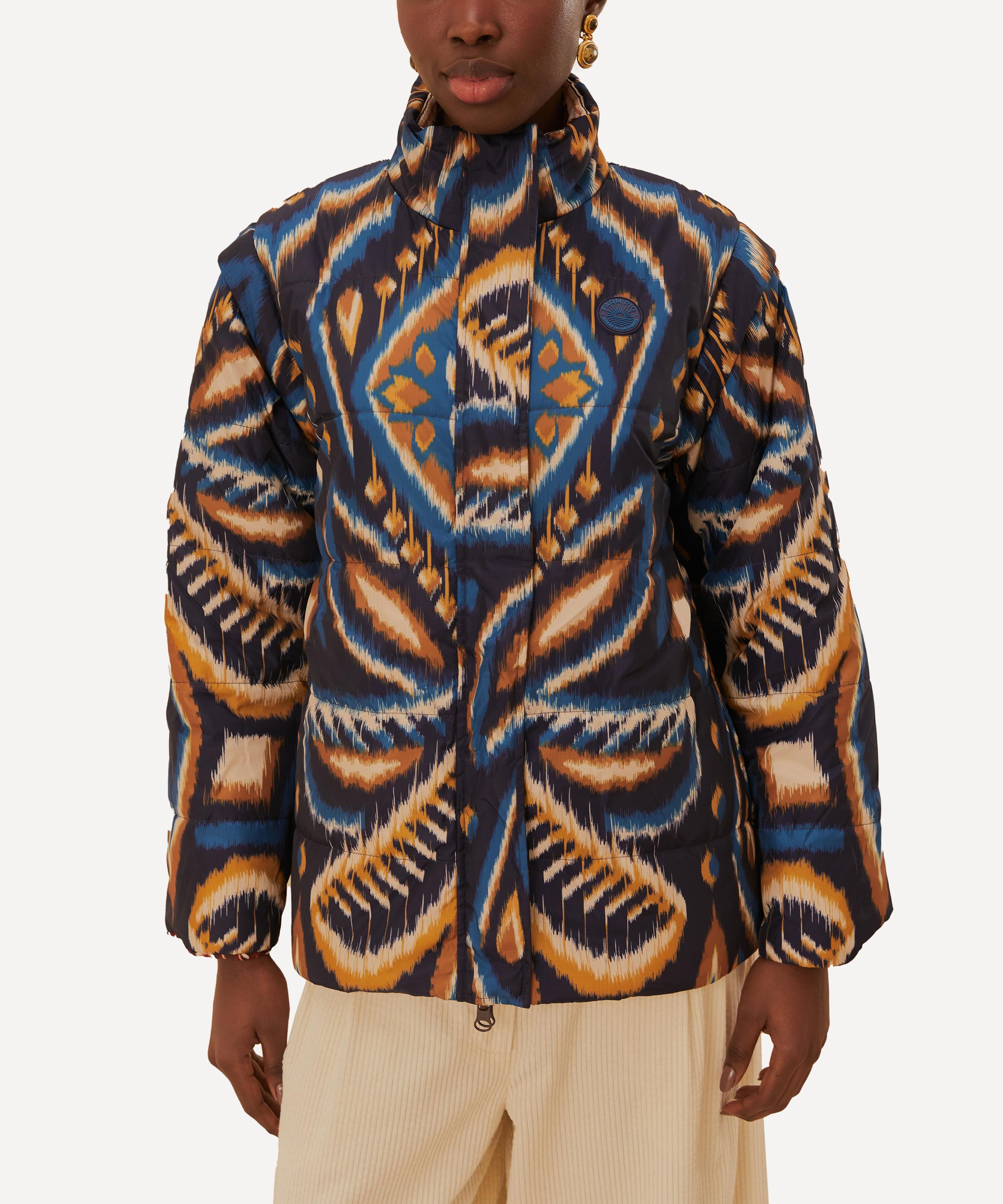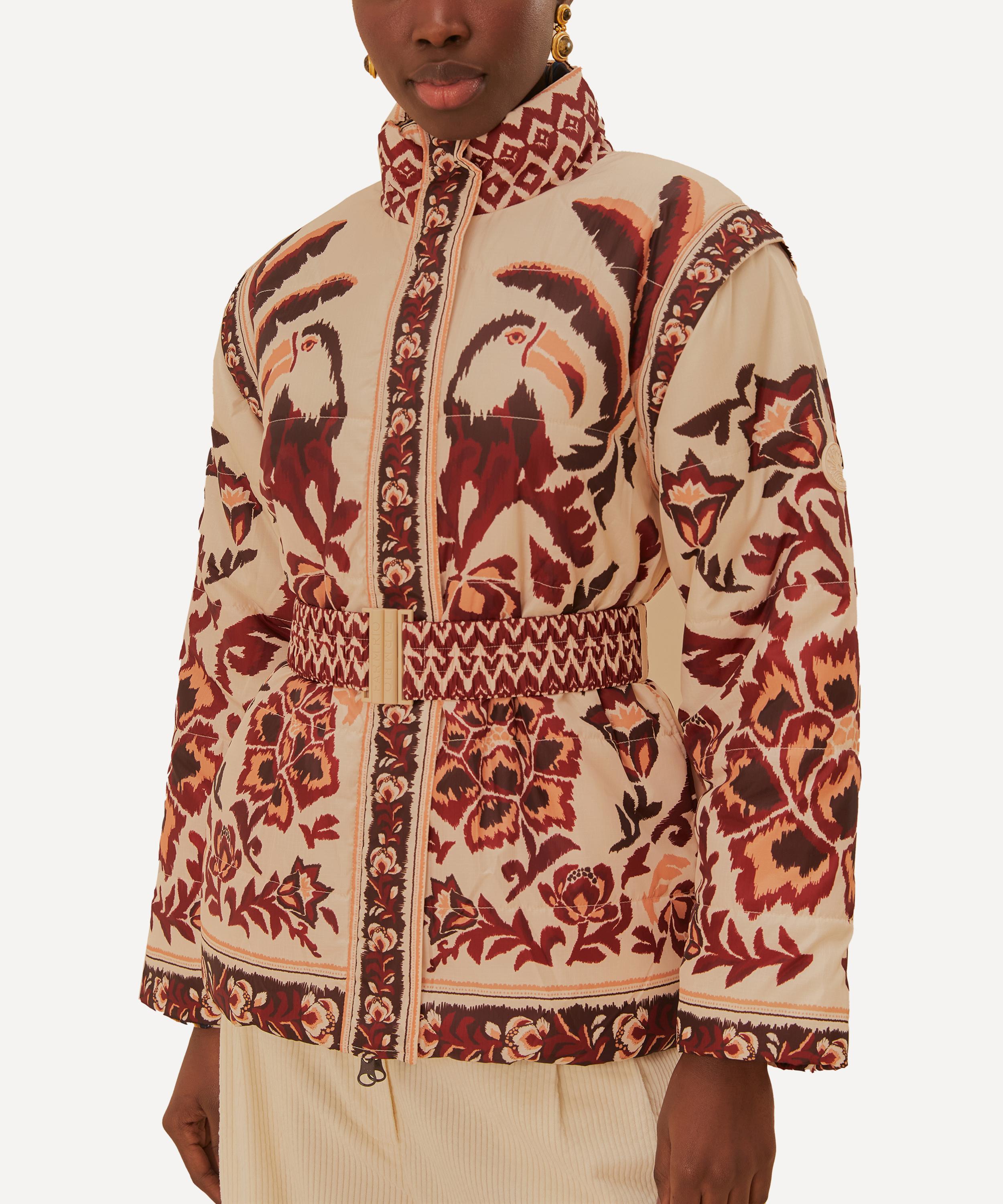 The Cream Toucans Scarf Reversible Puffer Jacket from Rio de Janeiro-based label FARM Rio brings some Brazilian vivacity to your new-season edit.