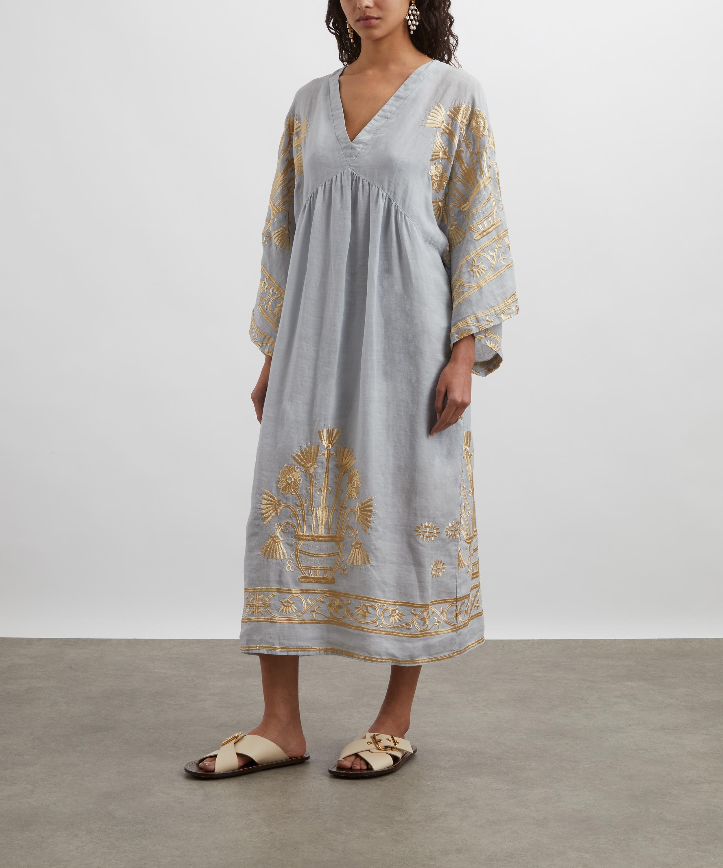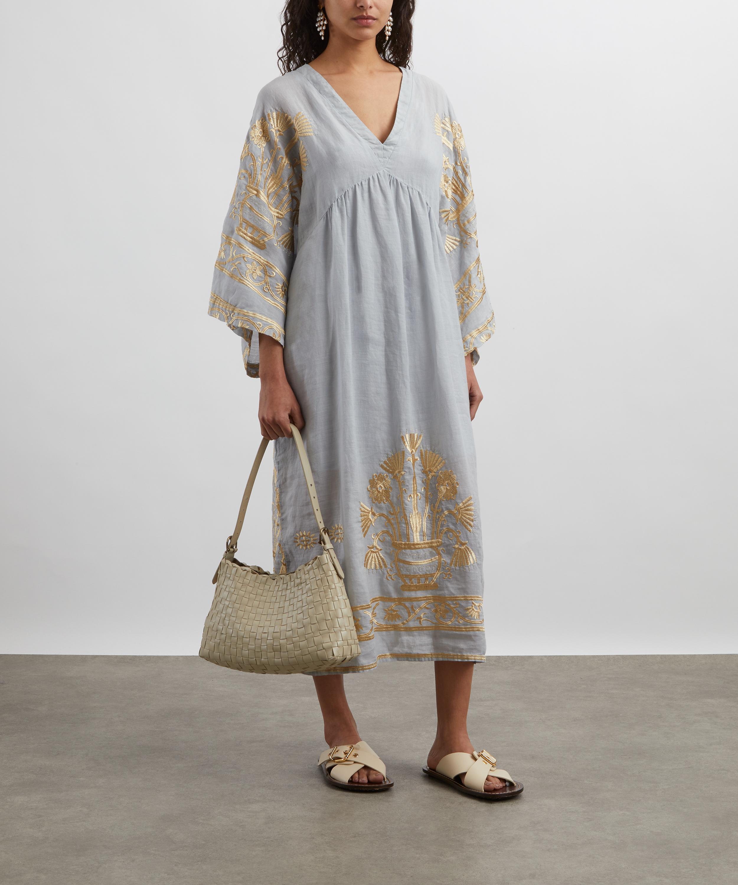 The Crete Embroidered Ramie Kaftan by Athenian label Greek Archaic Kori infuses your new-season wardrobe with the sun-drenched elegance of the Mediterranean.