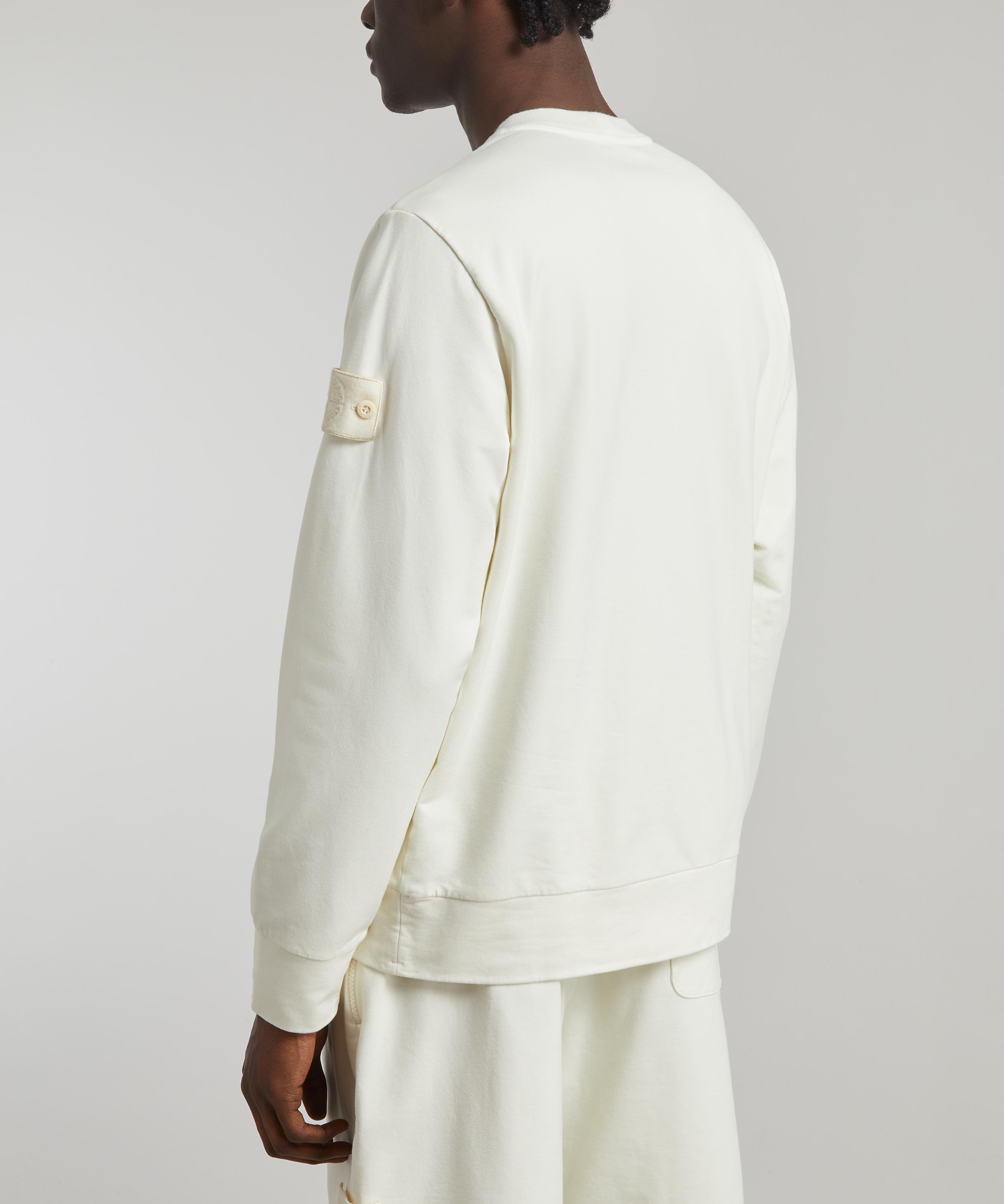 Paving the way for premium sportswear style for over 35 years, Stone Island is dedicated to creating garments that not only serve in its supreme functionality but also in luxe aesthetics. The rich heritage and technical framework comes to life with this crew-neck sweatshirt, crafted from washed cotton canvas with a boxy, relaxed fit. Keep it simple and pair with matching cream shorts and trainers.