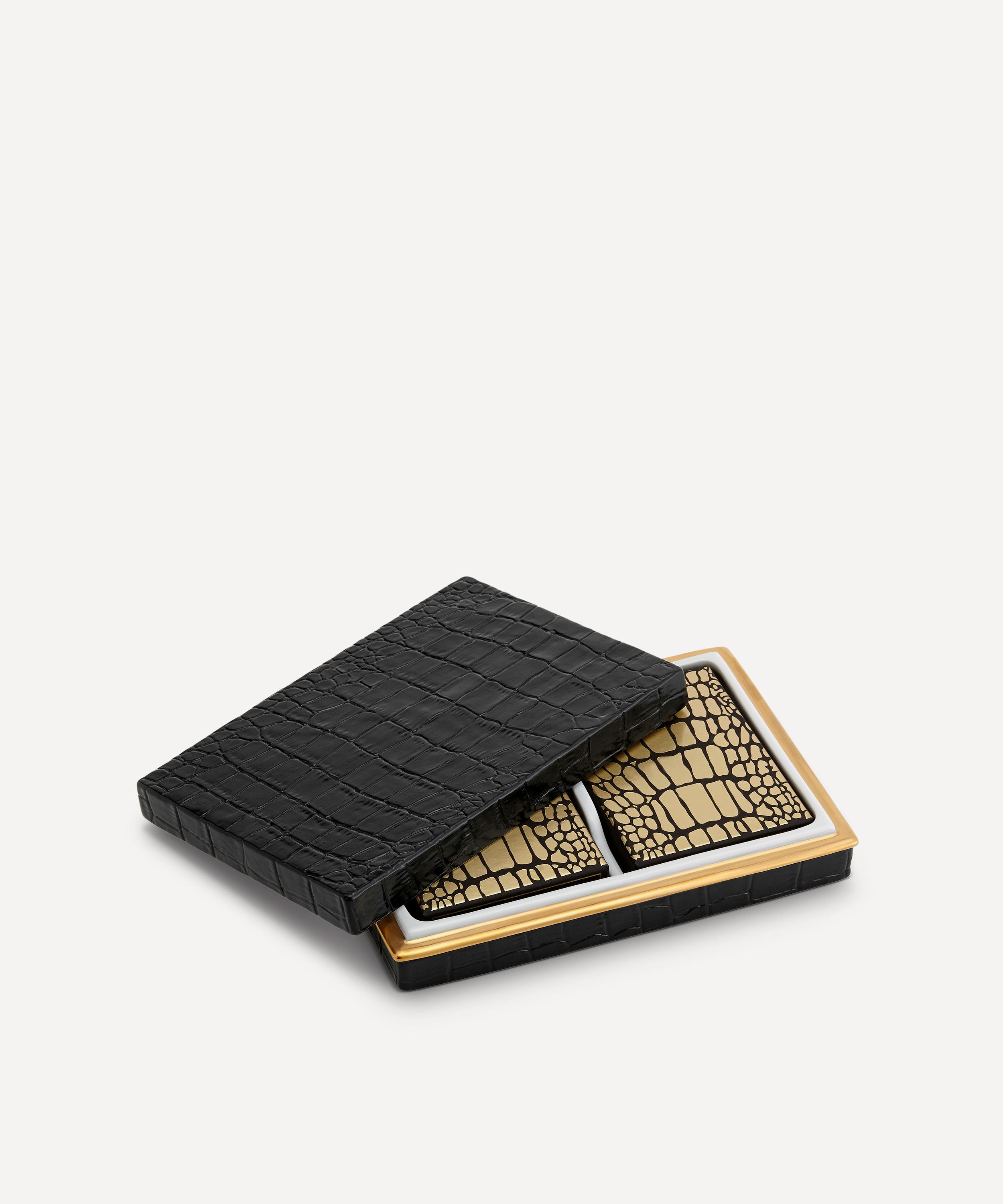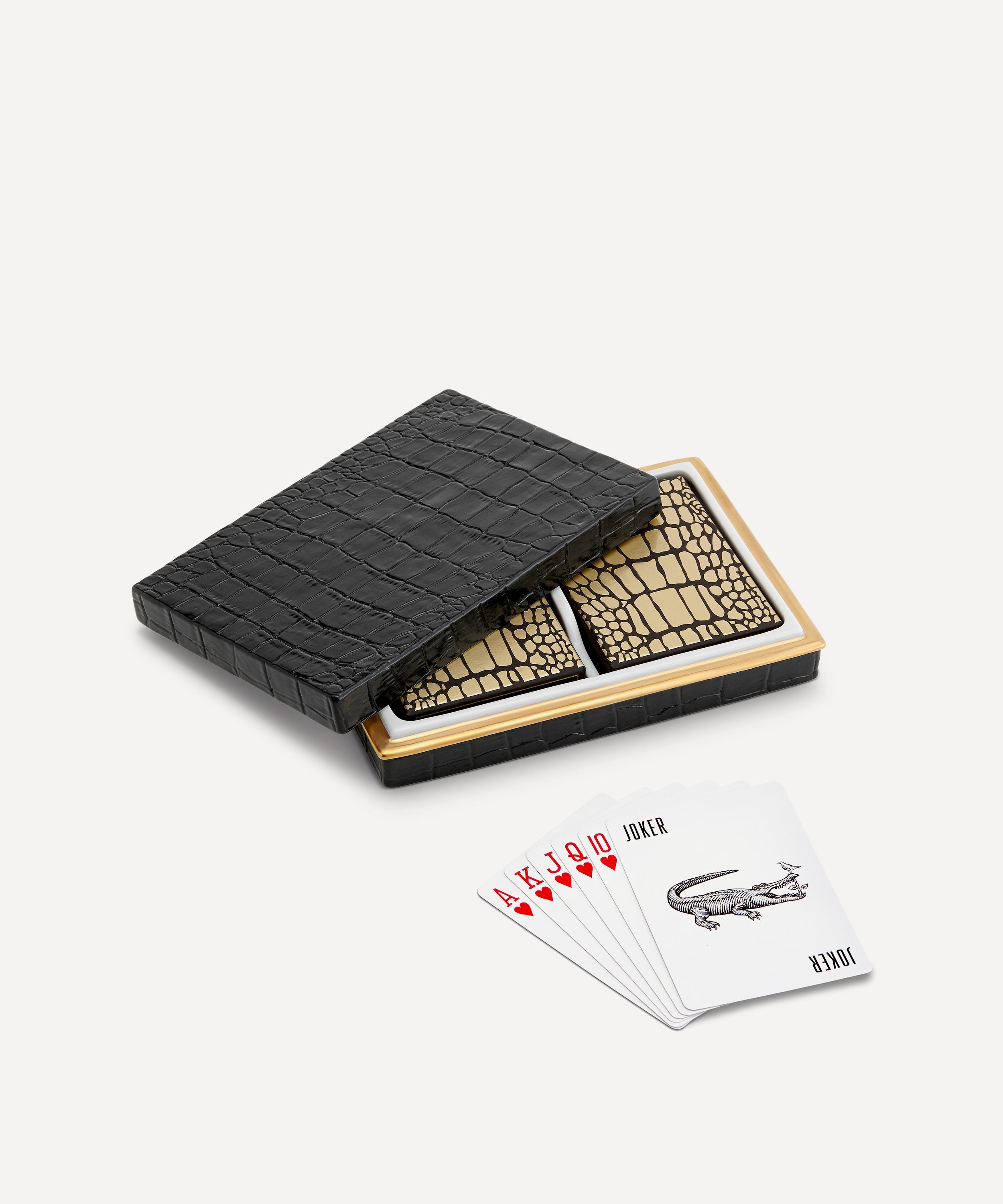 Encased in a crocodile effect porcelain box with 24k gold detailing, these playing cards will bolster your after-dinner games collection or are an elevated alternative to hostess gifting.About L'Objet