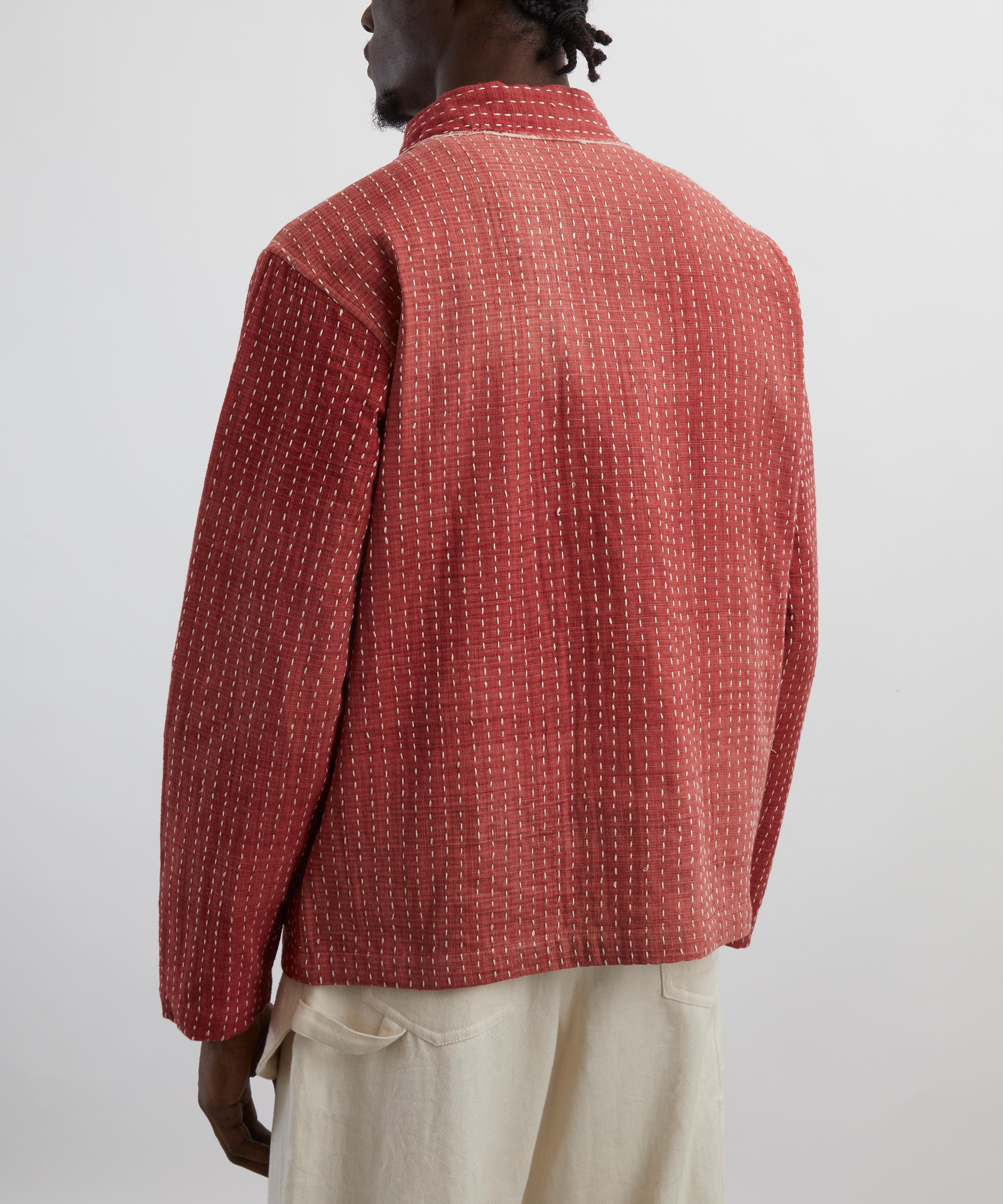 Founded in 2021 by Kartik Kumra, Indian brand Kartik Research creates clothing inspired by India’s rich heritage of craft and culture. A celebration of heritage and time-honoured techniques, the brand is committed to preserving centuries-old craftsmanship. Working closely with Indian artisans, each garment is handmade and features intricate handicraft ranging from kantha quilted shorts, to Kasuti-embroidered suits. Weaving the past with the present, each stitch and seam defines craftsmanship in a contemporary way.