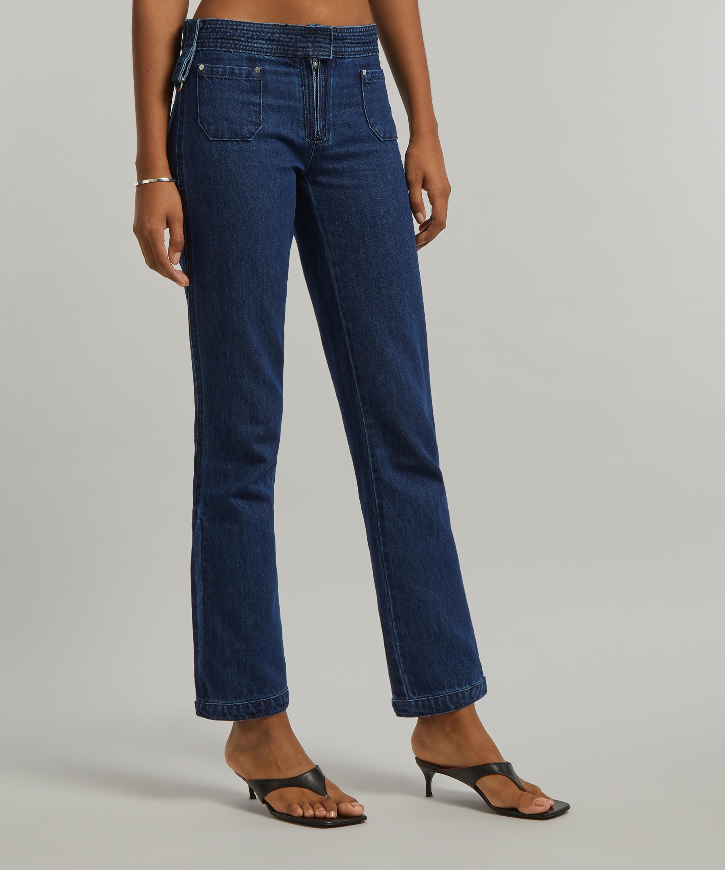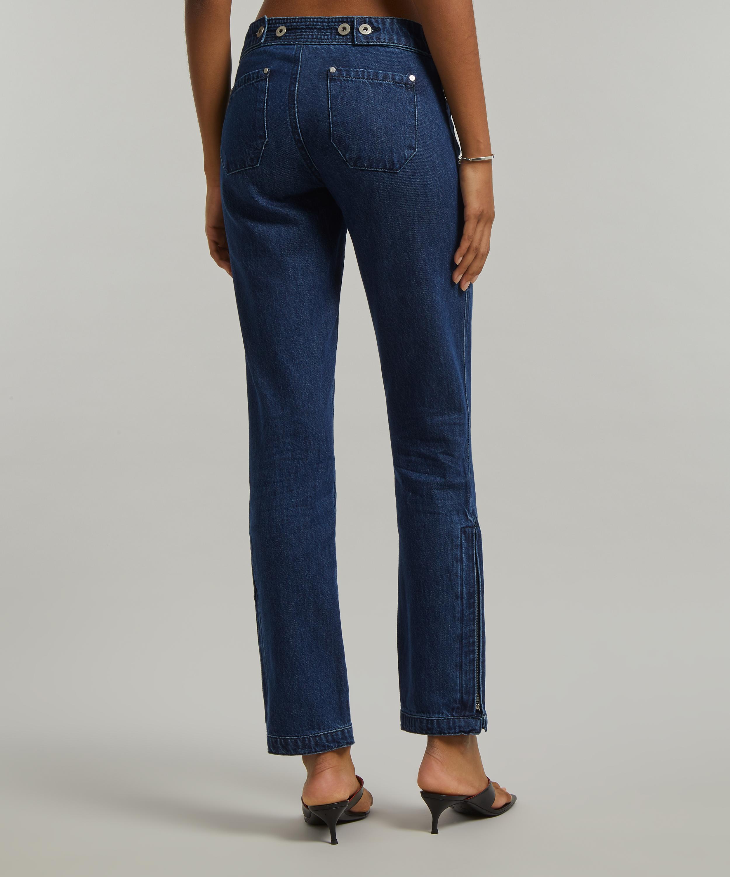 A straight style elevated by its slanted side slits, this denim pair is from Spanish label, Gimaguas. Cut from cotton denim to a loose-fitting, straight leg with a low-rise waist and adjustable zipped ankle slips, they’re complete with two patch-pockets at the front for a utilitarian-inspired finish.