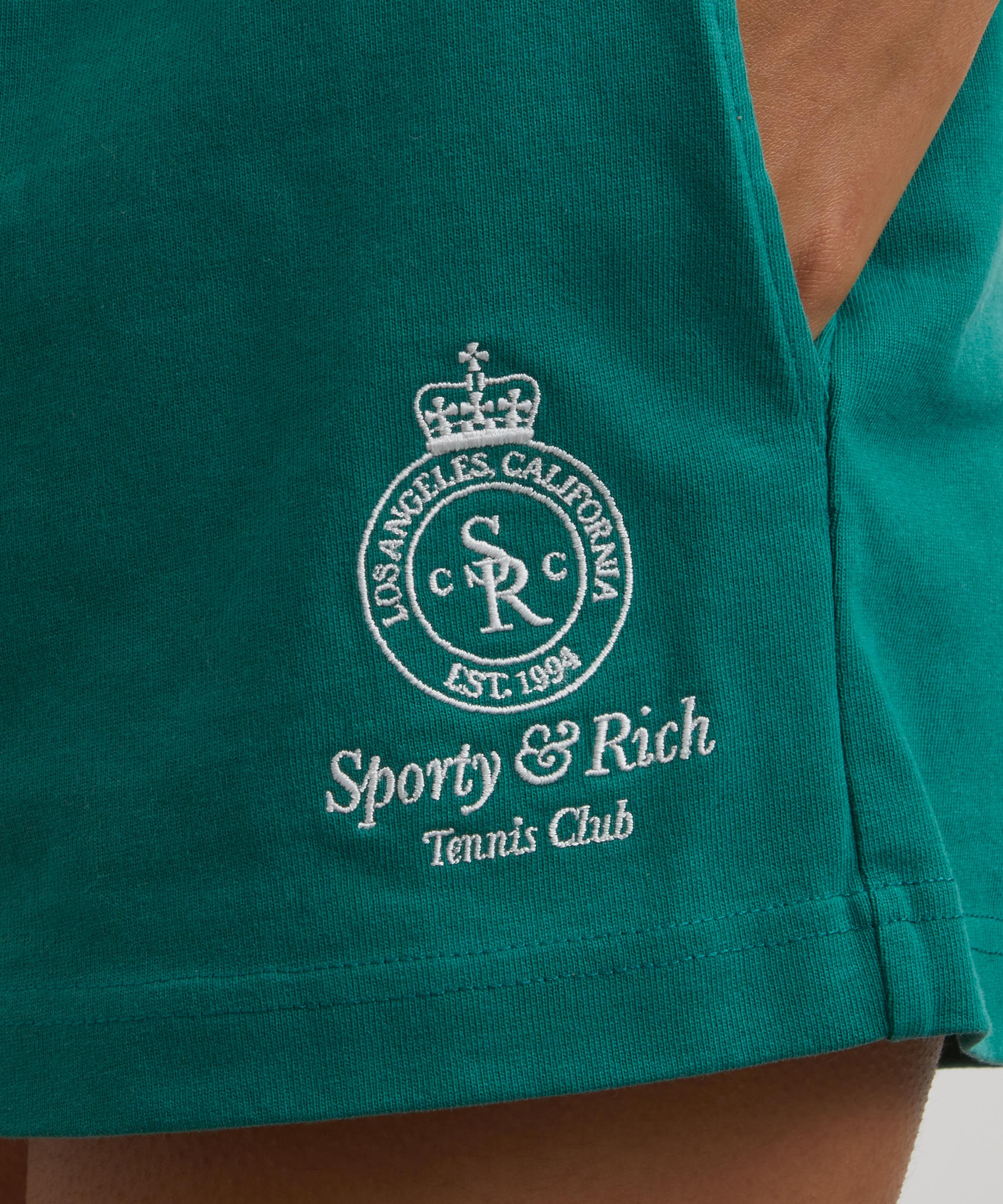 Effortlessly embody laid-back luxury with the Crown Tennis Disco Shorts from Sporty & Rich, blending comfort and style for a relaxed yet refined look.