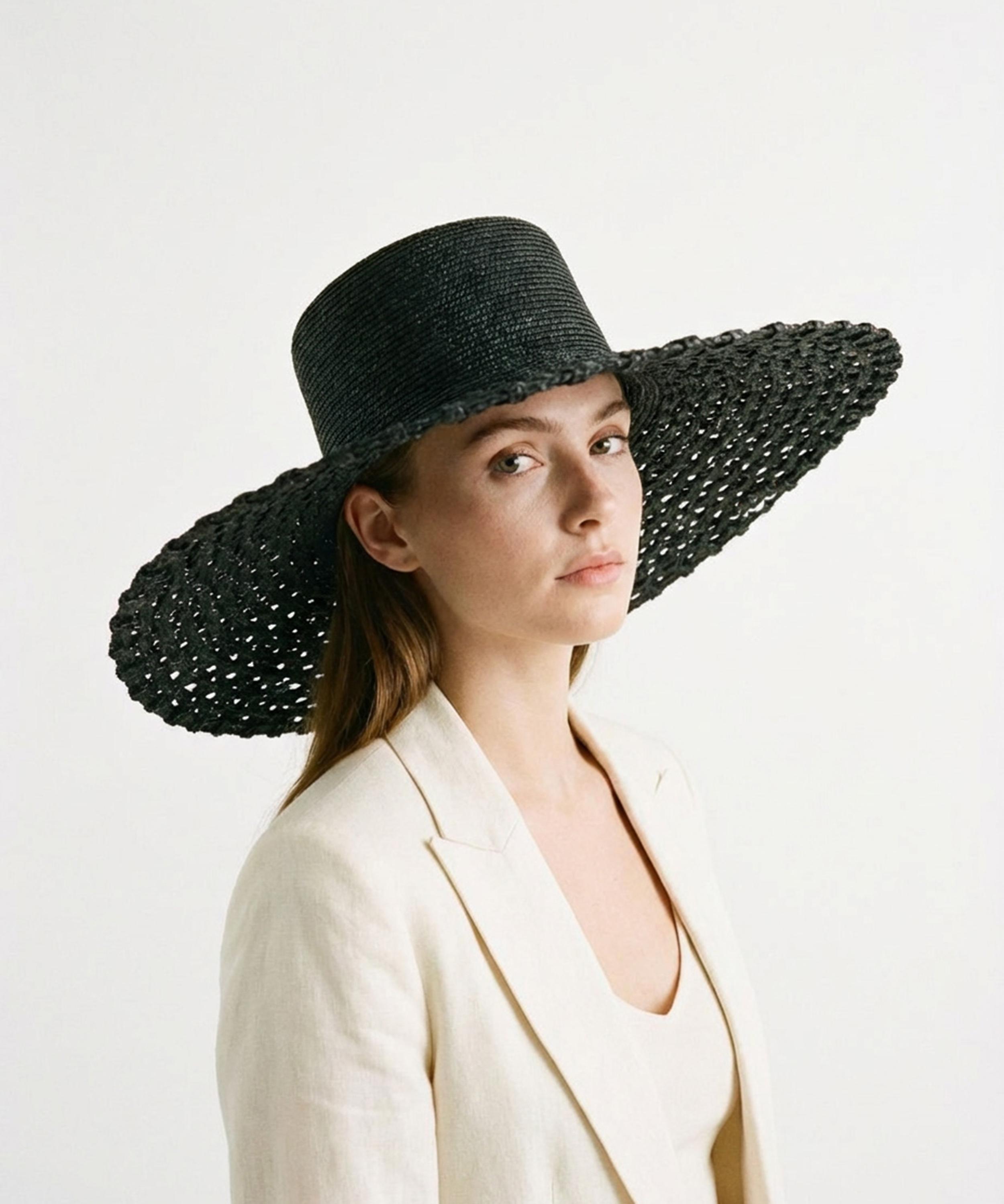 The Cuchi Tris-Tras Hat by Zahati is a masterclass in modern artisanal craftmanship, hand-braided from natural wheat straw to create a lightweight yet structured silhouette. Its gently sculpted crown and wide, soft brim offer both sun protection and effortless elegance, while the tonal black colourway lends a refined versatility to every ensemble. With a flexible construction that keeps its shape wherever the day takes you, the Cuchi Hat evokes a sense of understated sophistication, making it the perfect companion for sunlit city strolls, seaside escapes, or leisurely afternoons in the garden.