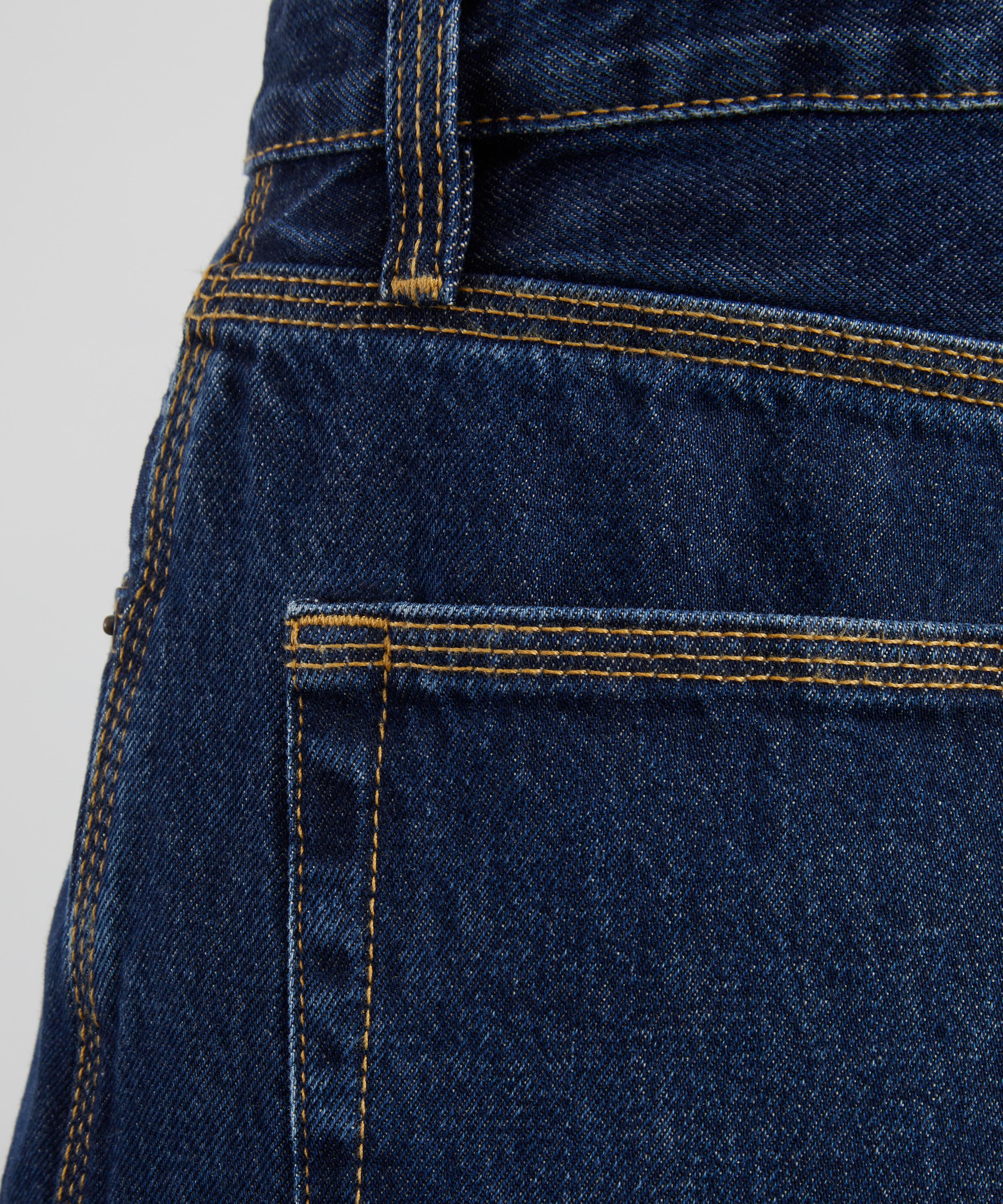 Crafted from rigid cotton denim, the Cuffed jeans feature a high-rise, relaxed wide-leg silhouette with a 4” cuff that can be adjusted or unrolled for added length and versatility.