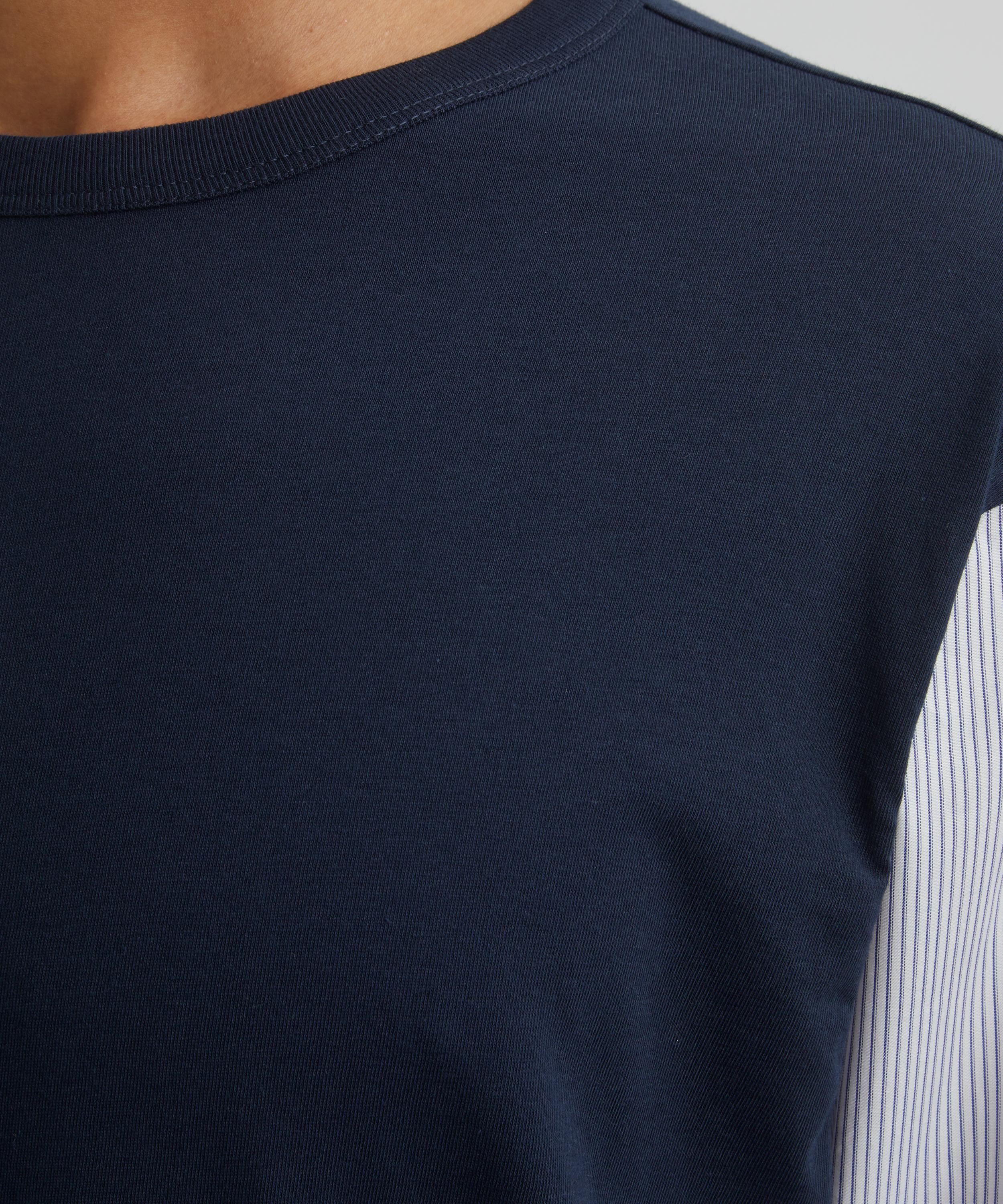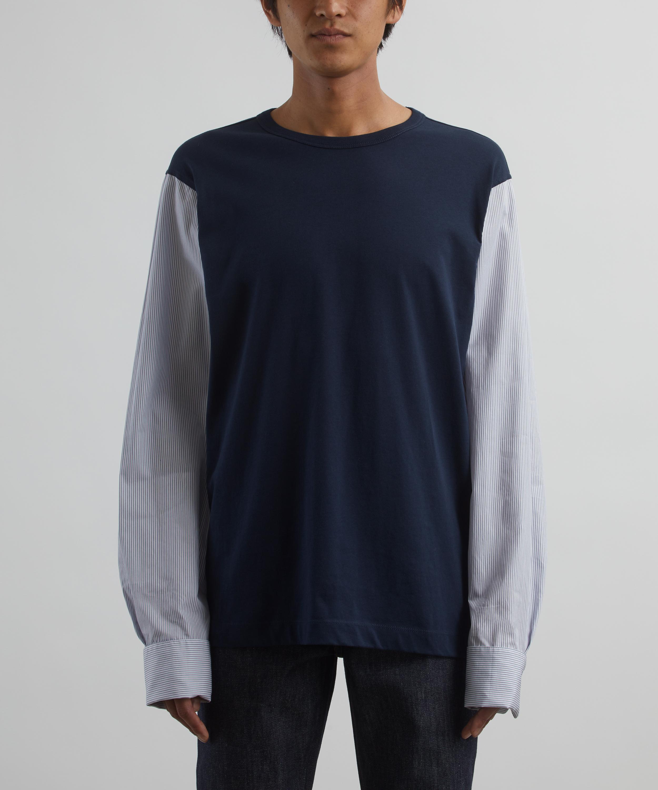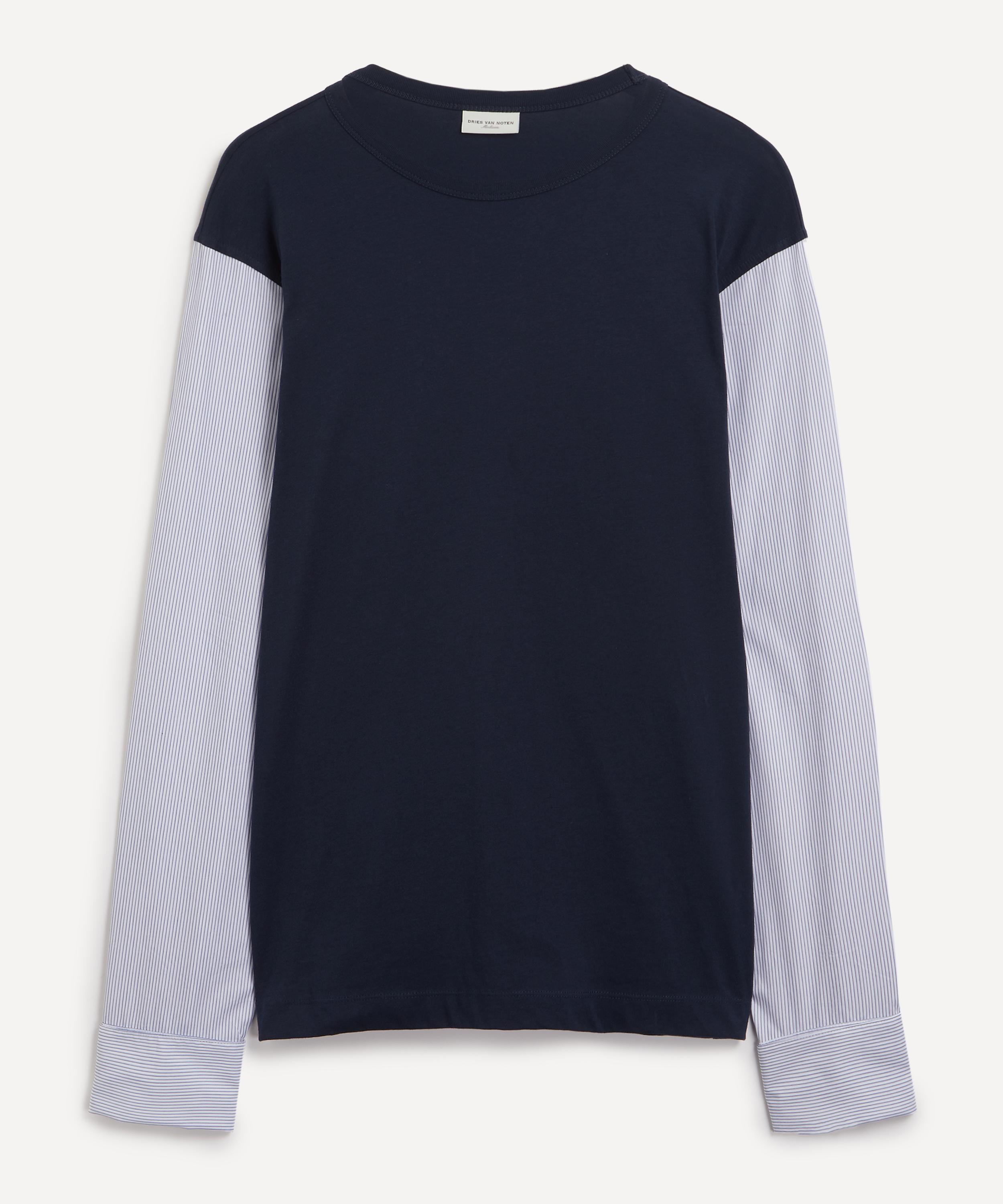 Bringing a playful touch to your off-duty edit, this contras sleeve t-shirt from Dries Van Noten exemplifies the Belgian label’s avant-garde approach to contemporary fashion. Cut from soft cotton jersey for a regular fit, this statement style is characterised by its two long shirt sleeves, crafted from crisp cotton with a striped pattern, and fitted with double cuffs for an off-beat finish.