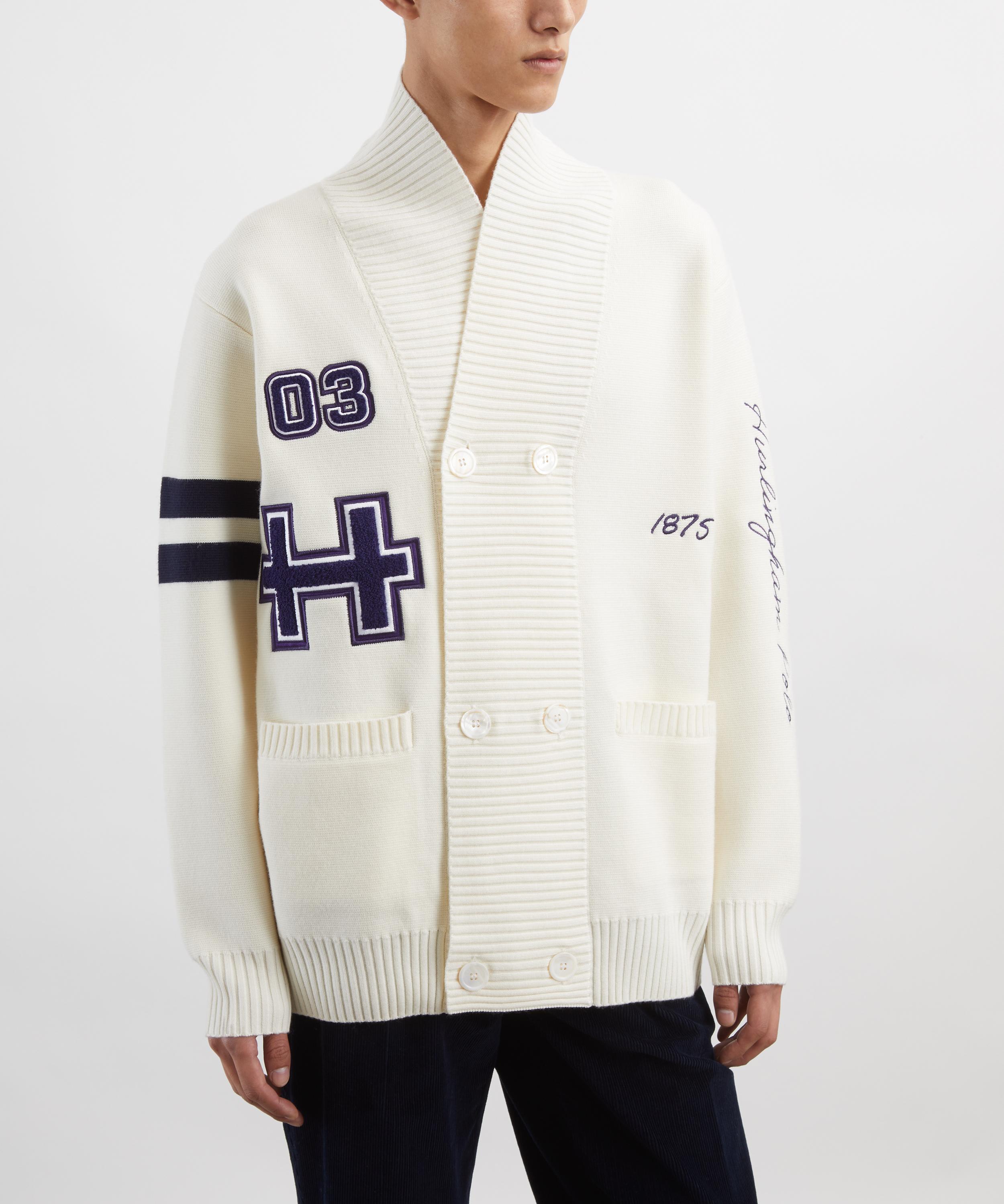 Crafted from Merino knit in a durable Milano stitch, this double-breasted cardigan offers a smooth, soft hand-feel and features branded details at the sleeve and chest. Channelling easy, understated luxury, wide ribbing lends a classic varsity touch, making this piece a versatile nod to the brand’s refined heritage.